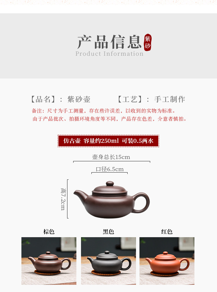 宜兴紫砂壶大容量仿古壶纯手工泡茶单壶可倒立小号西施壶功夫茶具