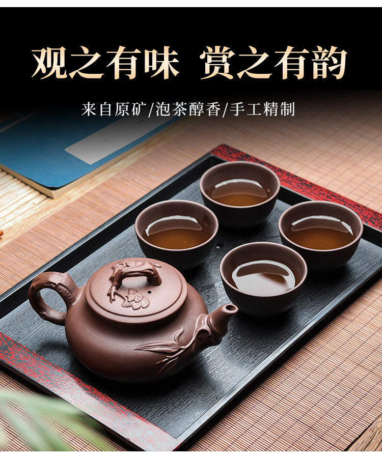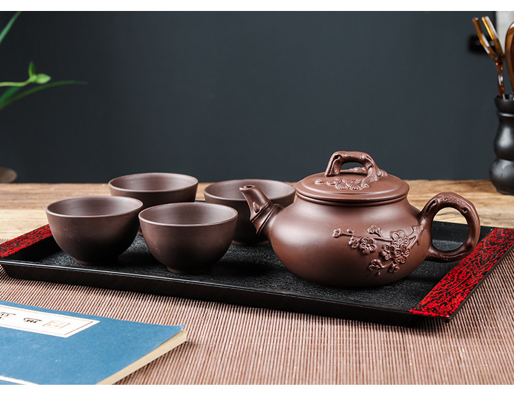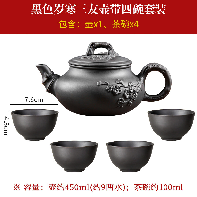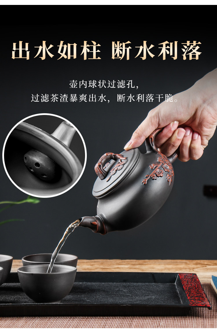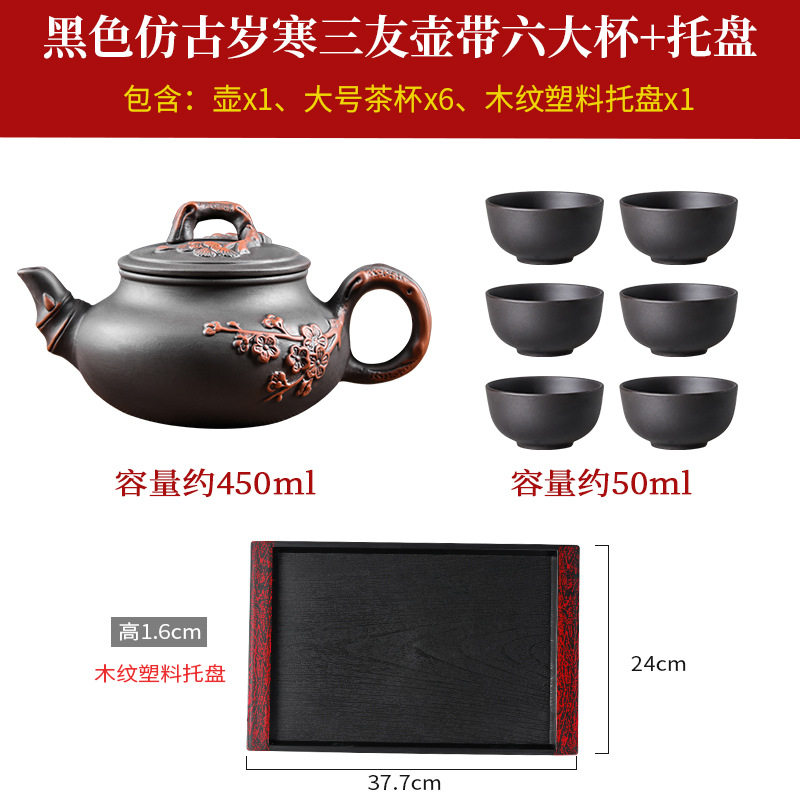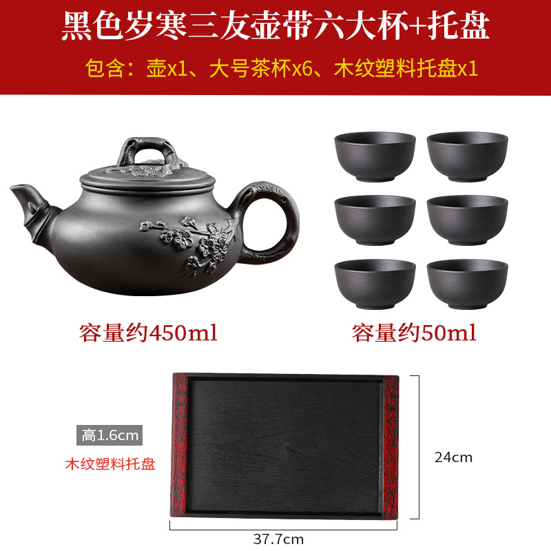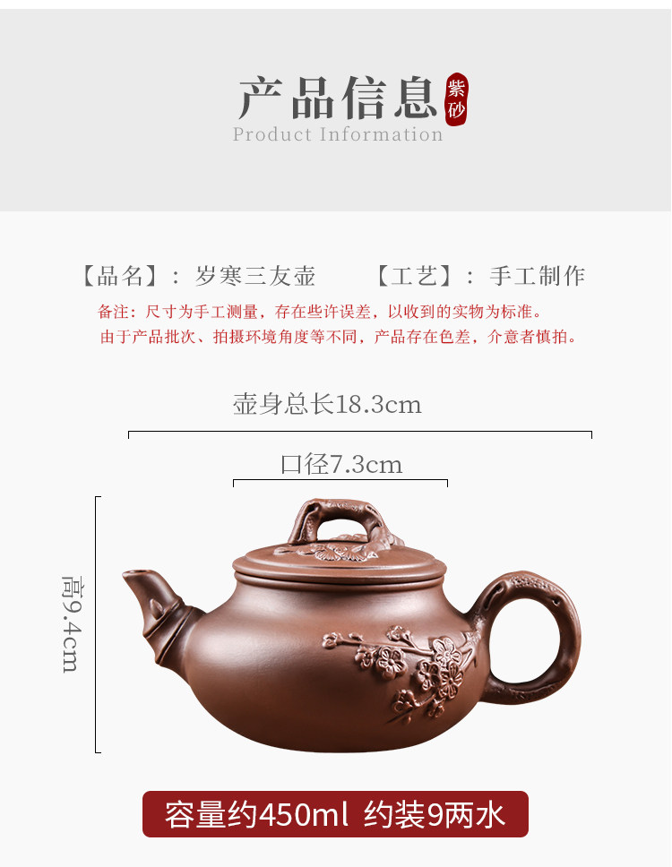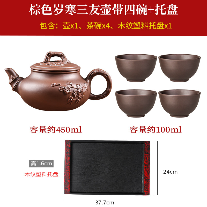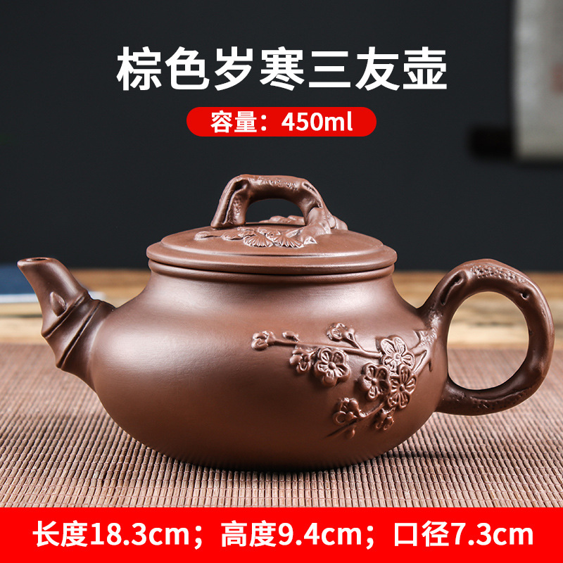 宜兴紫砂壶大容量朱泥岁寒三友壶大号过滤泡茶壶茶杯套装功夫茶具