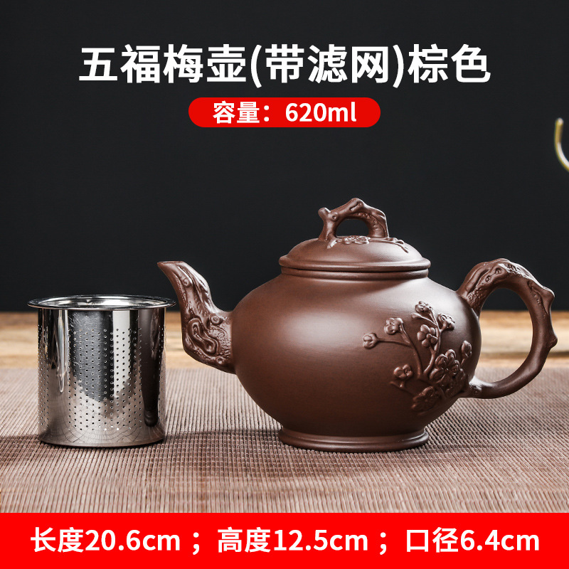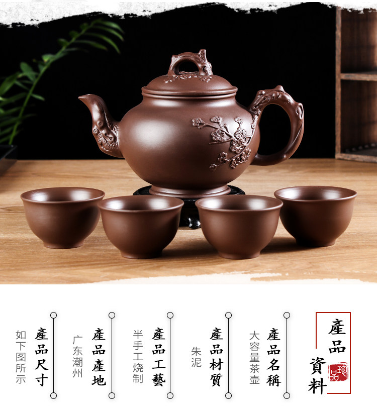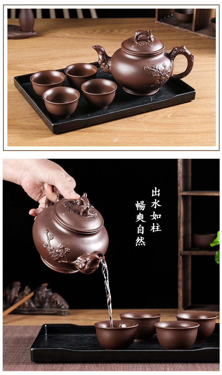 紫砂茶壶紫砂大容量大号紫砂壶家用功夫茶具杯套装宜兴朱泥梅花壶