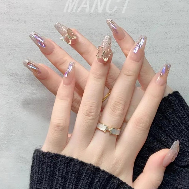 欧美跨境热销美甲片法式感假指甲贴片可拆卸猫眼ins风穿戴甲