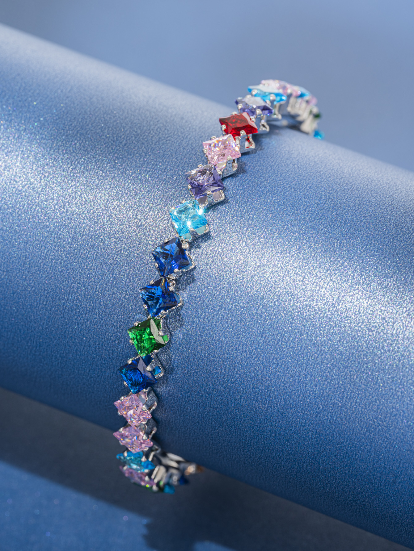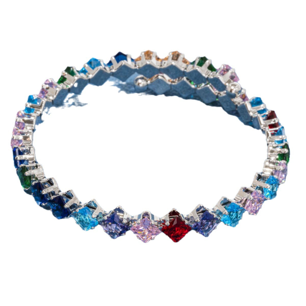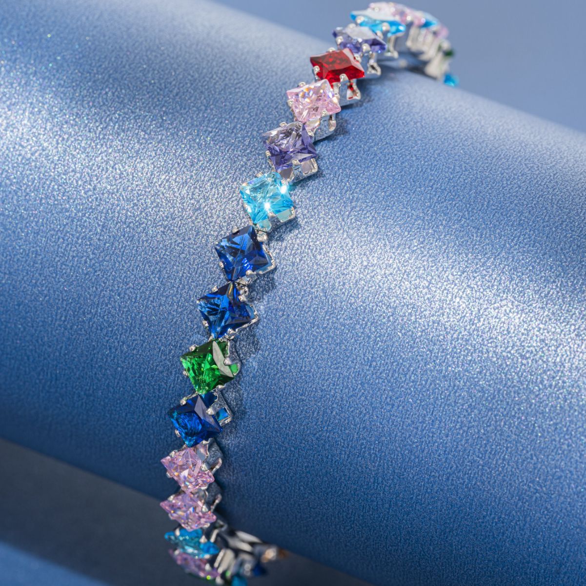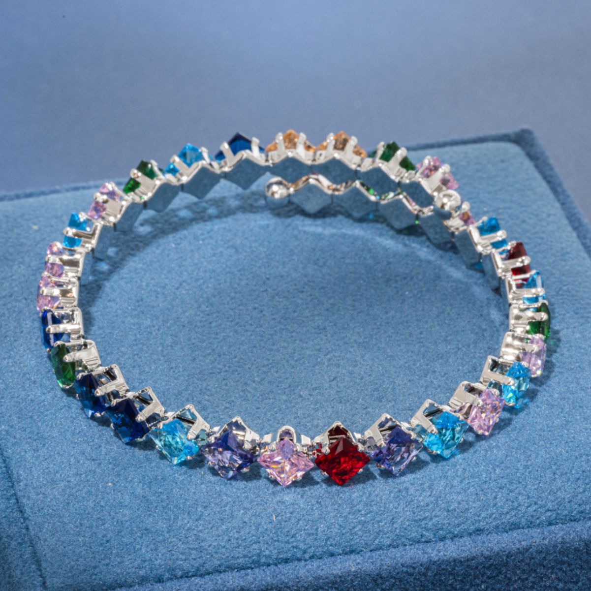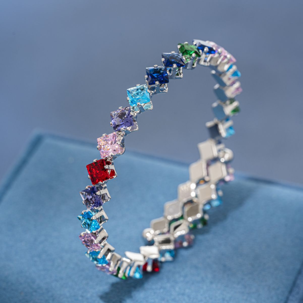 镀金方块欧美单圈女手镯满轻奢小众手链跨境手环锆石彩色钻银热销