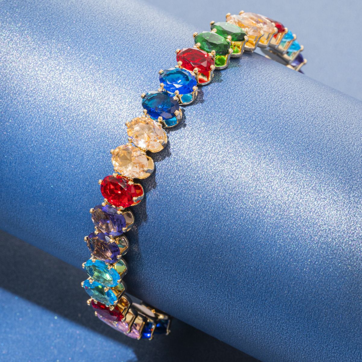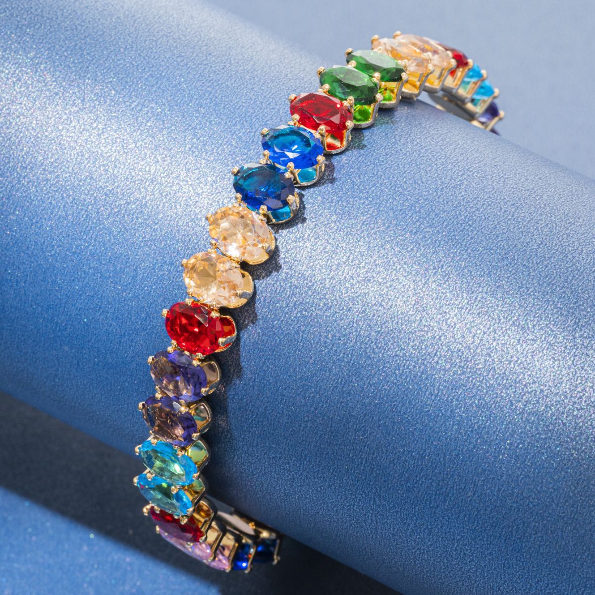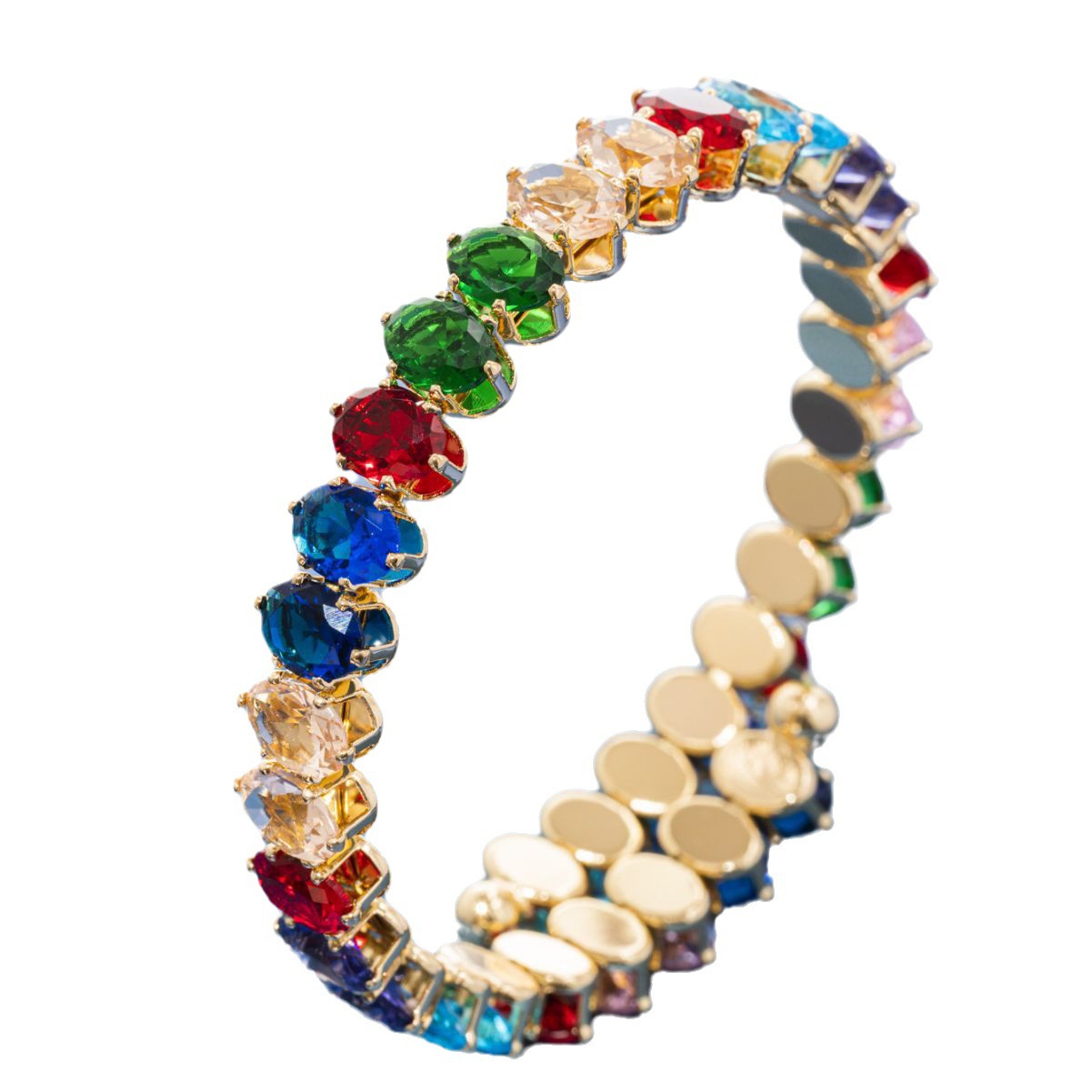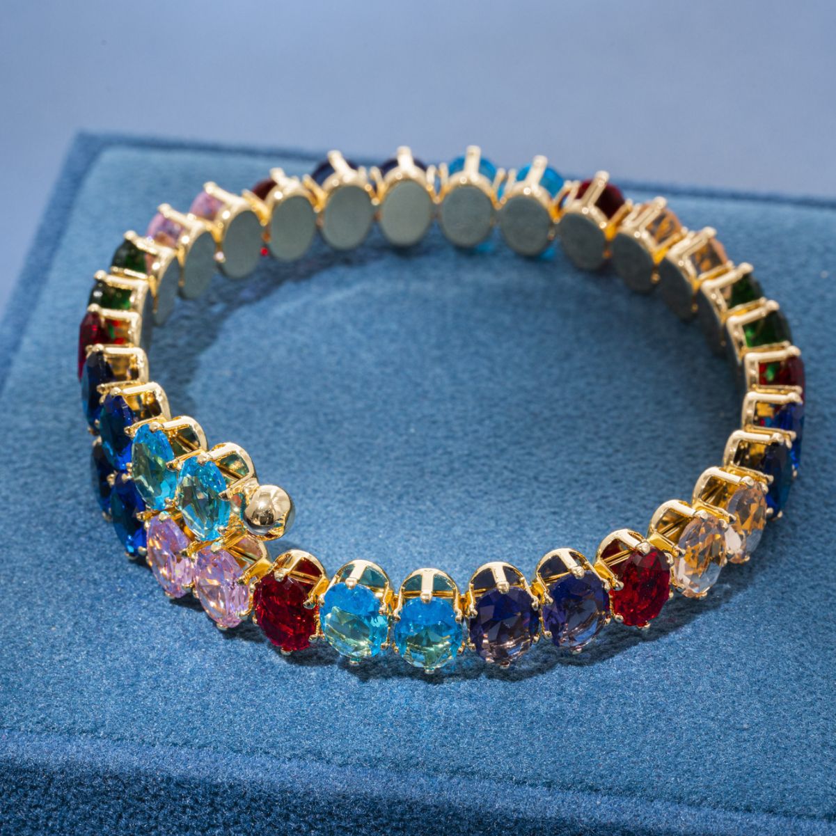 欧美新款蛋形彩色锆石手镯女士夸张满钻时尚椭圆珠宝饰品厂家批发