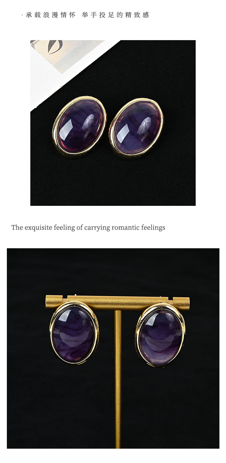 vintage复古宫廷椭圆形紫晶石水晶耳钉轻奢感法式复古气质耳饰
