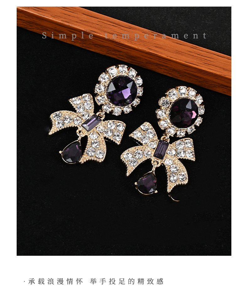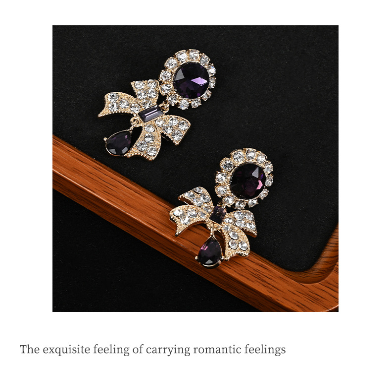 宫廷富贵紫蝴蝶结耳钉 清新甜美小清新紫水晶小香风公主耳坠