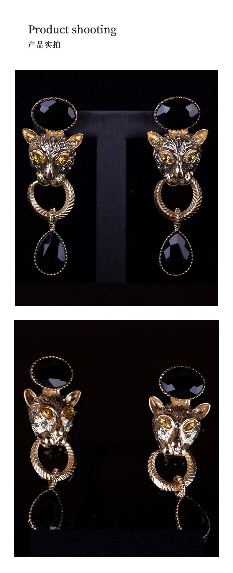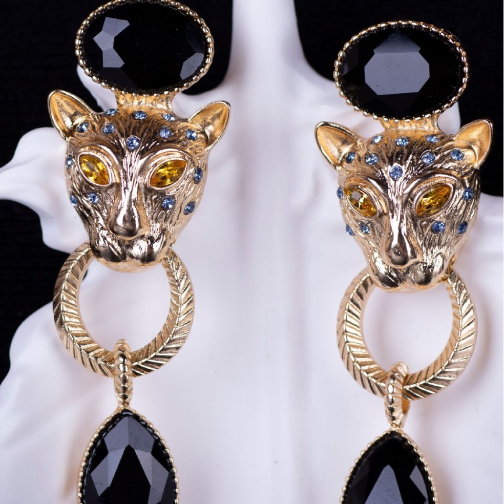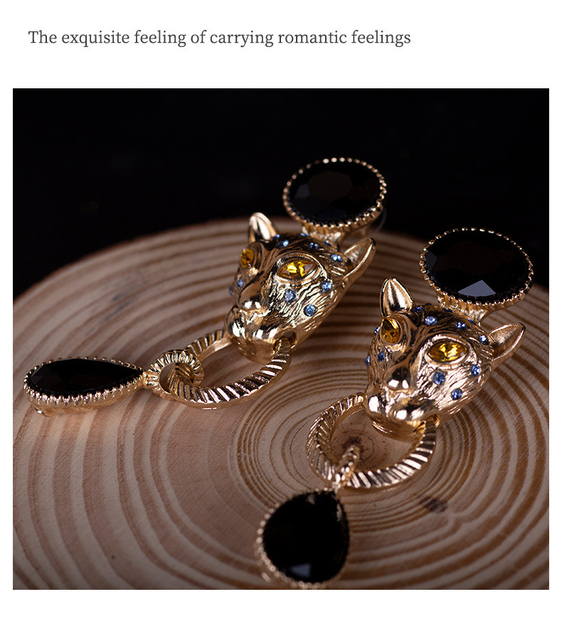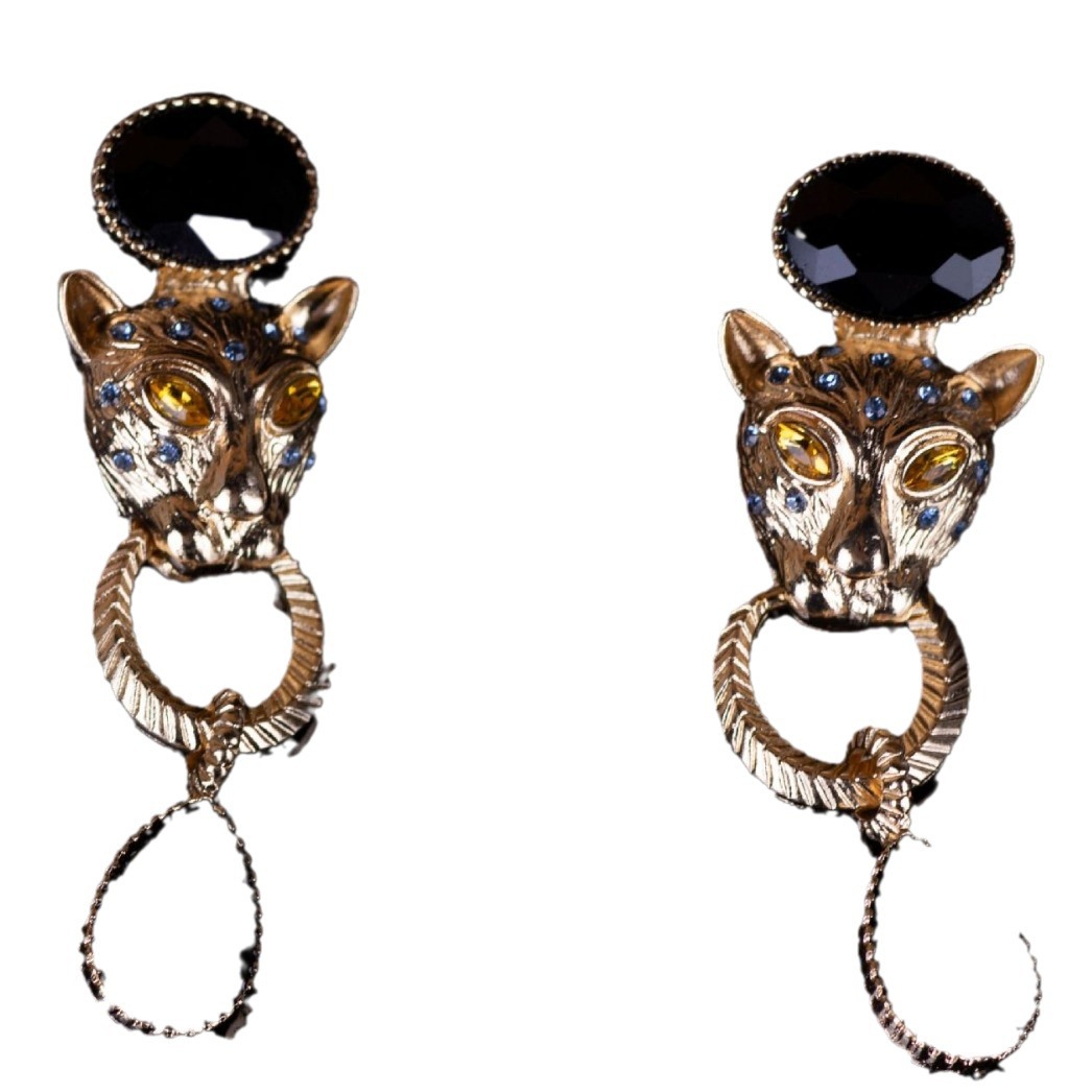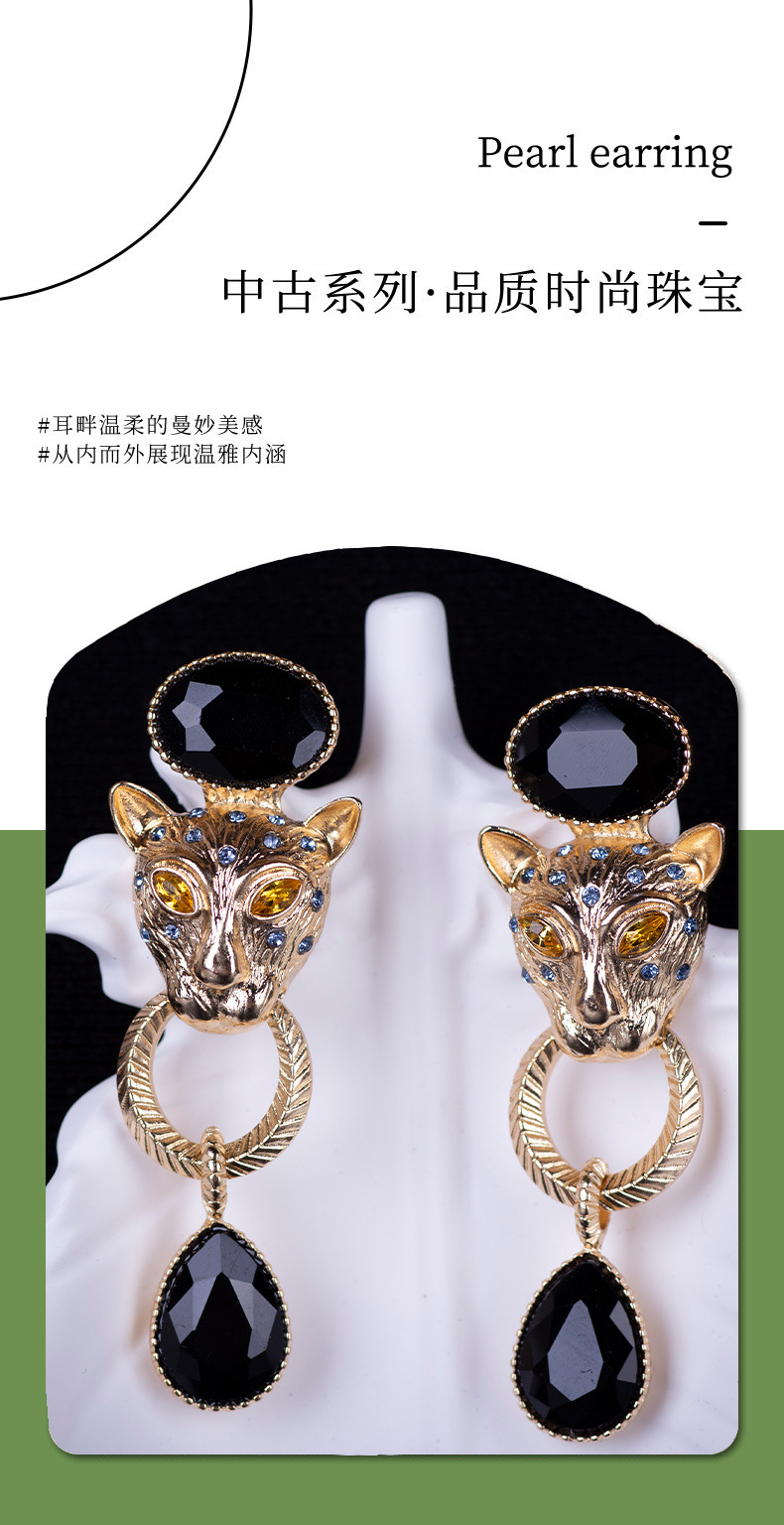 青岛跨境饰品复古夸张款豹子耳饰法式耳坠民族风动物高级感耳钉女