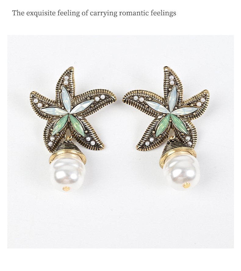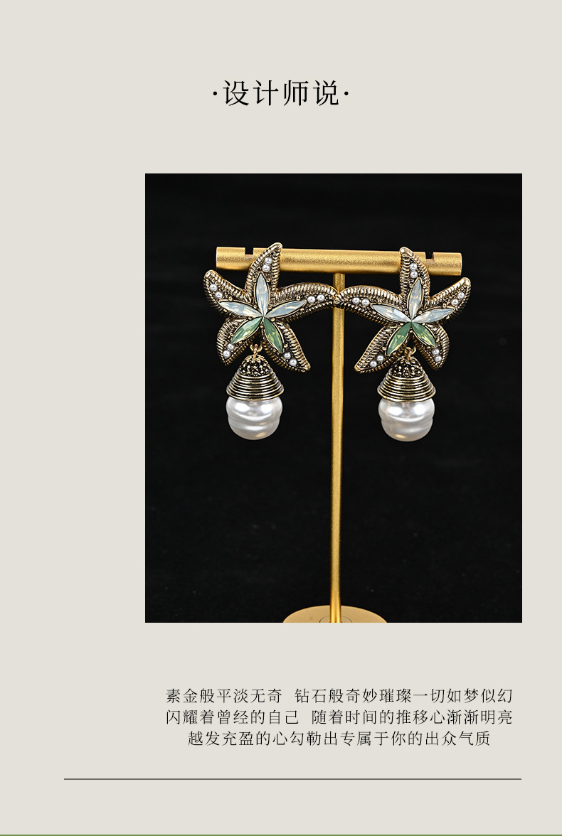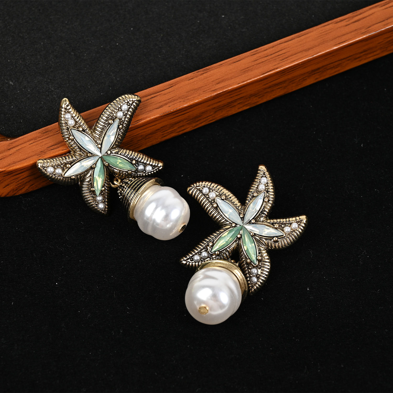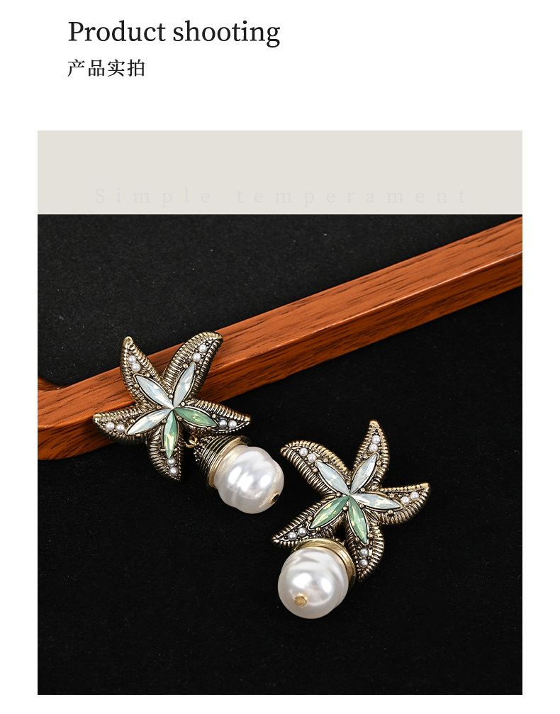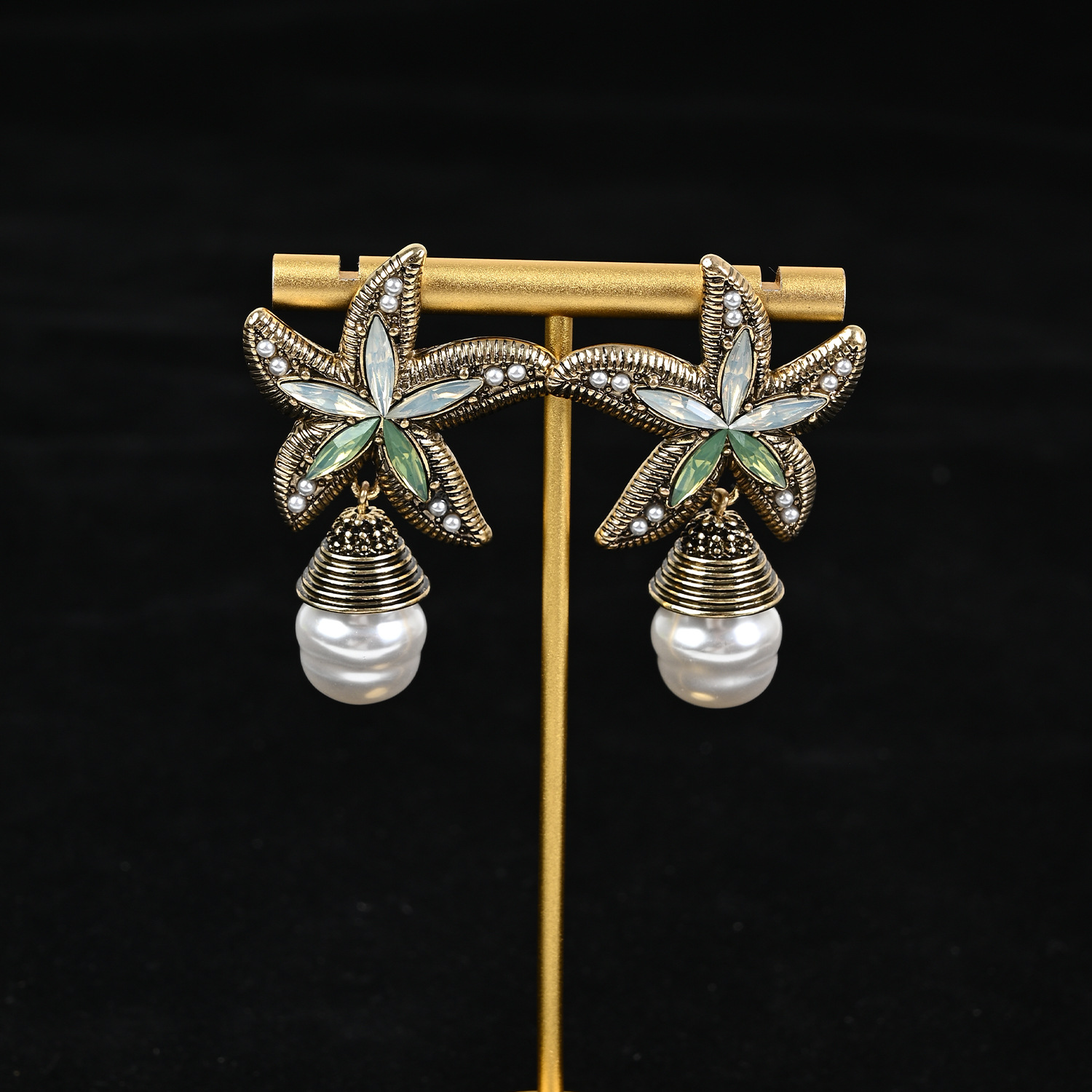中古海洋系列珍珠海星耳坠 潮流海边沙滩风夸张个性约会旅游耳钉