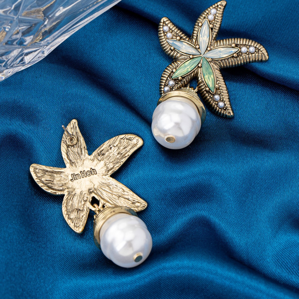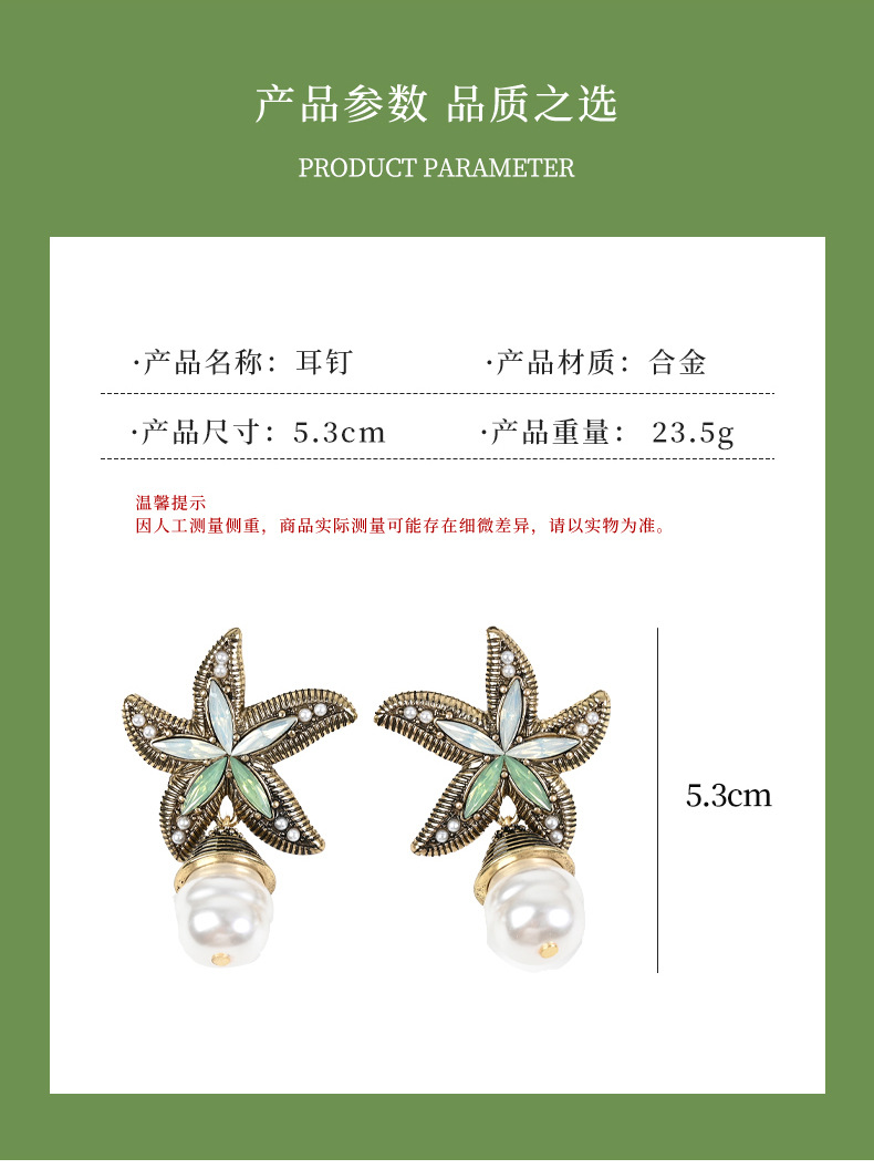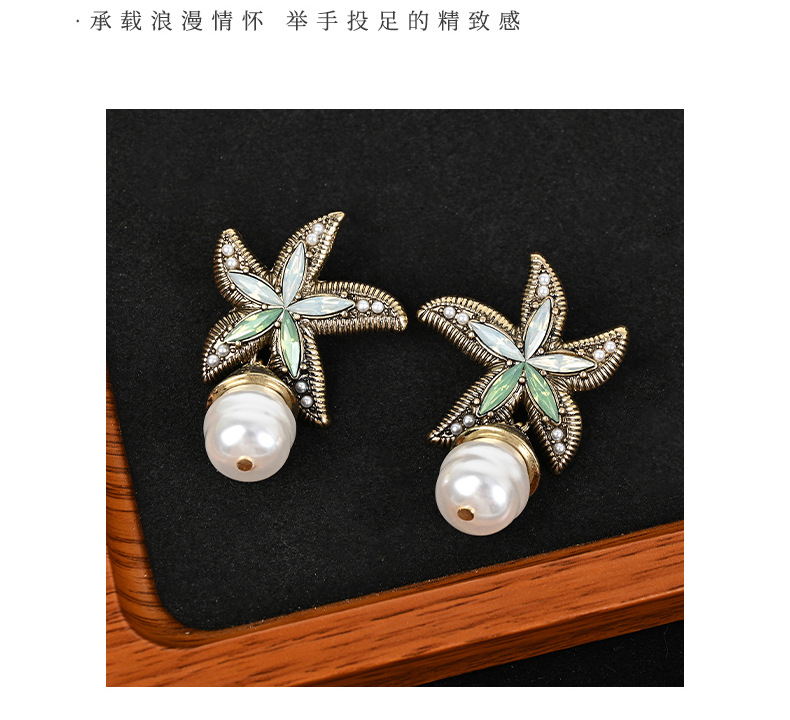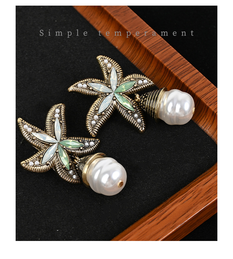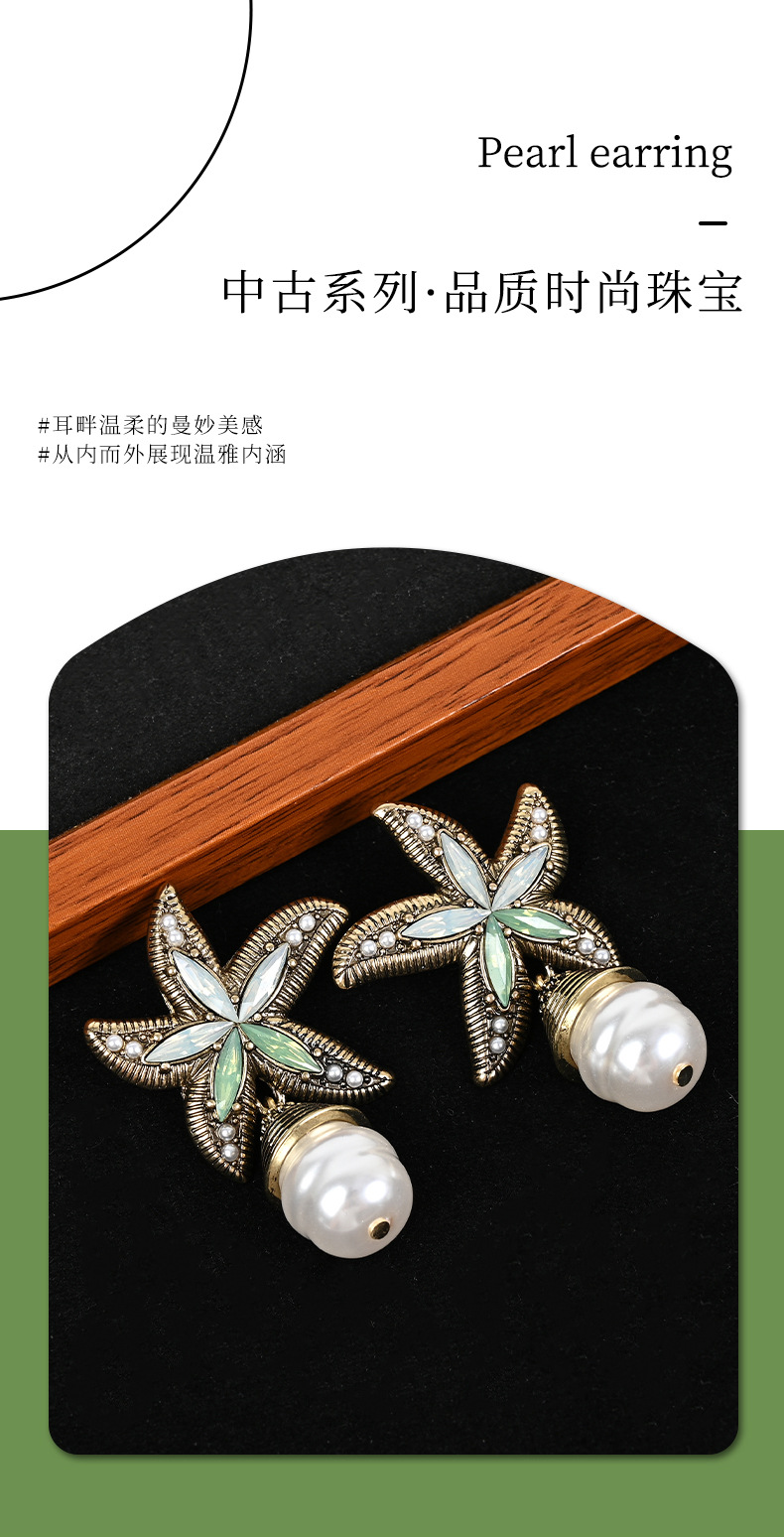 中古海洋系列珍珠海星耳坠 潮流海边沙滩风夸张个性约会旅游耳钉