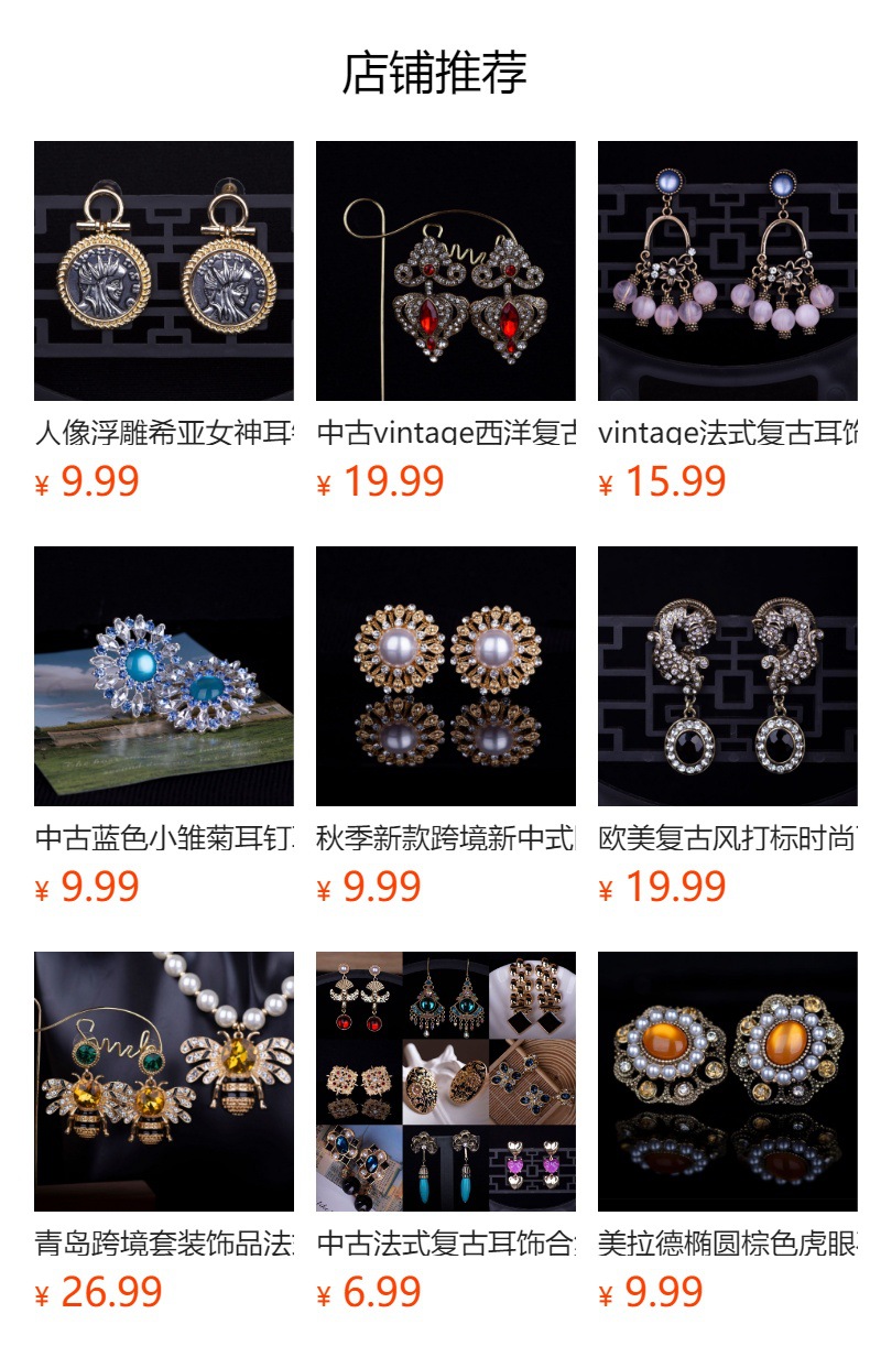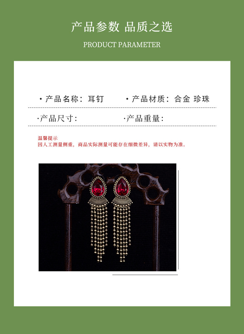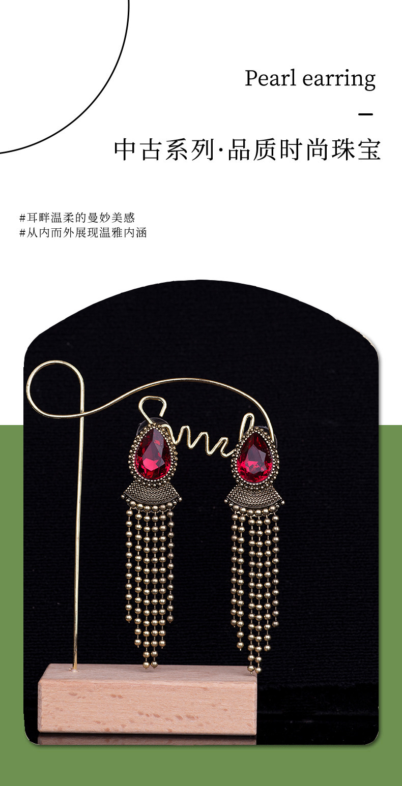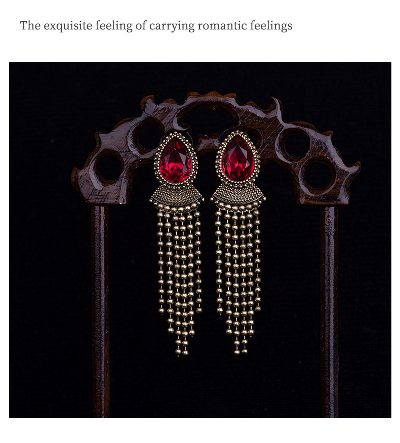 青岛饰品法式复古扫肩款耳钉几何形长款流苏莱茵石925银针耳饰