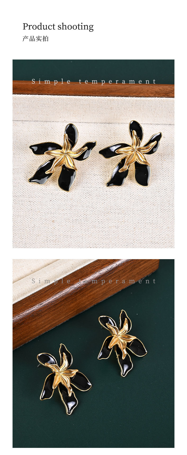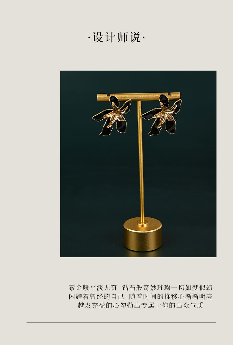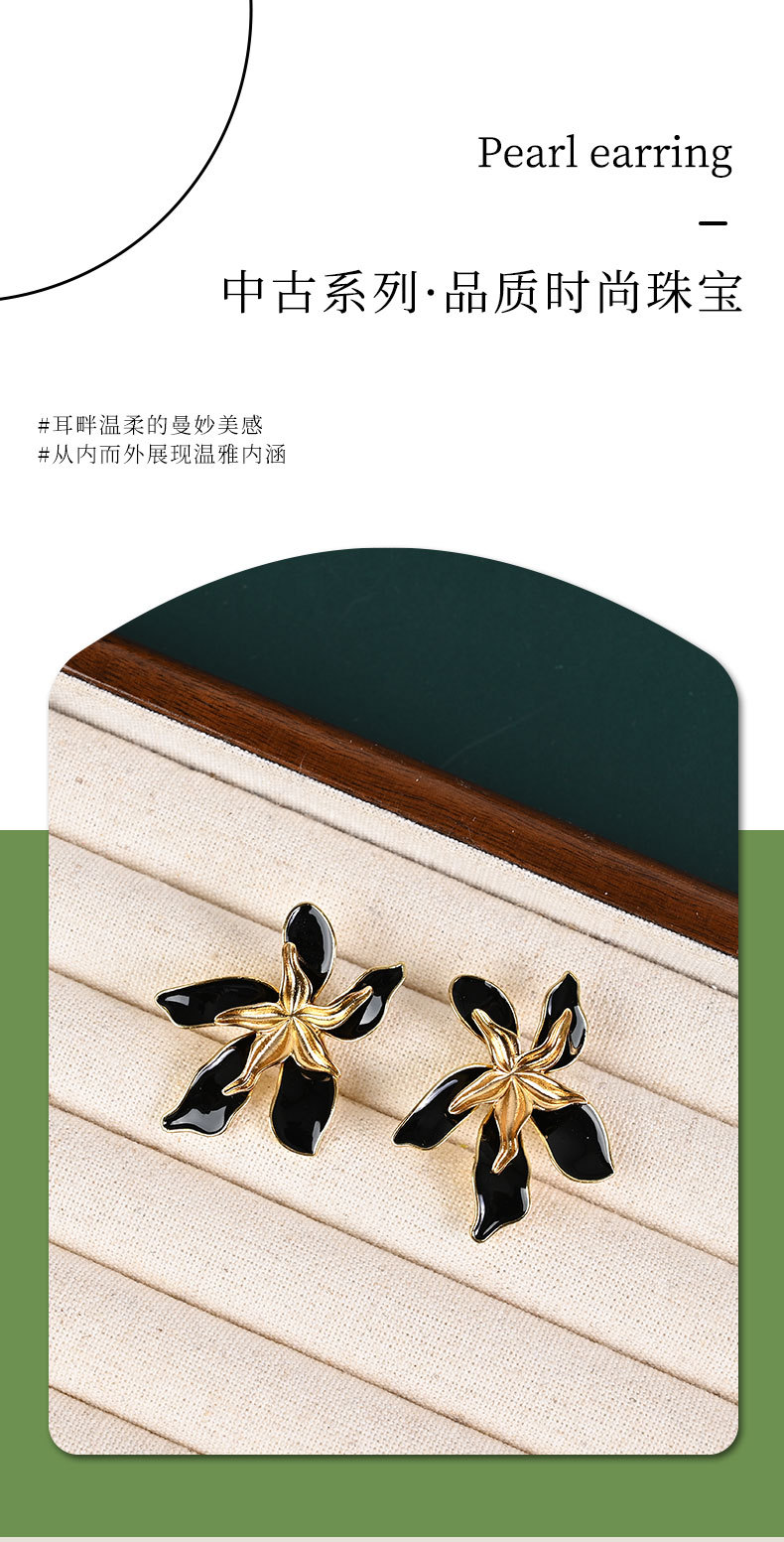 黑色闪钻花瓣耳钉 潮流小巧轻奢感耳环 时尚复古文艺新款耳饰女