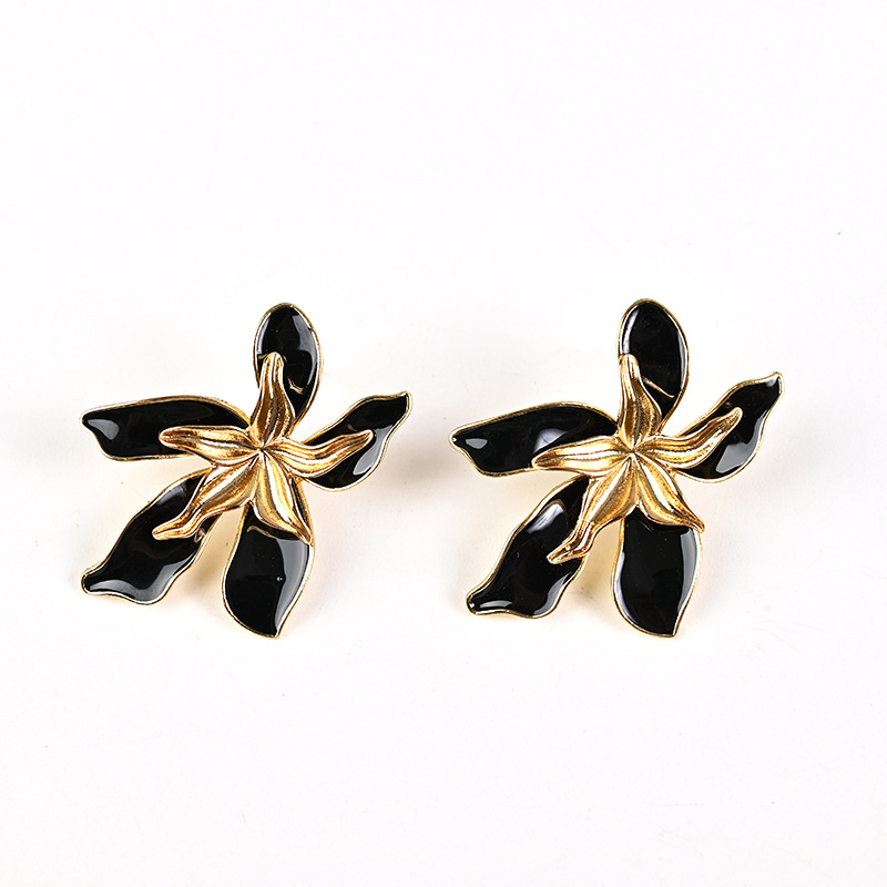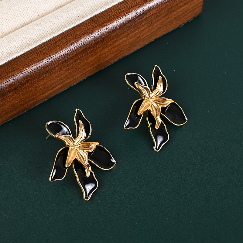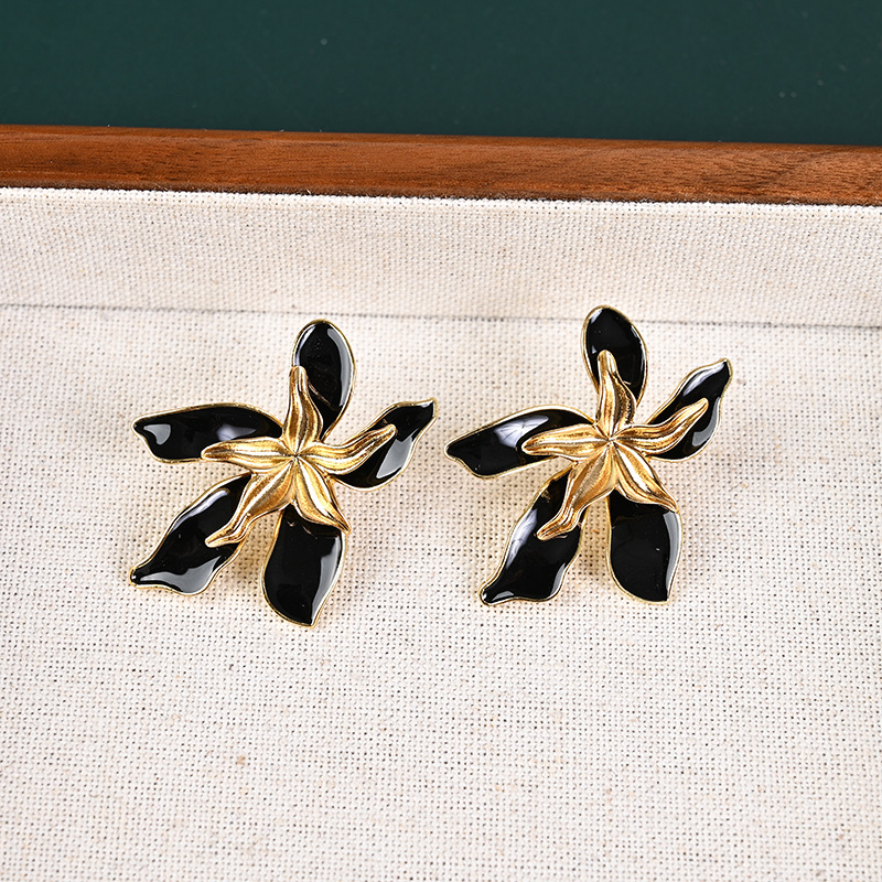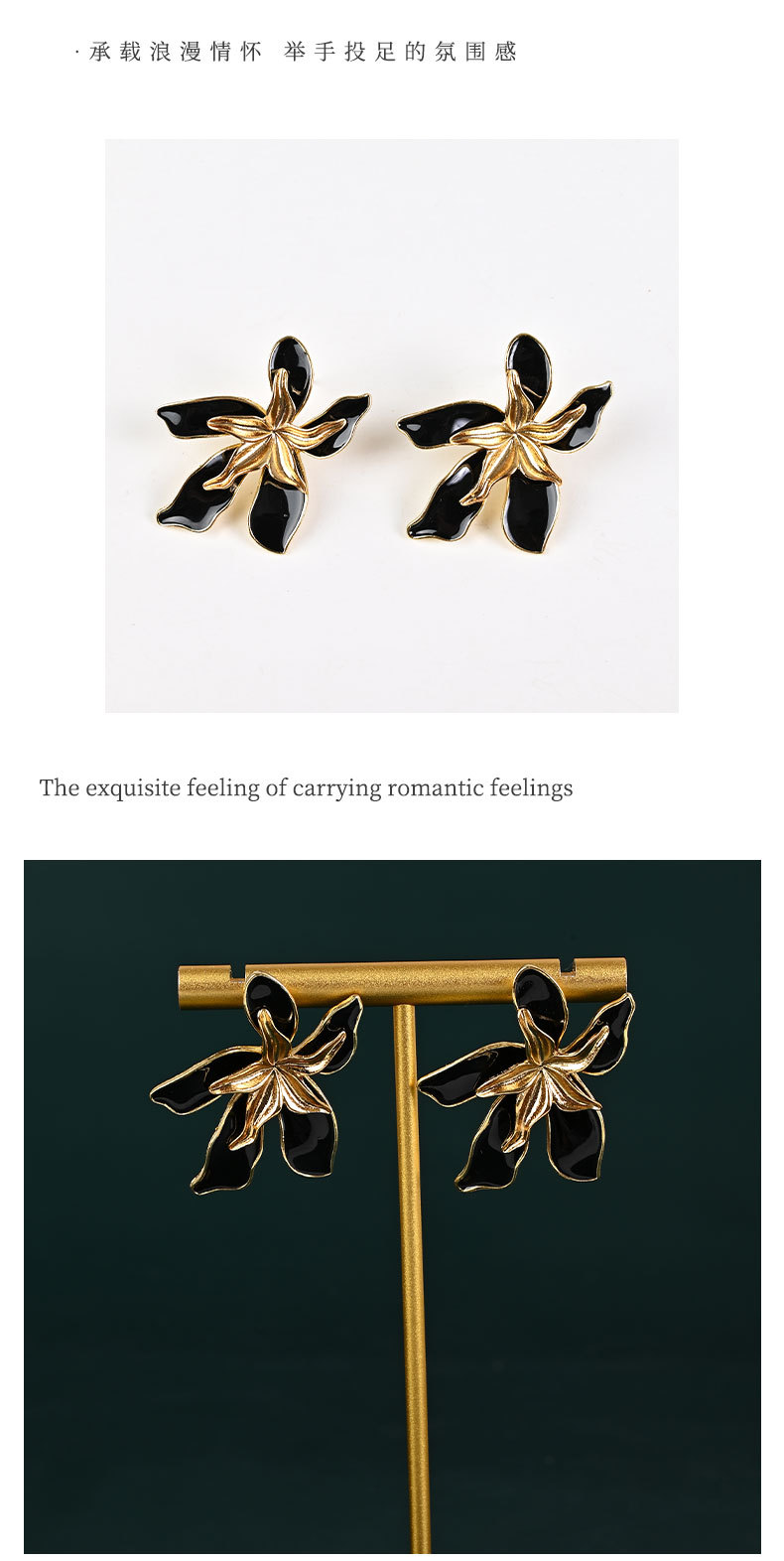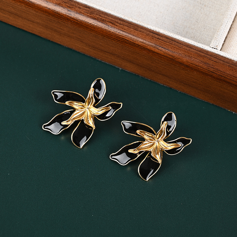 黑色闪钻花瓣耳钉 潮流小巧轻奢感耳环 时尚复古文艺新款耳饰女