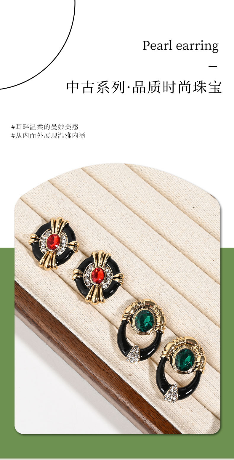 夏季新款椭圆几何形复古合金ins耳钉不对称复古耳饰小众高级感女