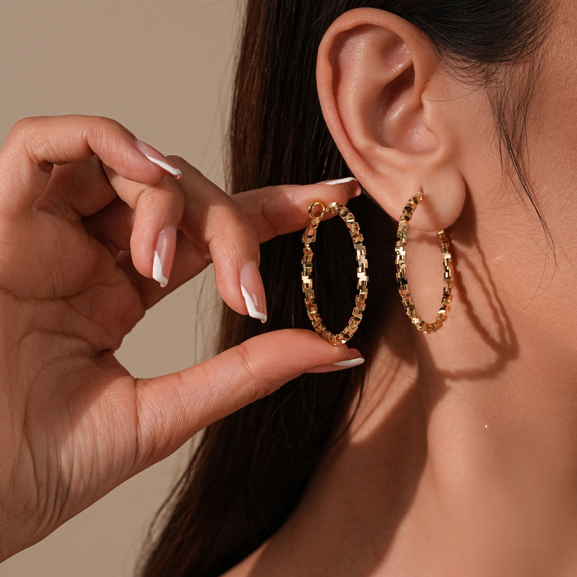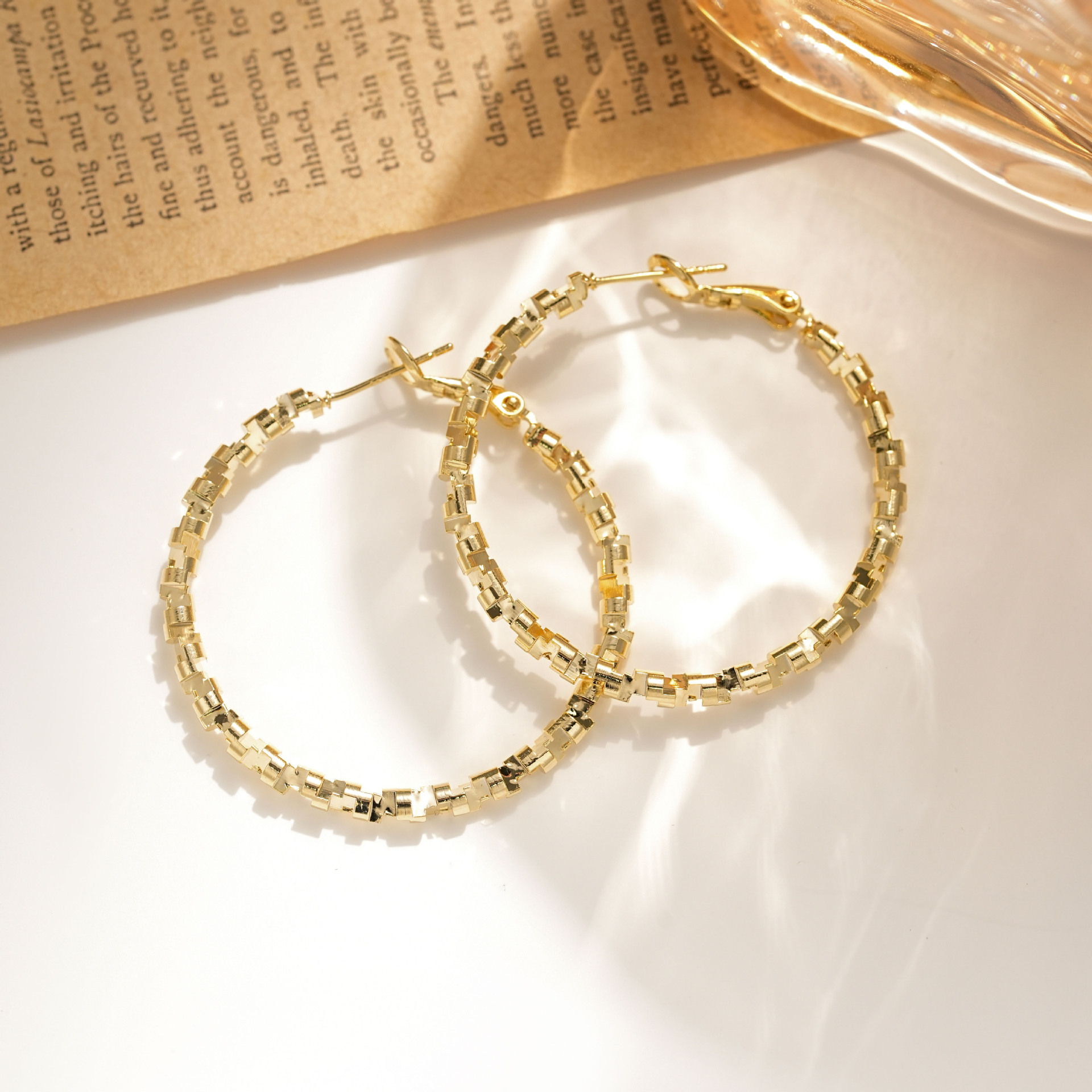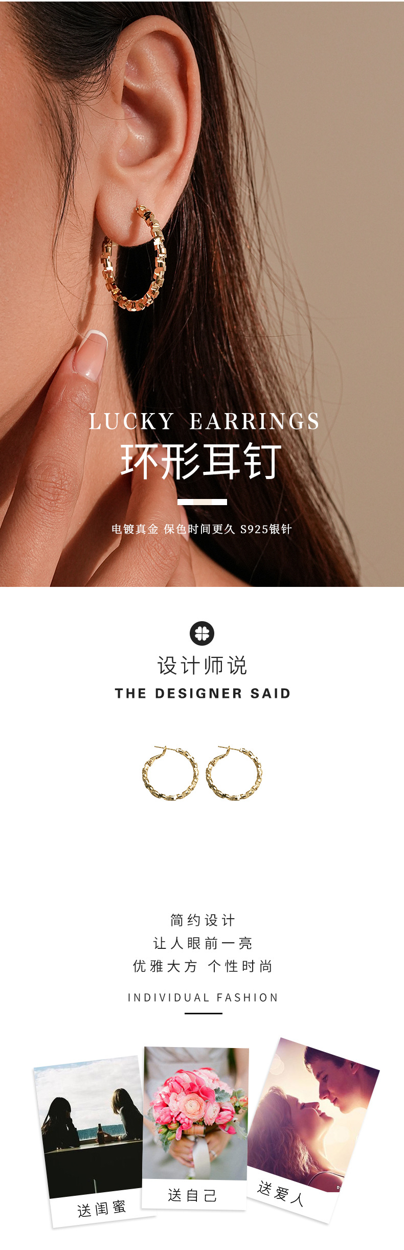 欧美夸张大圈圈耳环女ins风高品质S925银针耳饰设计感14K金耳圈潮