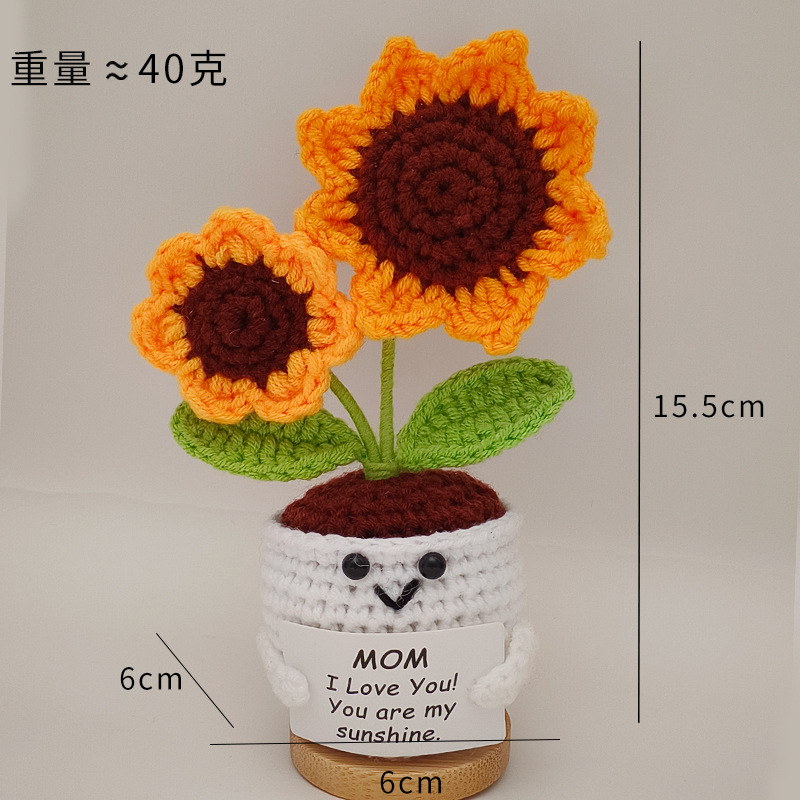 跨境亚马逊毛线钩织向日葵盆栽手工针织玩偶积极土豆蜜蜂摆件定制