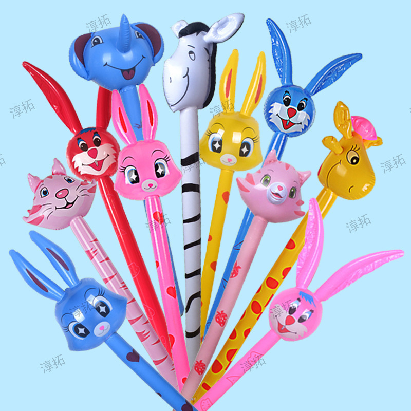 地摊热卖卡通PVC冲气玩具长颈鹿带响动物头棒子地推礼品充气长棒