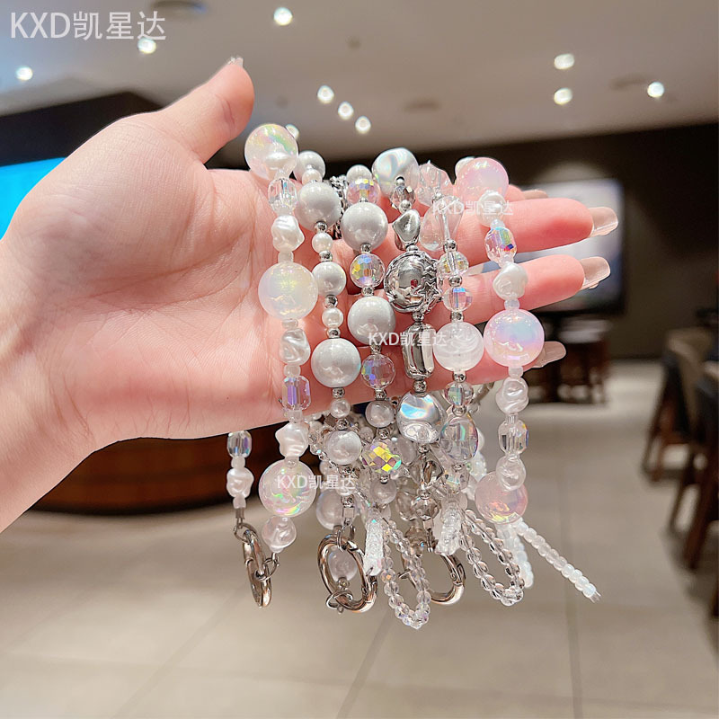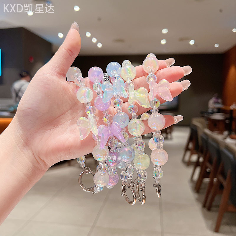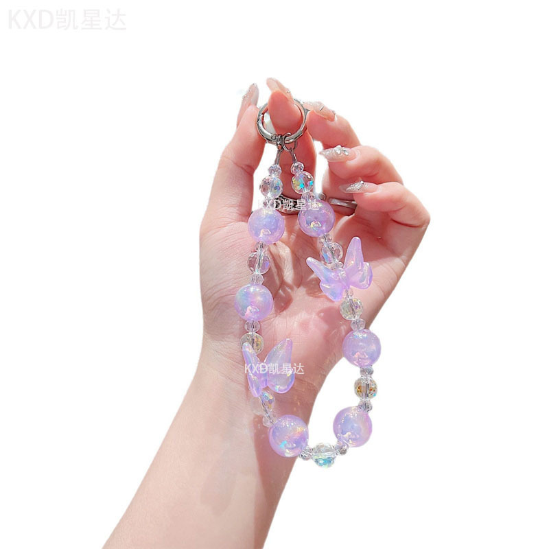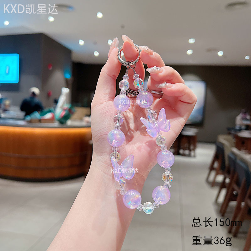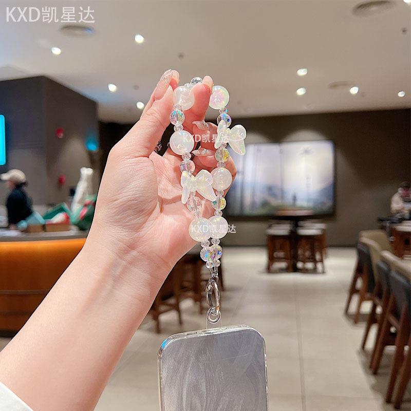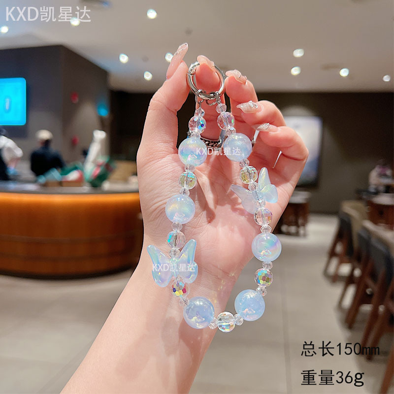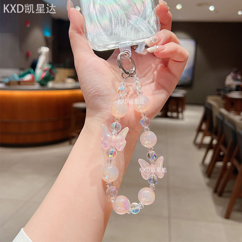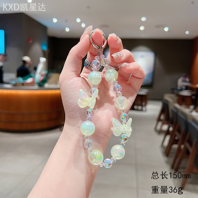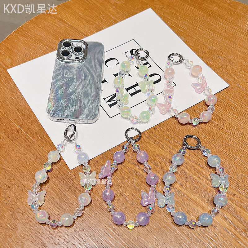 新款手工蝴蝶串珠手机挂链手腕式手机挂件珠手机壳挂饰绳短款钥匙