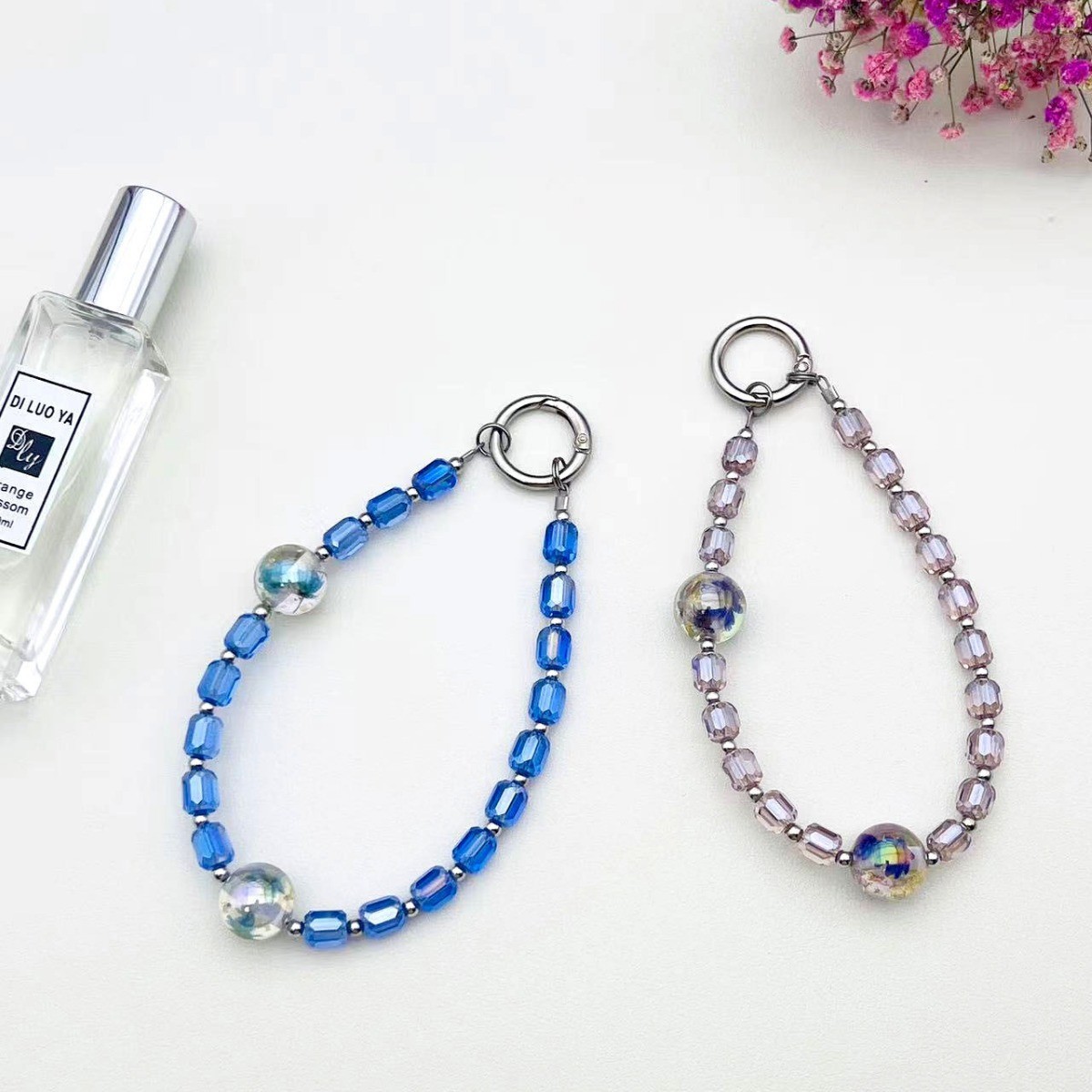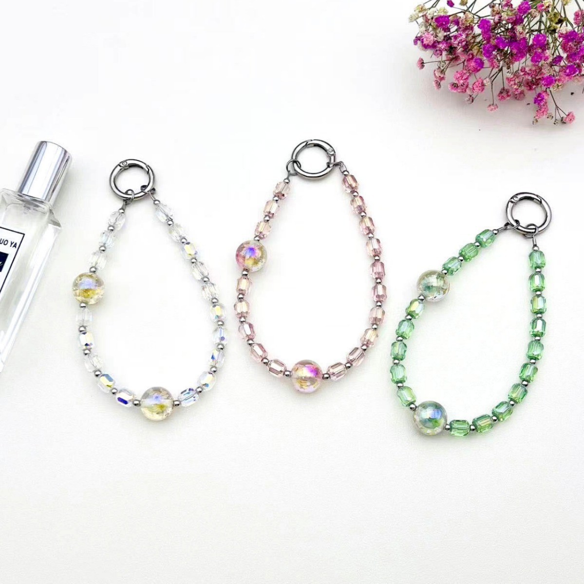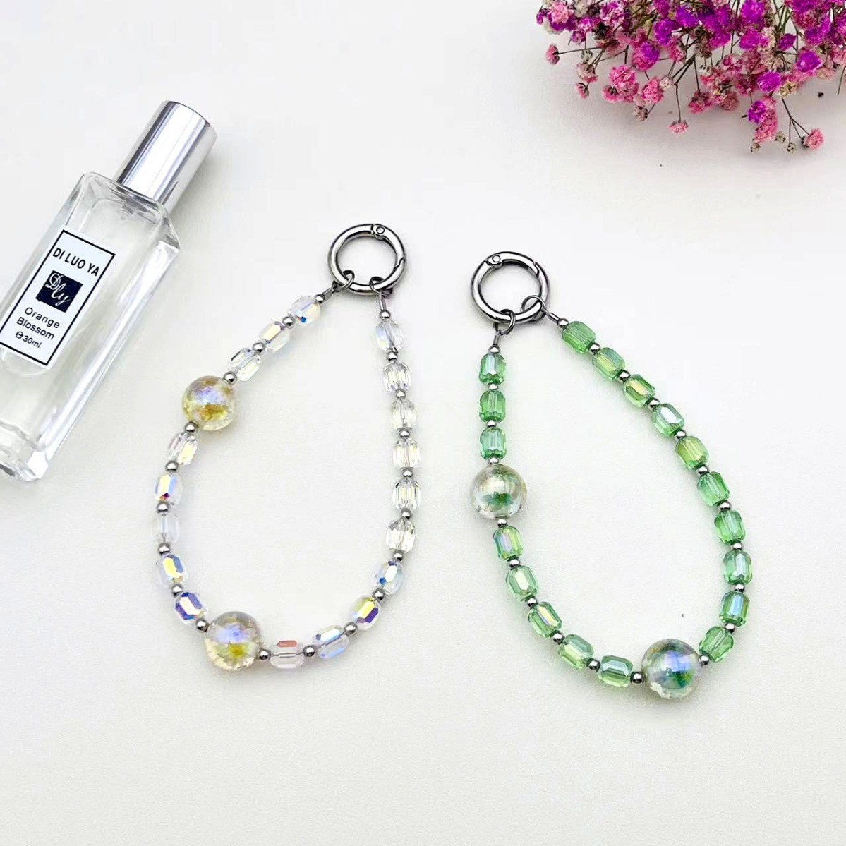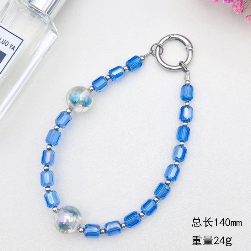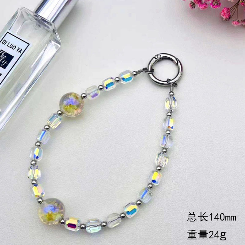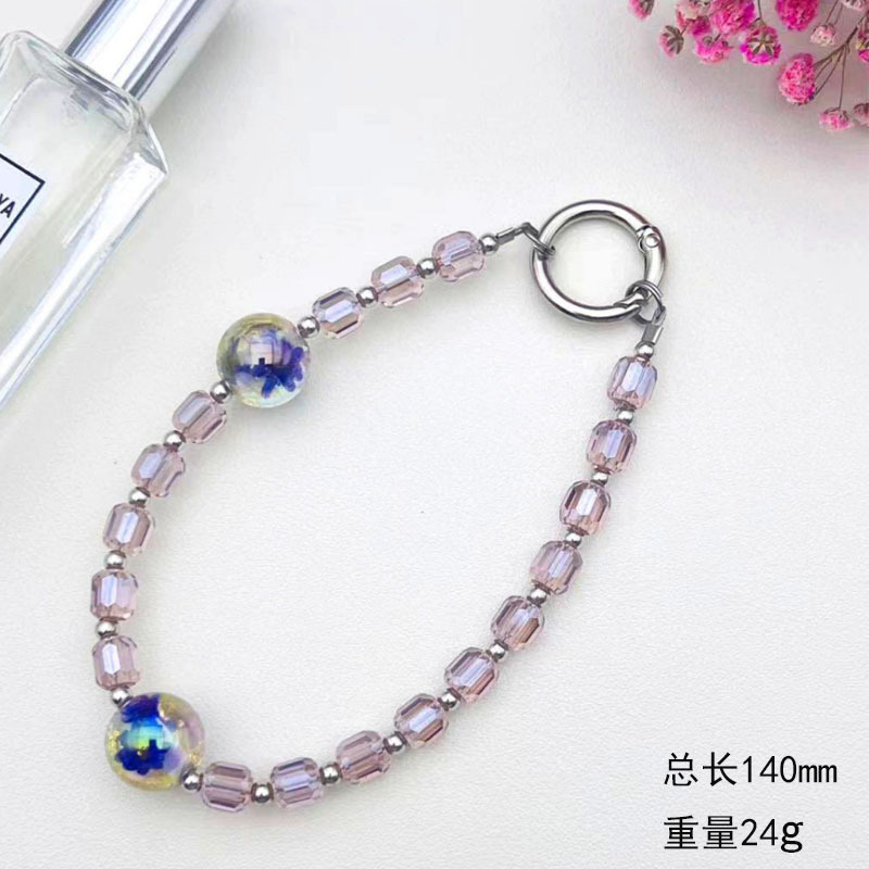 创意夏日干花金箔水晶桶珠手机链手机挂绳高端手机手链挂手腕便携