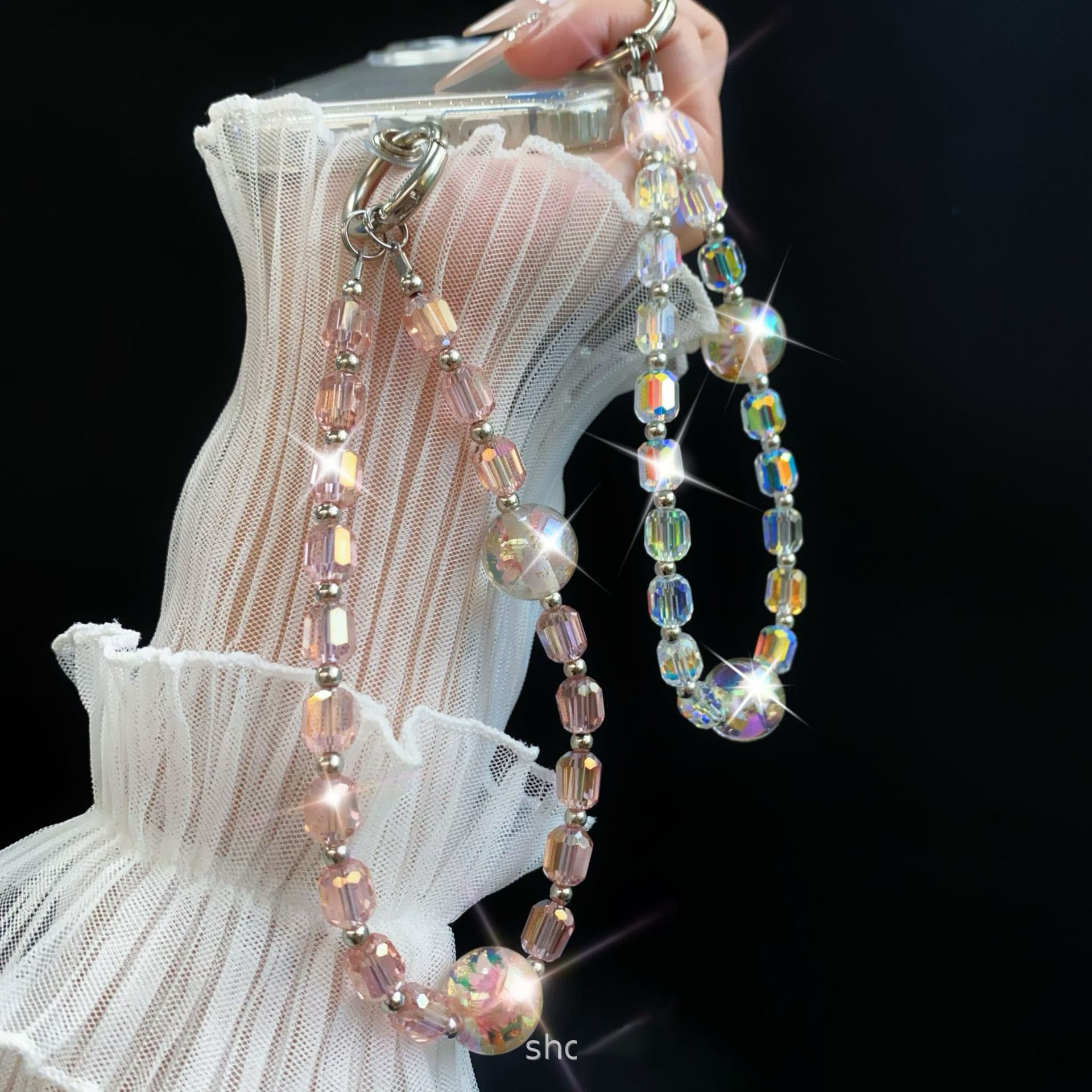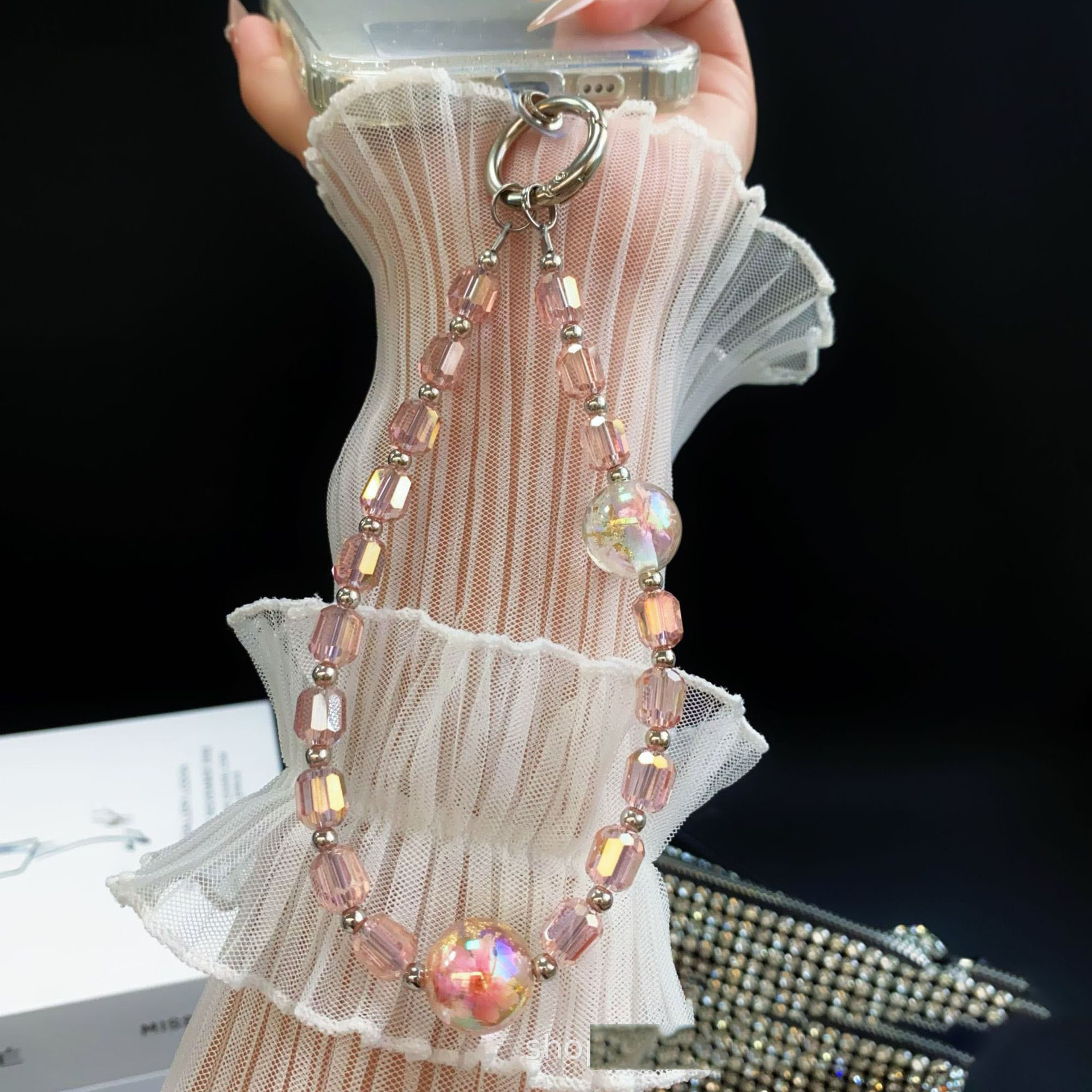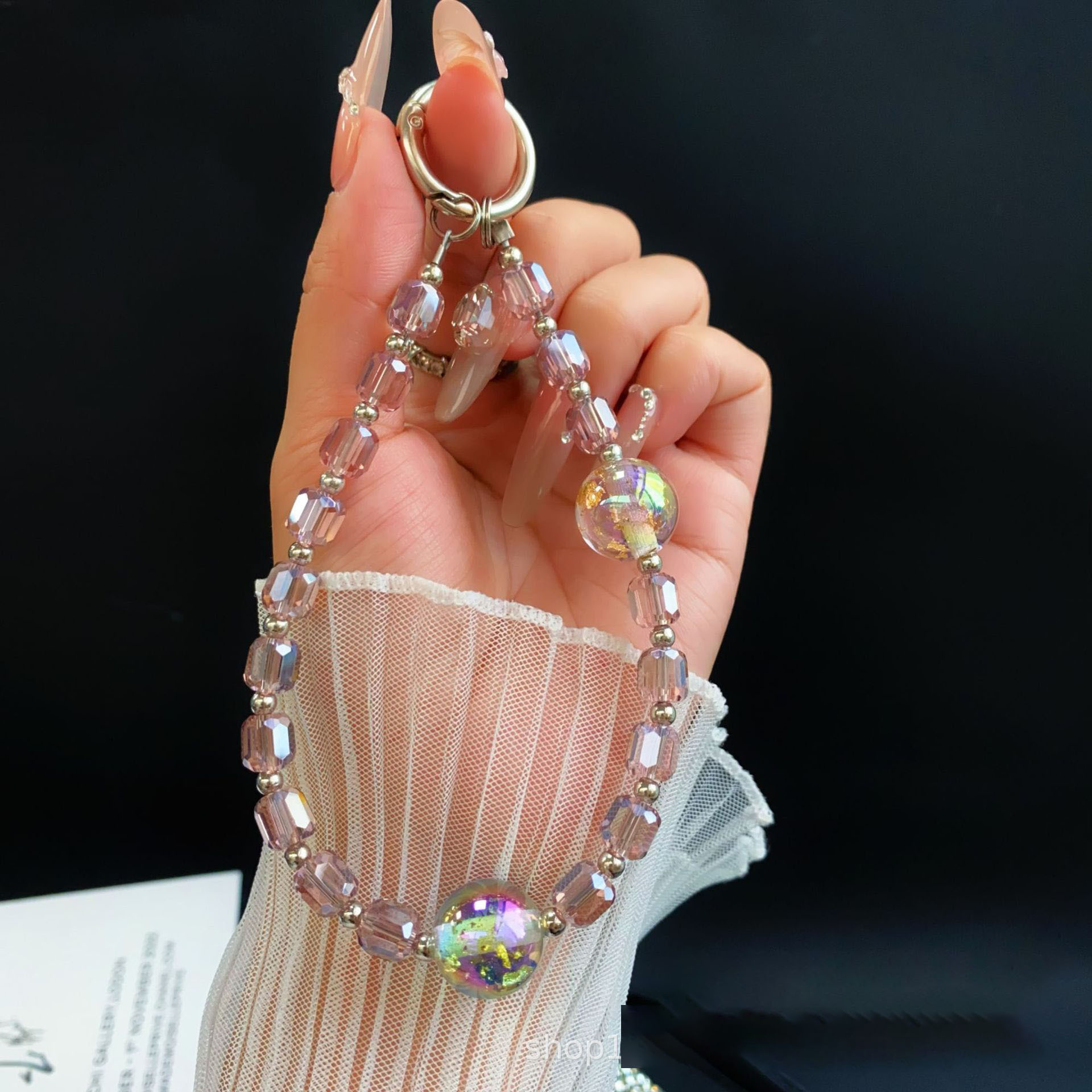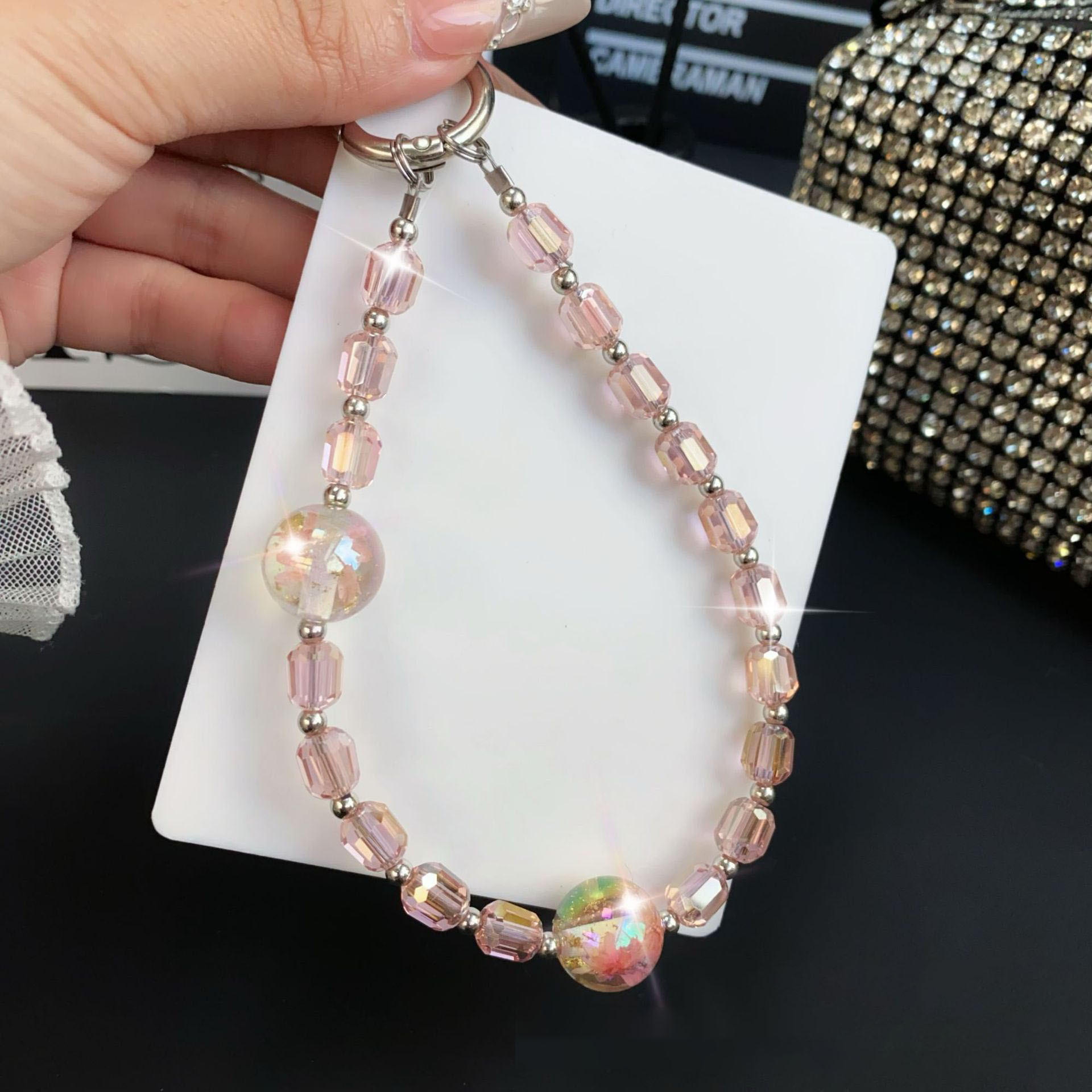 新款琉璃花球彩色水晶手机挂链 小清新包包钥匙挂绳 串珠短款挂件
