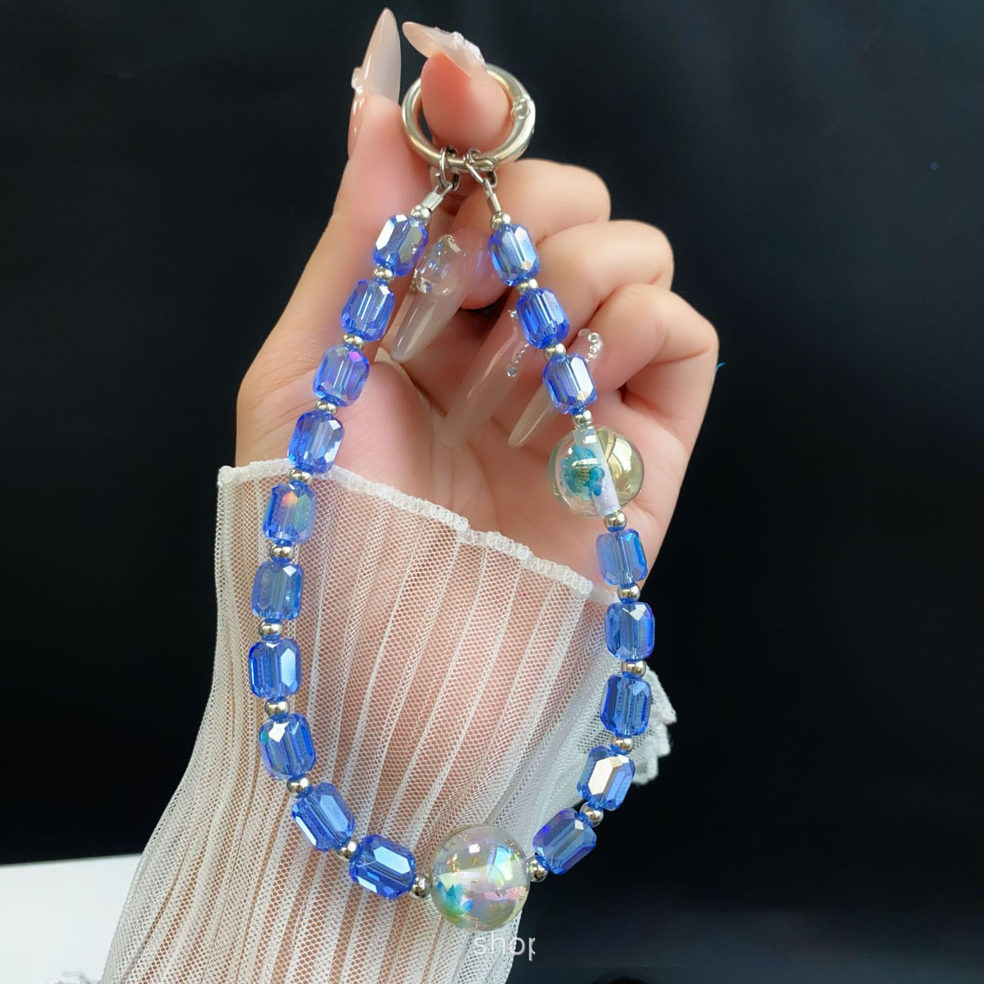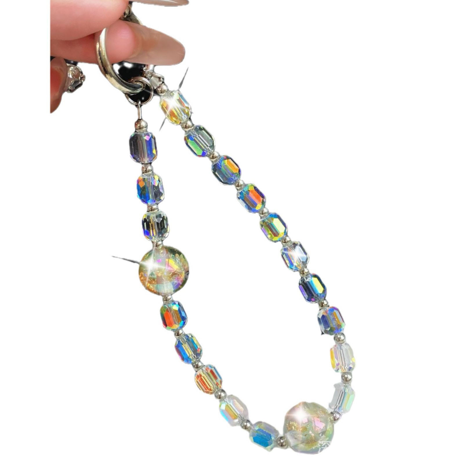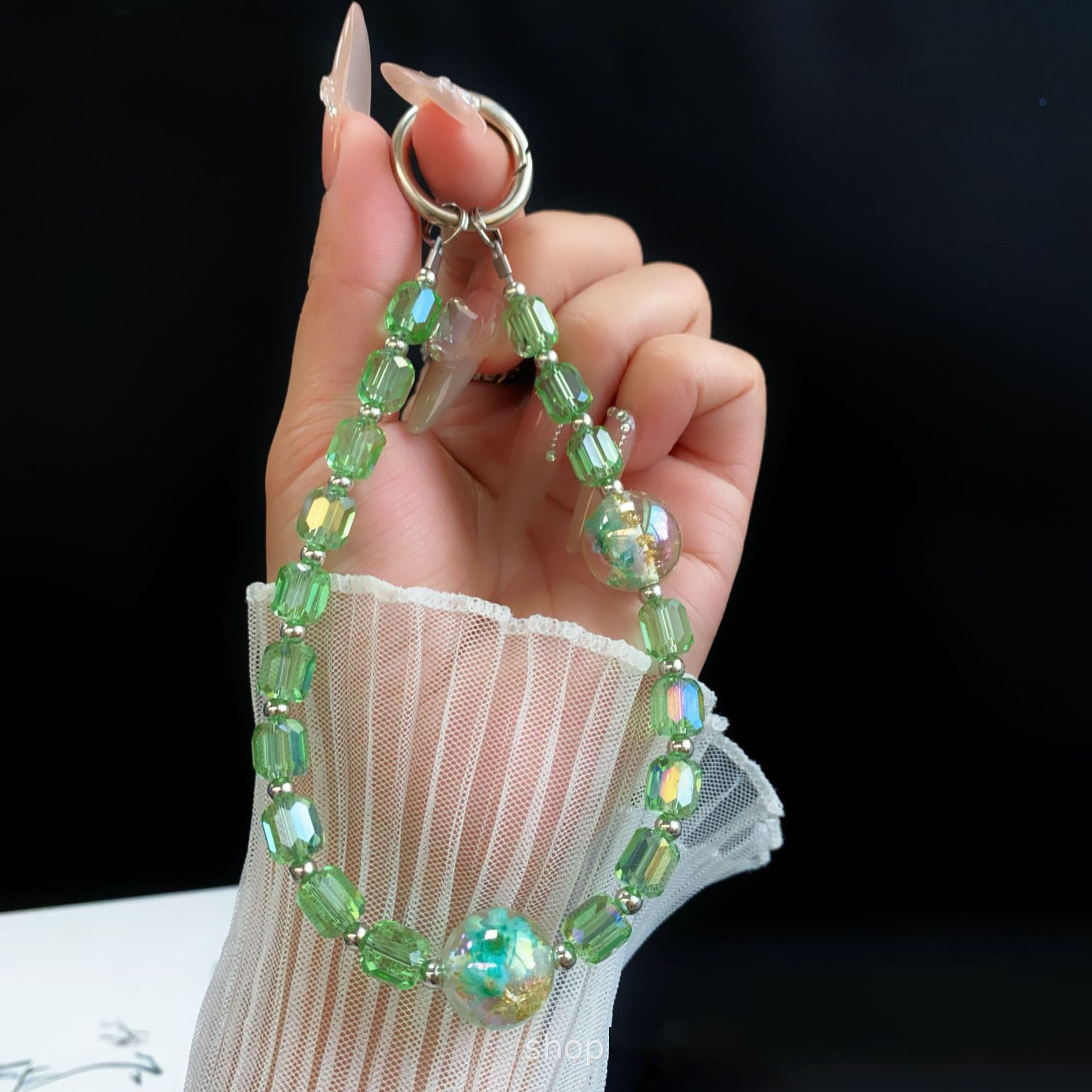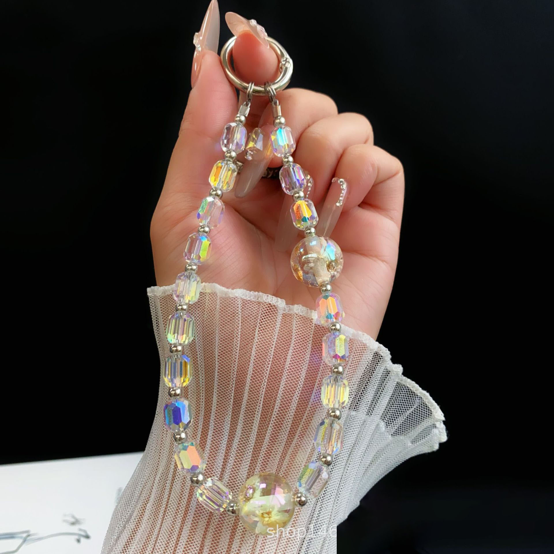新款琉璃花球彩色水晶手机挂链 小清新包包钥匙挂绳 串珠短款挂件