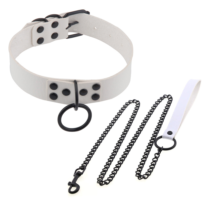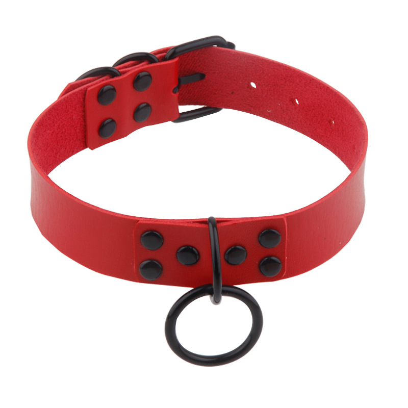 欧美暗黑夜店哥特风皮革项圈项链 个性时尚黑钉O形颈圈颈链锁骨链