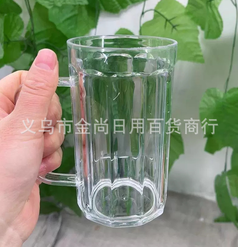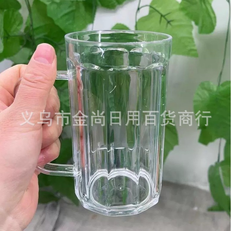 批发 透明钢化塑料杯 扎啤杯水杯酒杯啤酒杯 带手把杯两元店货源