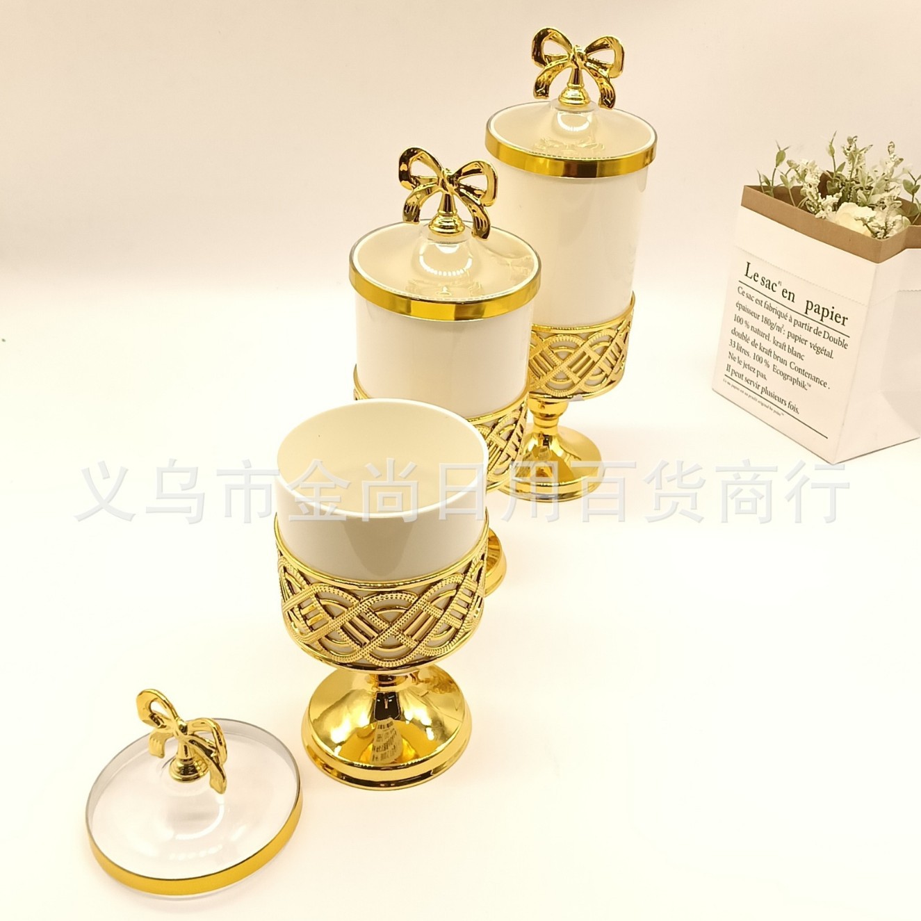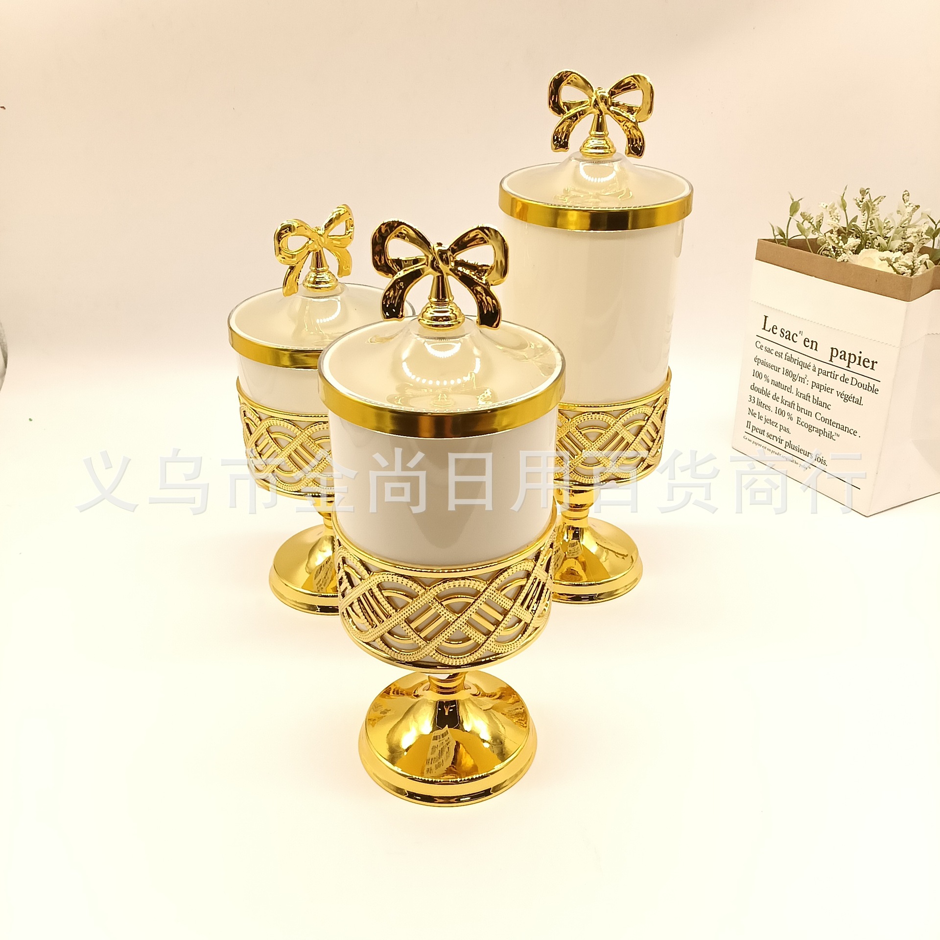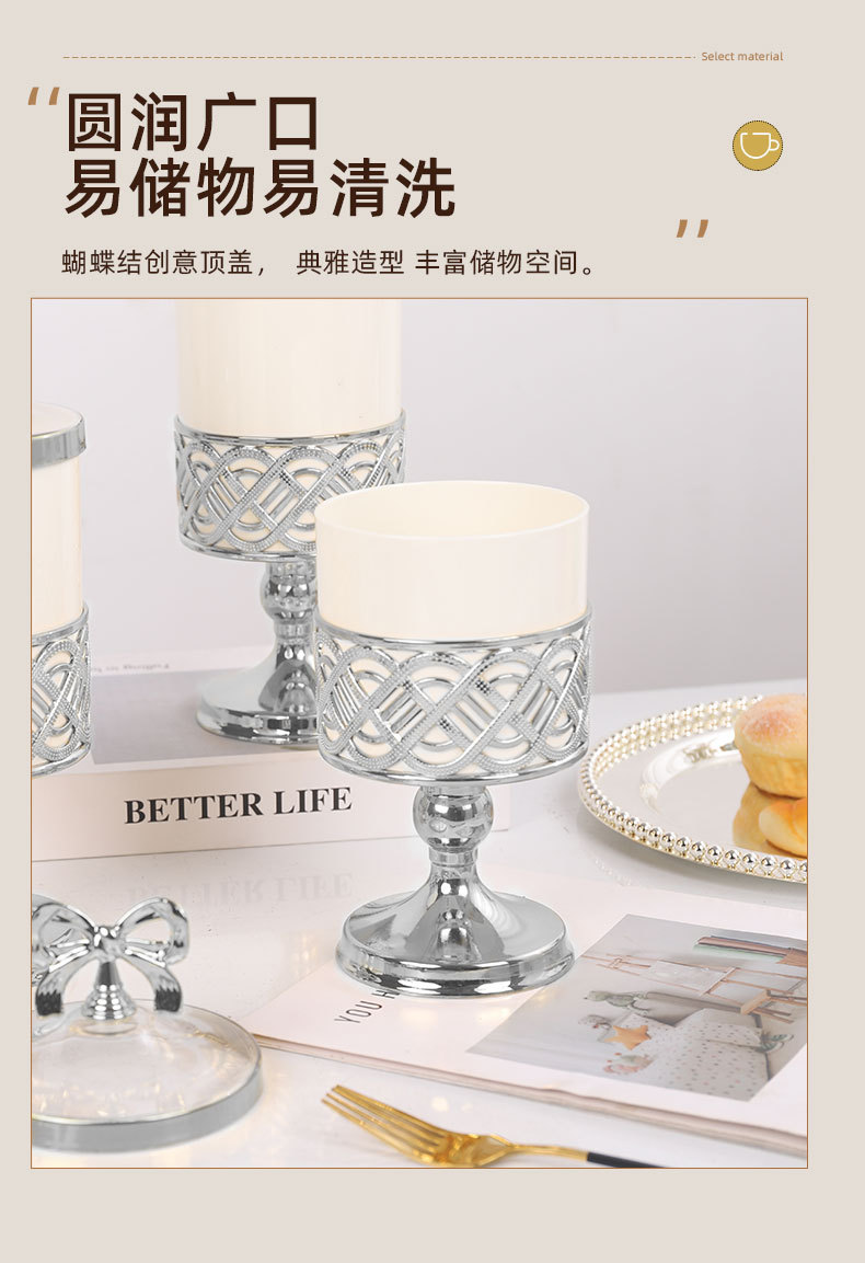 跨境金色轻奢糖果罐欧式银糖果收纳罐三件套透明收纳罐餐桌客厅装
