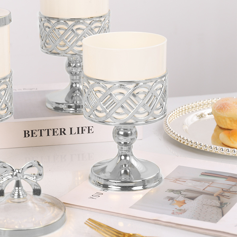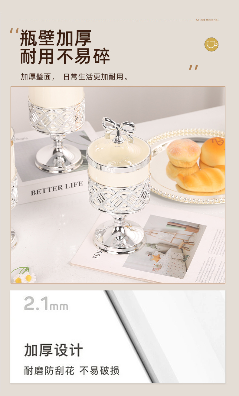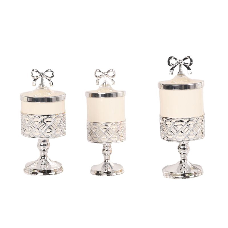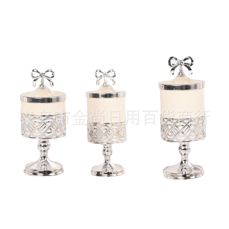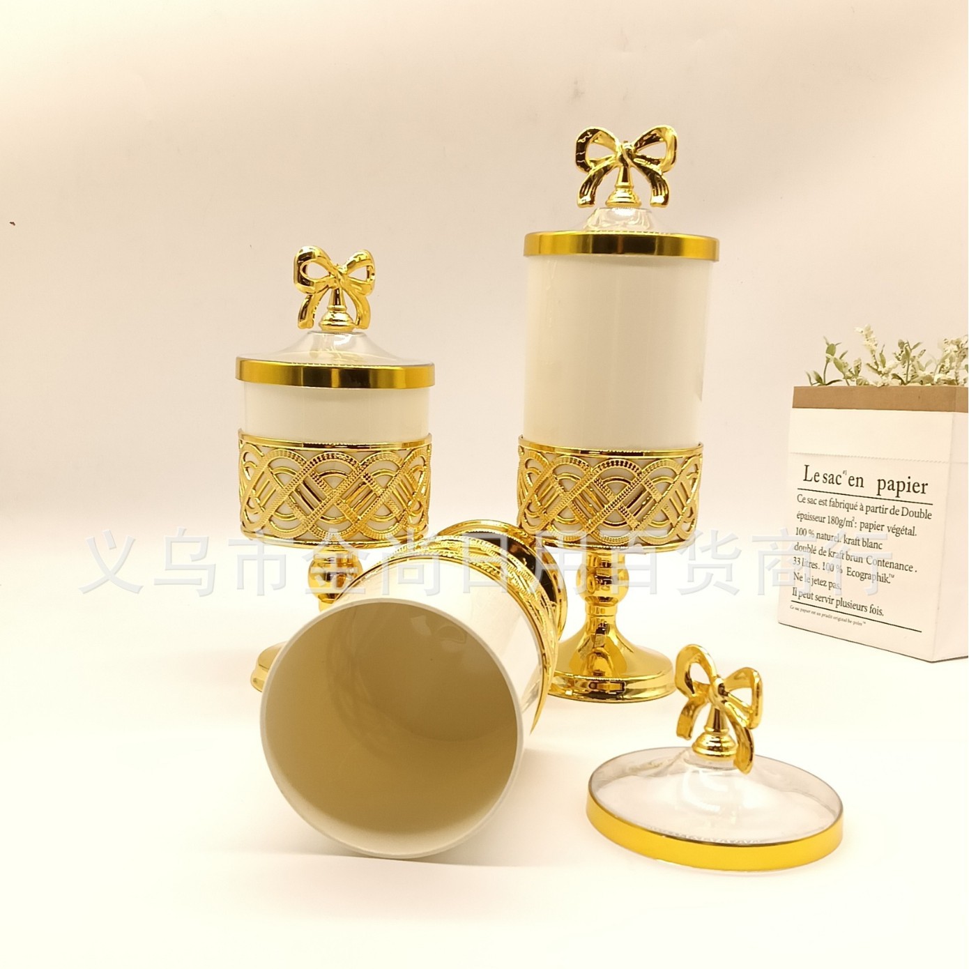 跨境金色轻奢糖果罐欧式银糖果收纳罐三件套透明收纳罐餐桌客厅装