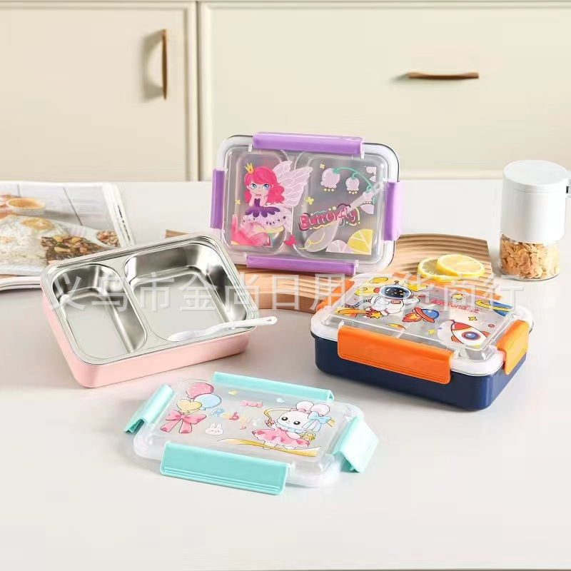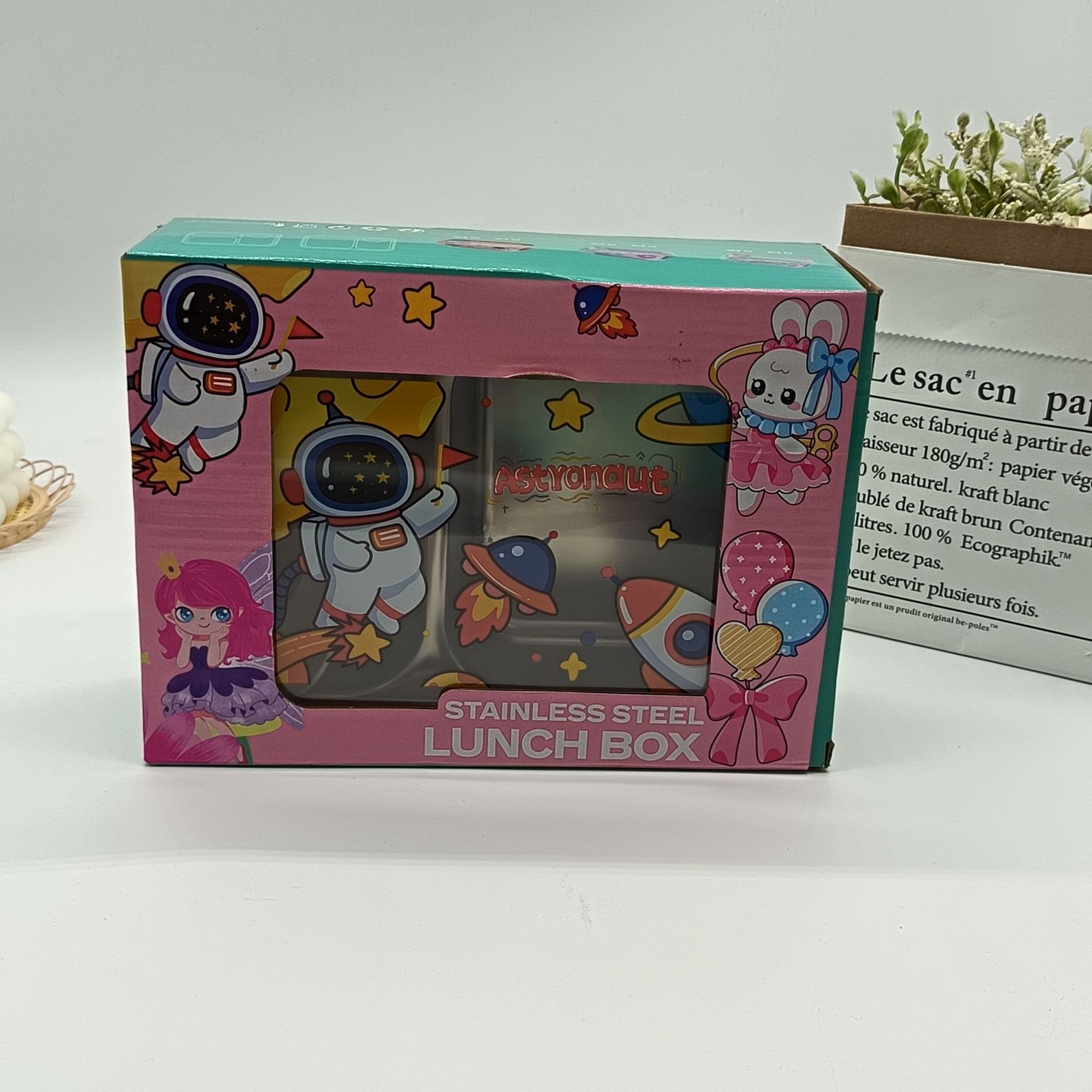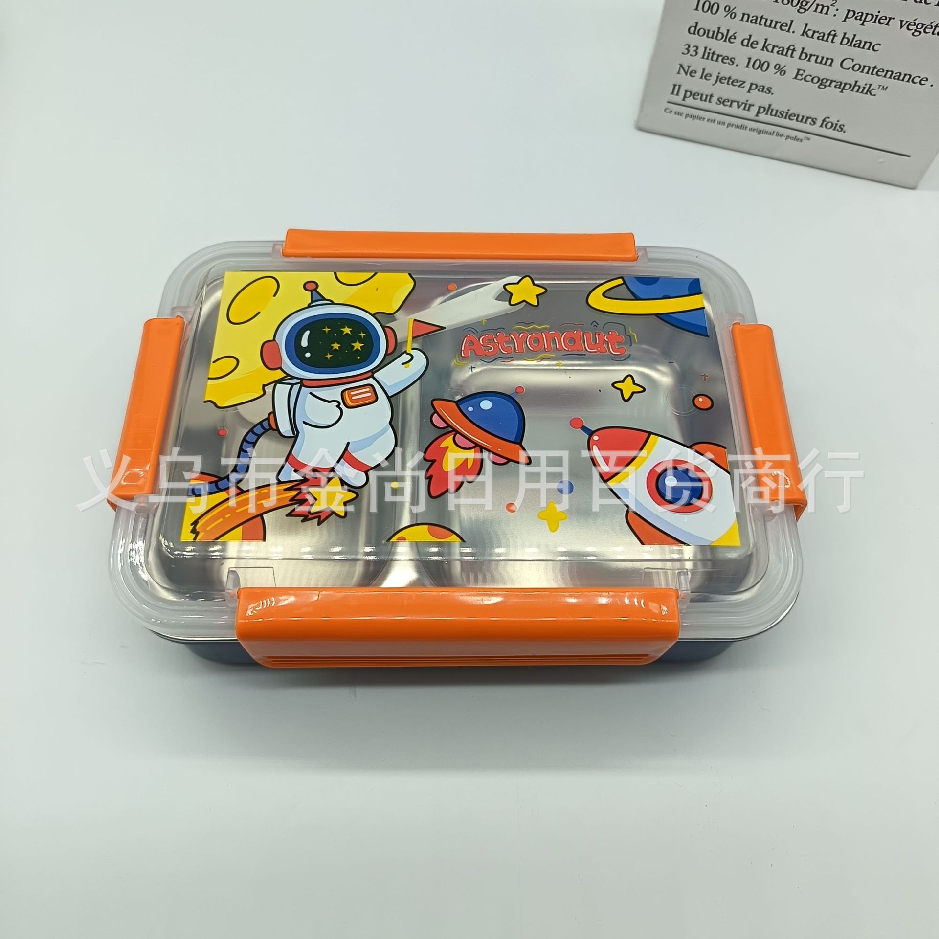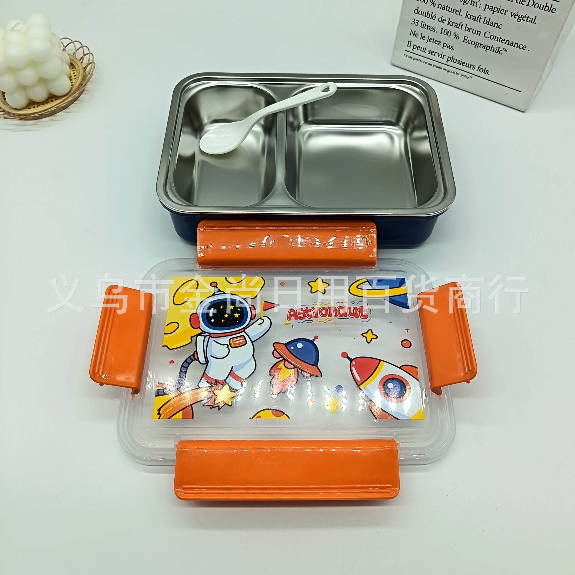 儿童宇航员图案不锈钢饭盒 环保便携午餐盒 学生可爱保温便当盒