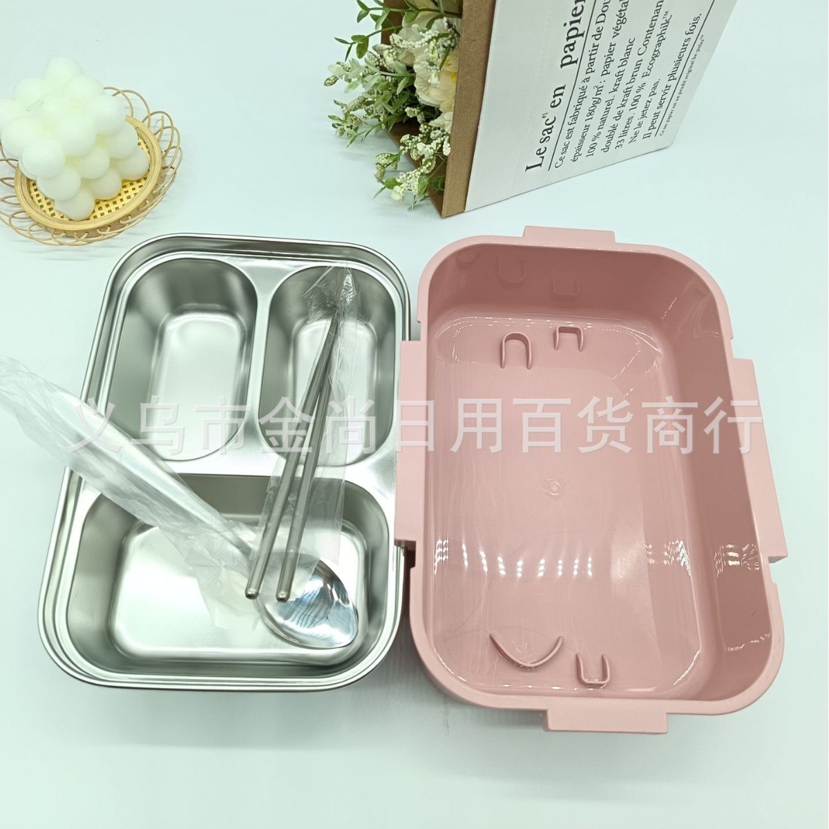 2025新款简约便当盒不锈钢餐盒学生办公餐盒密封分格时尚餐盒批发