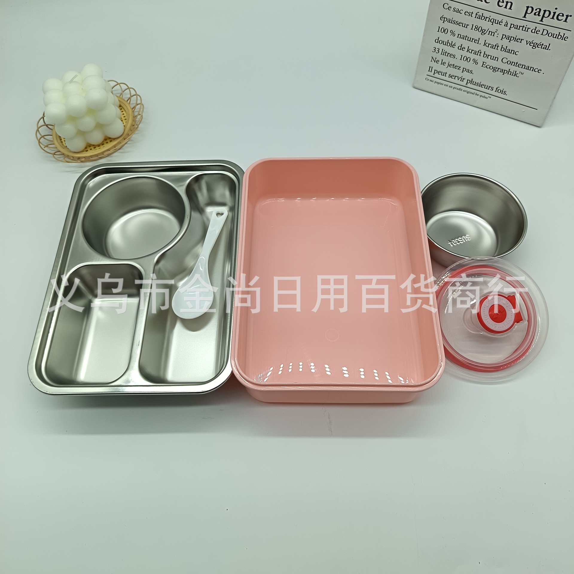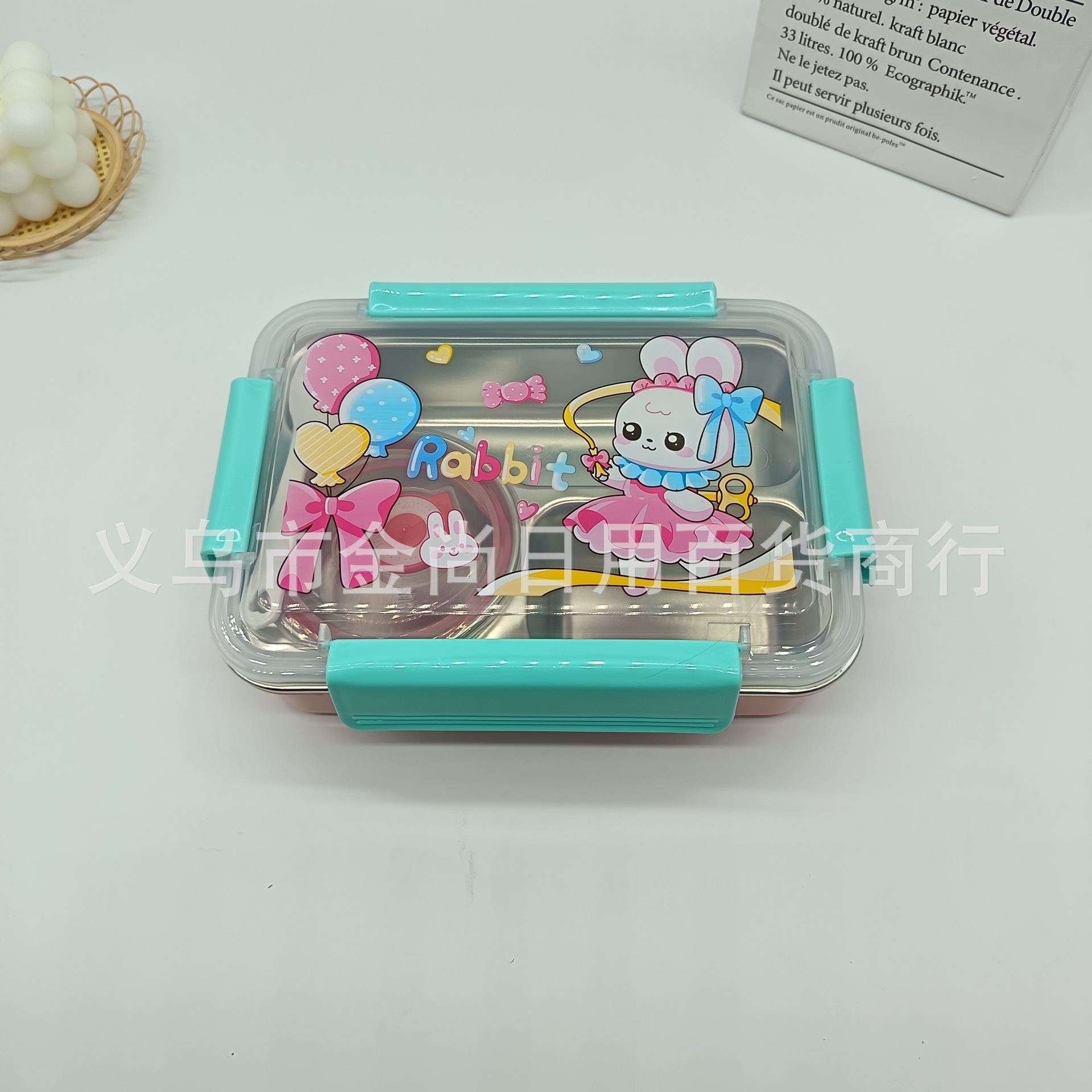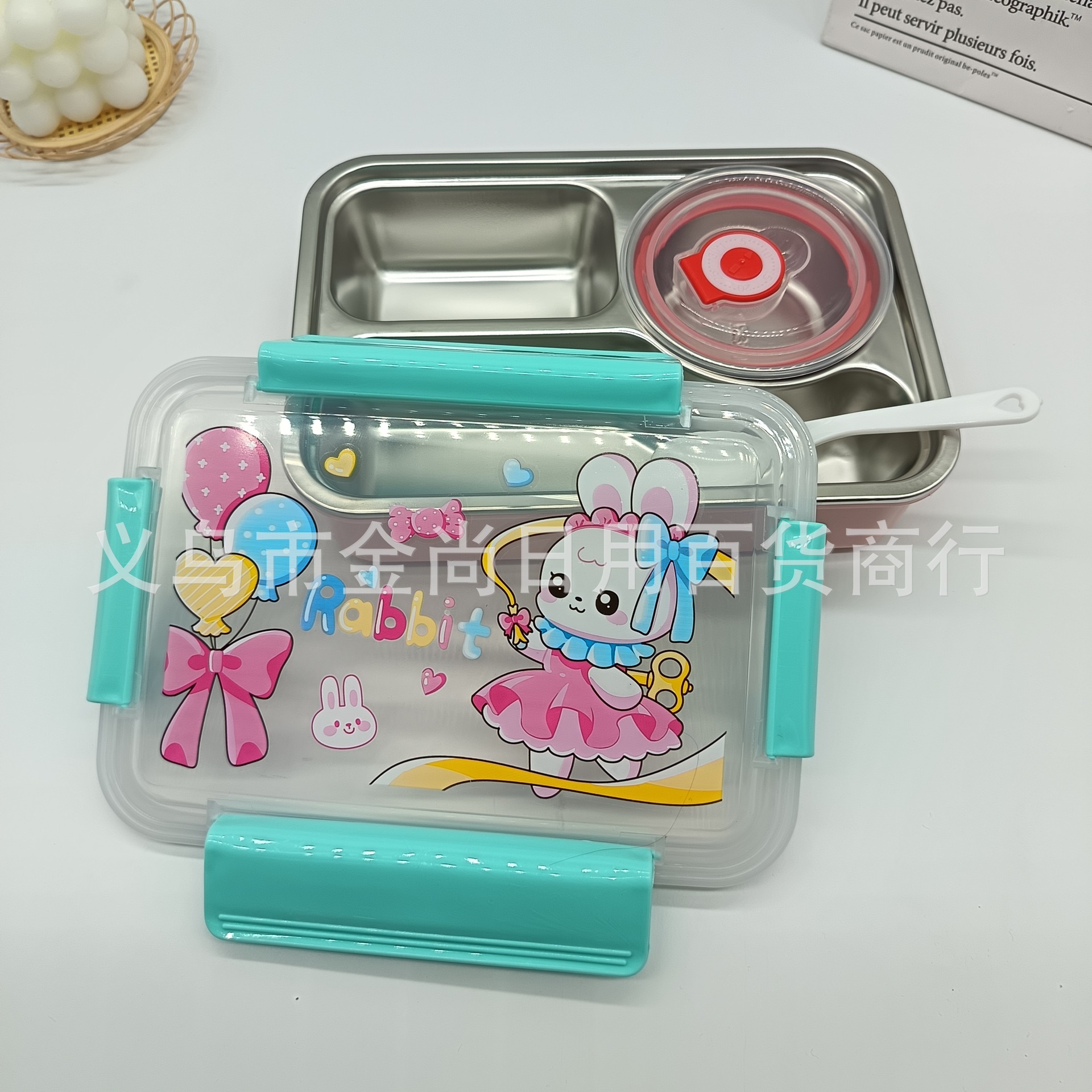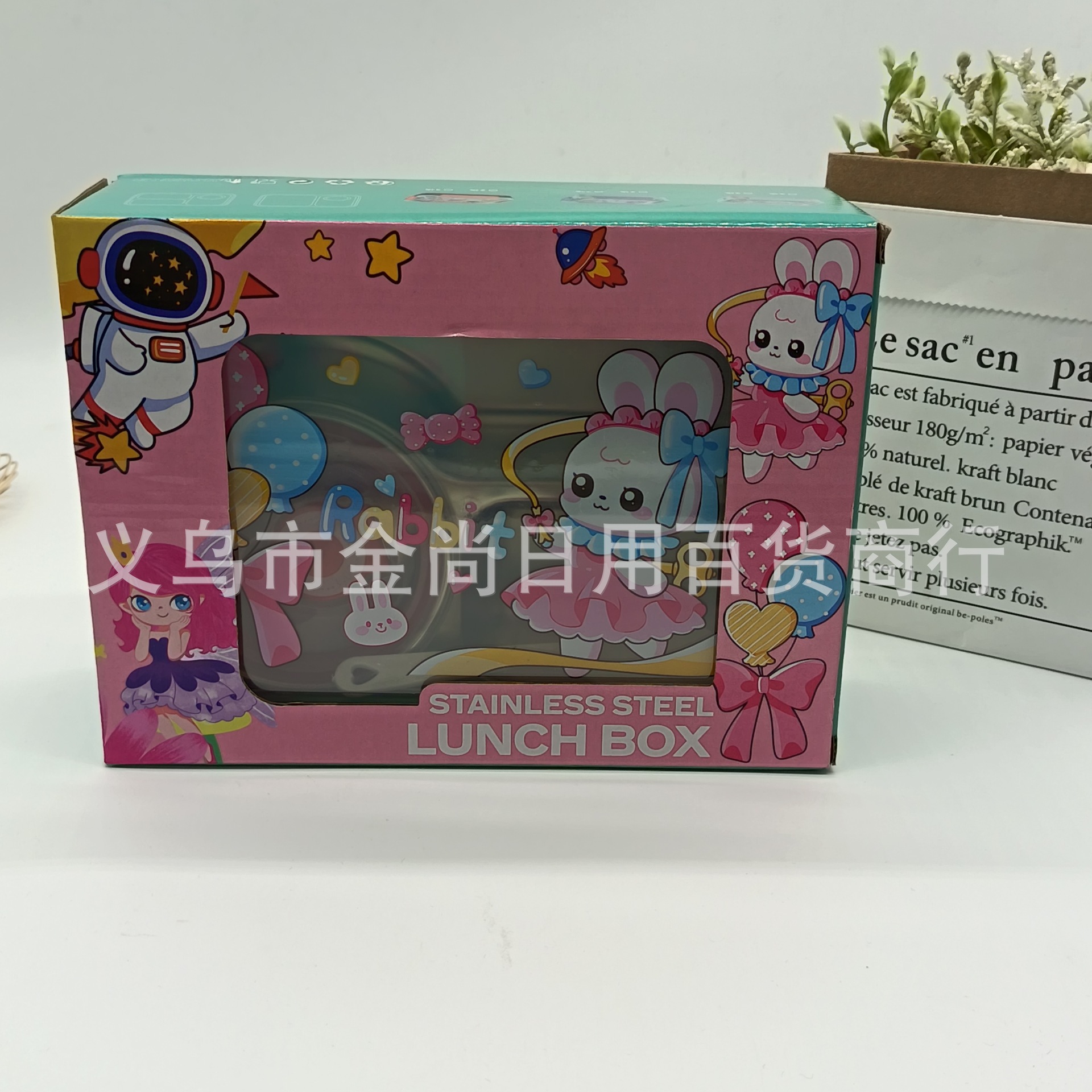 儿童兔兔图案不锈钢饭盒 环保便携午餐盒 学生可爱保温便当盒