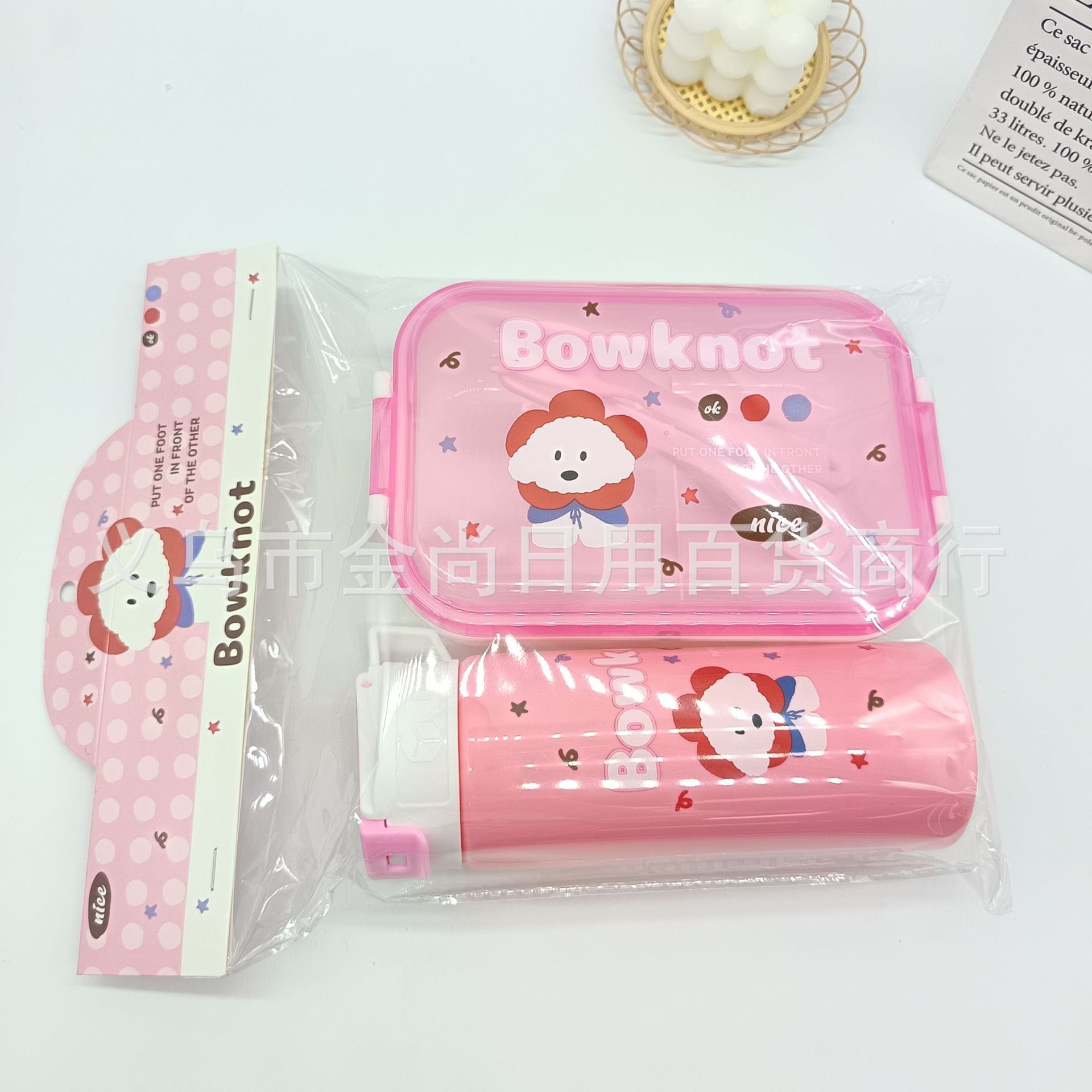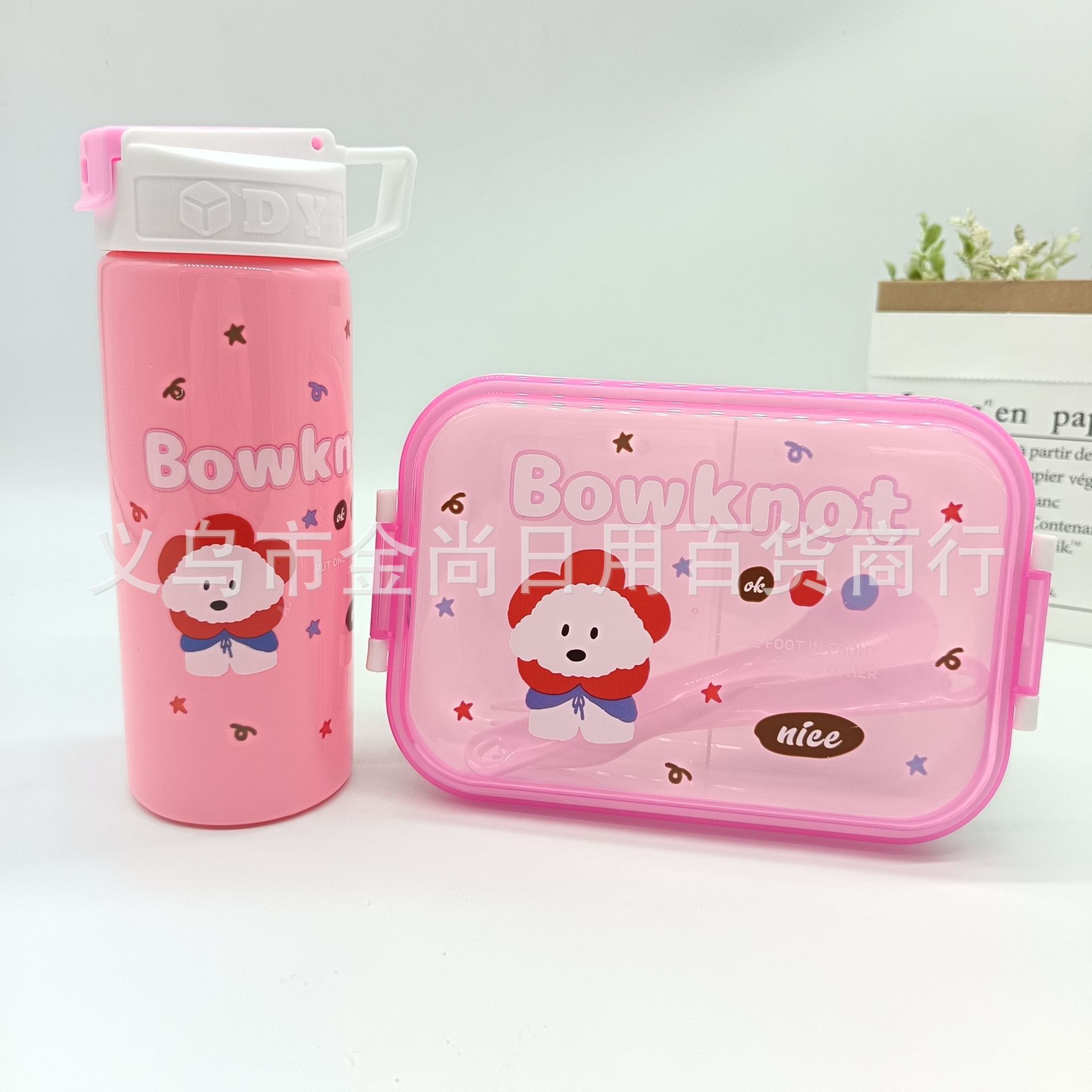 2025卡通可爱分格水杯饭盒套装午餐盒带盖饭盒学生上班便携带餐具