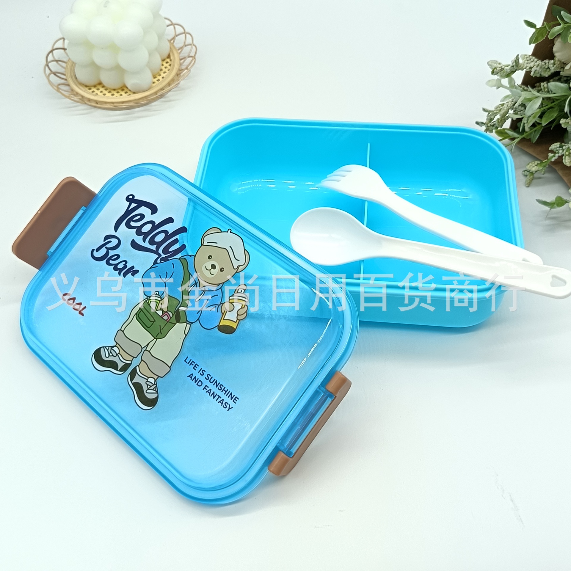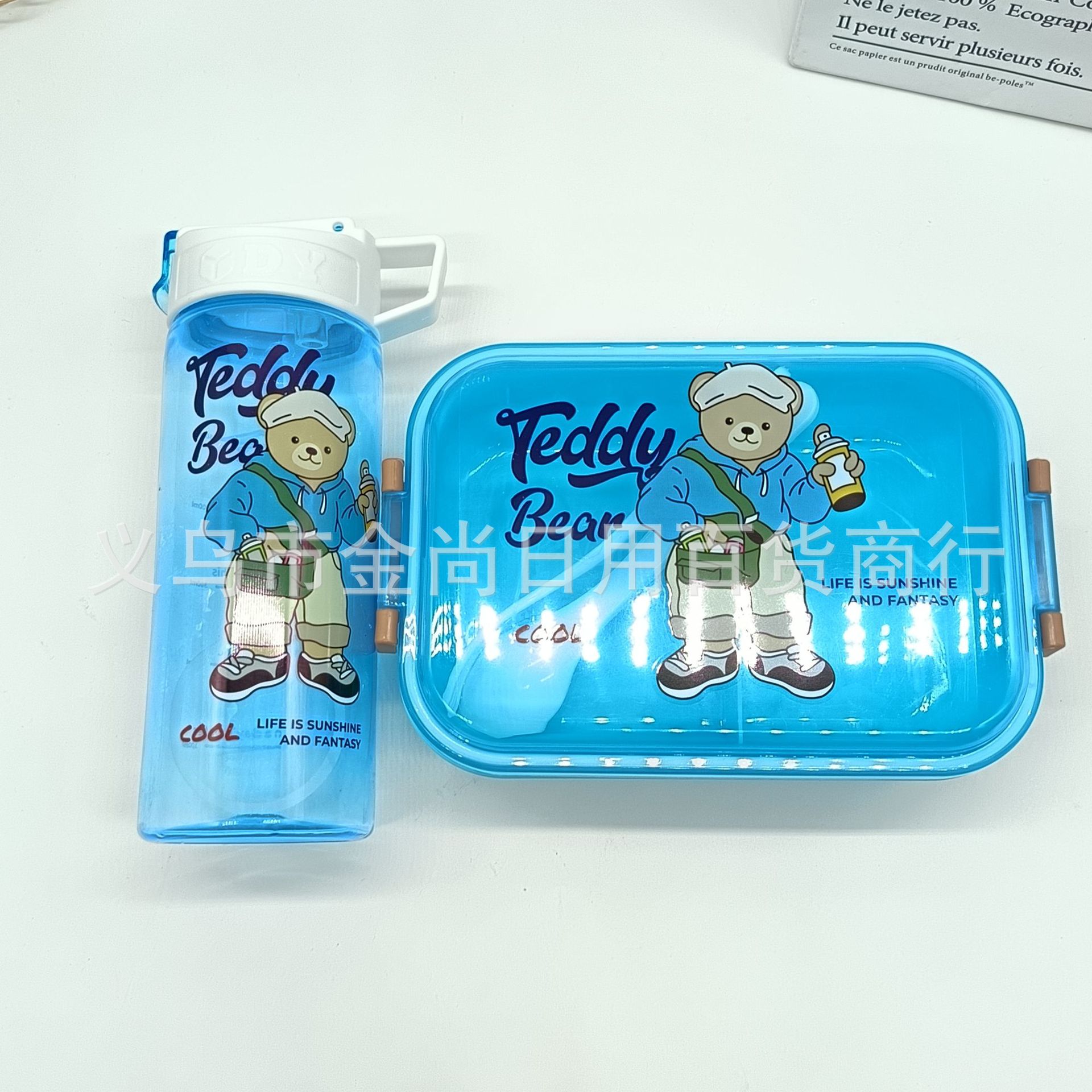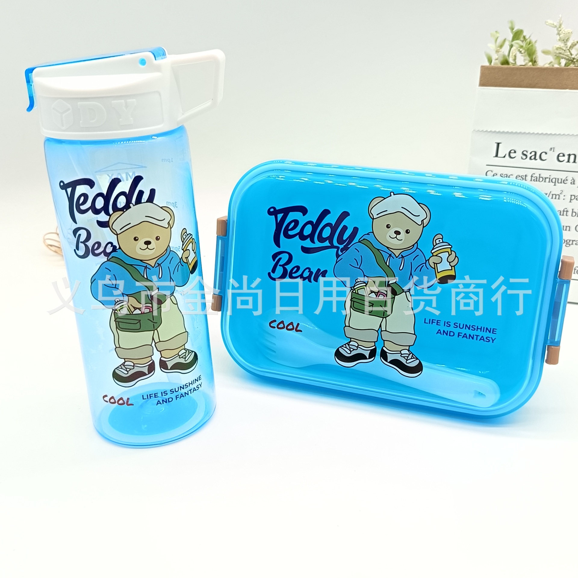 2025卡通小熊分格水杯饭盒套装午餐盒带盖饭盒学生上班便携带餐具