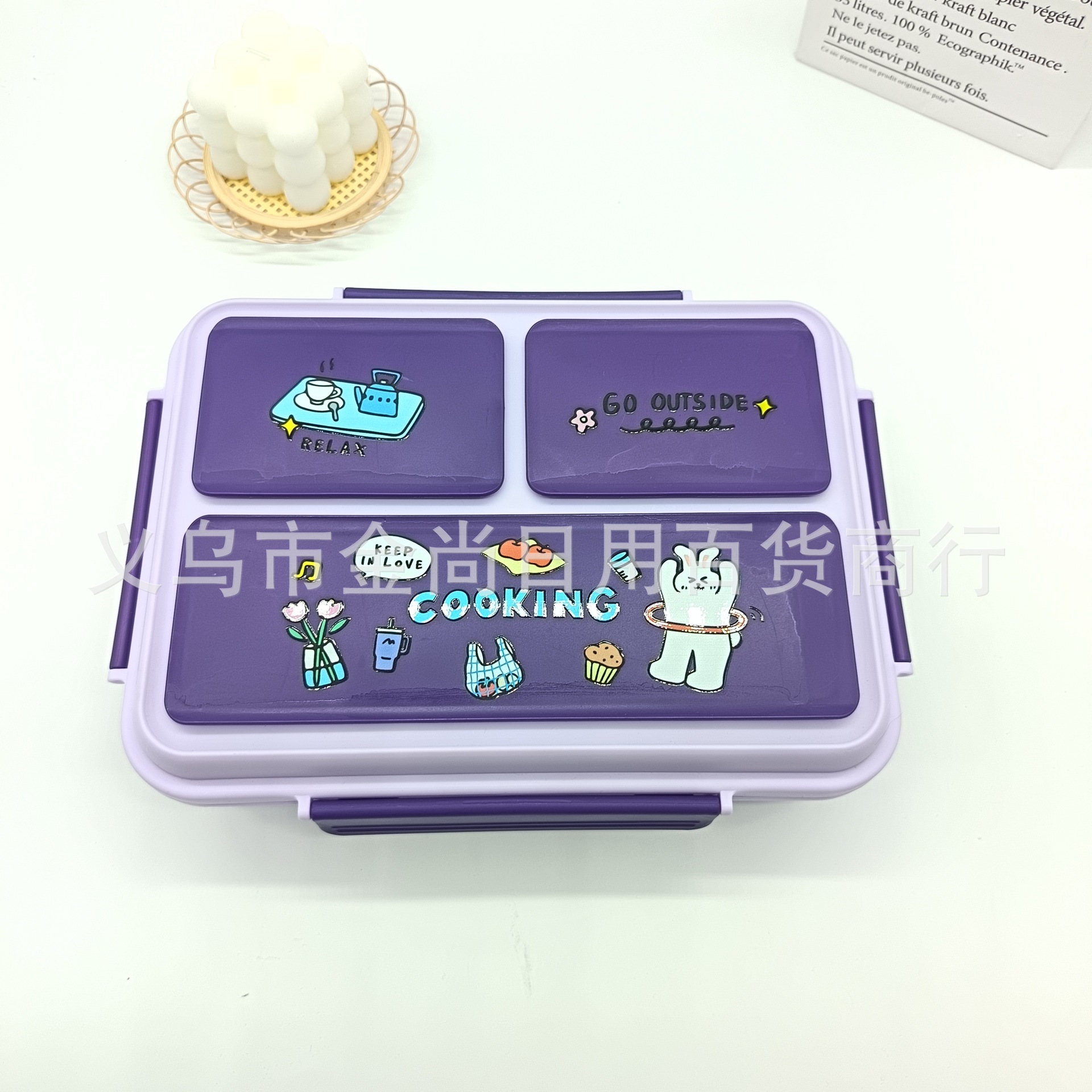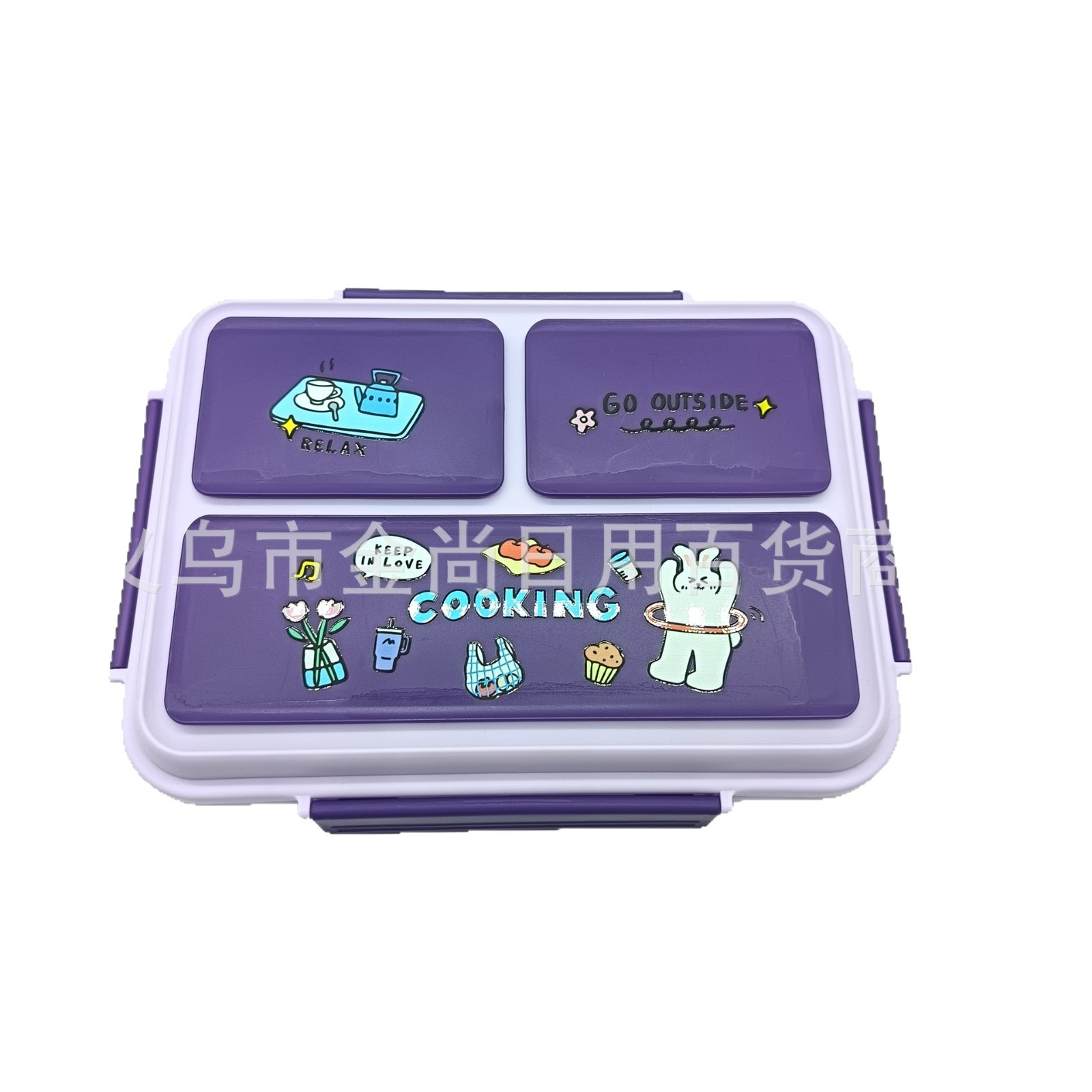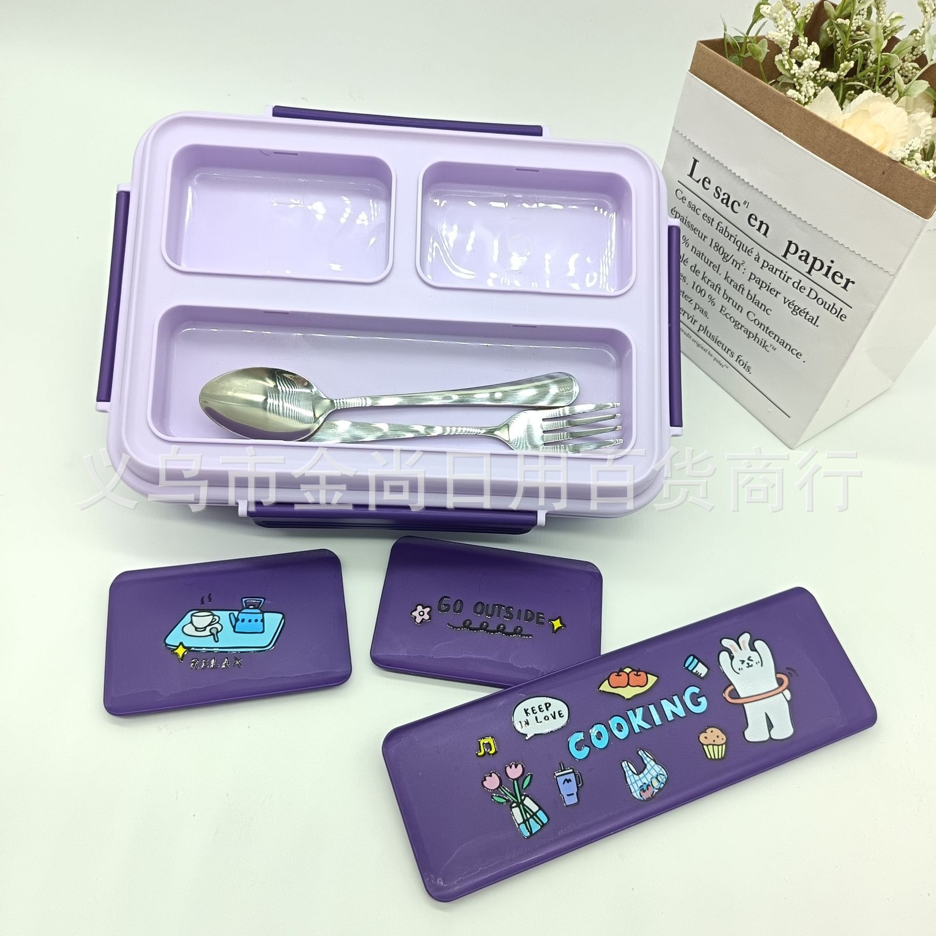 可爱卡通分格饭盒长方形不锈钢午餐盒带盖饭盒学生上班便携带餐具
