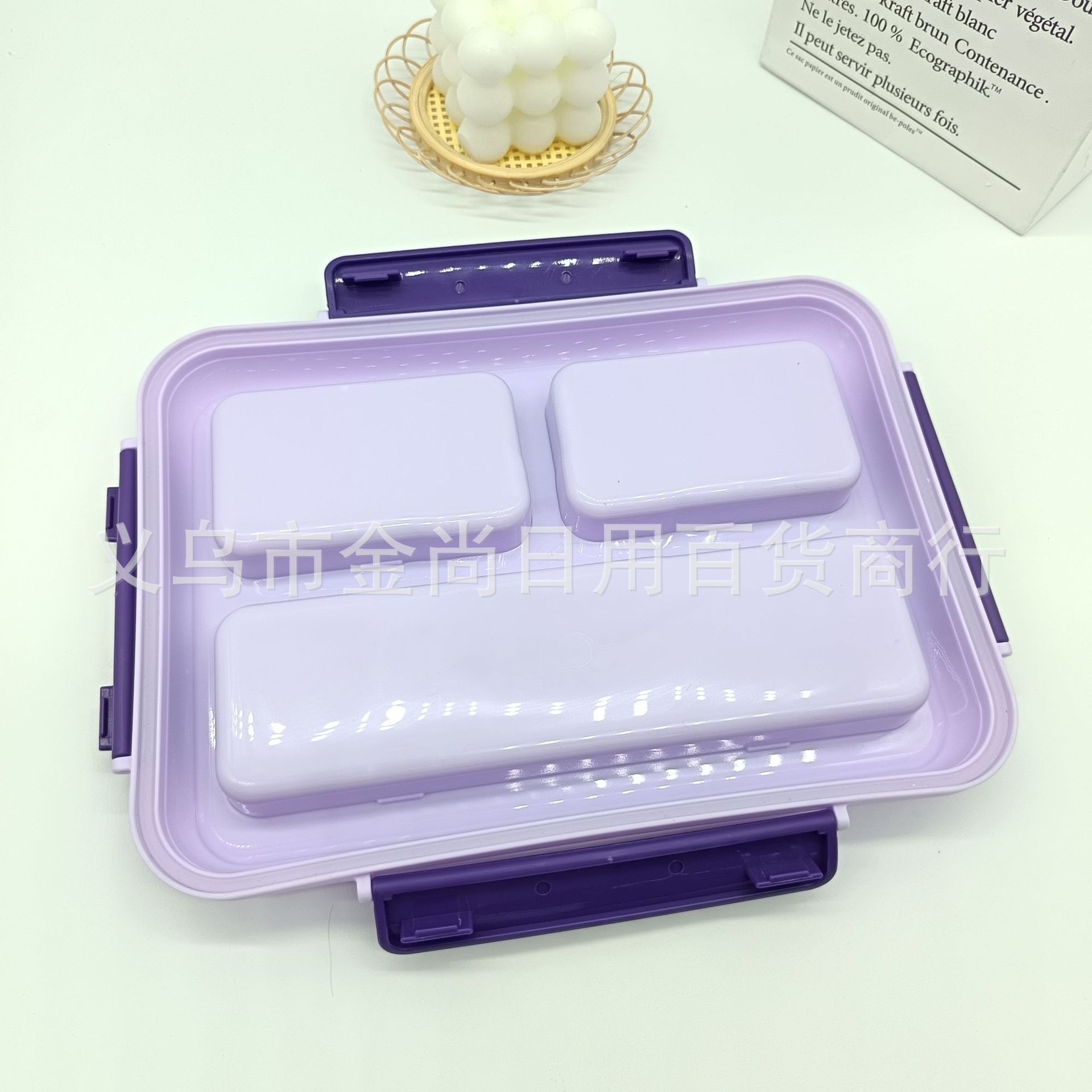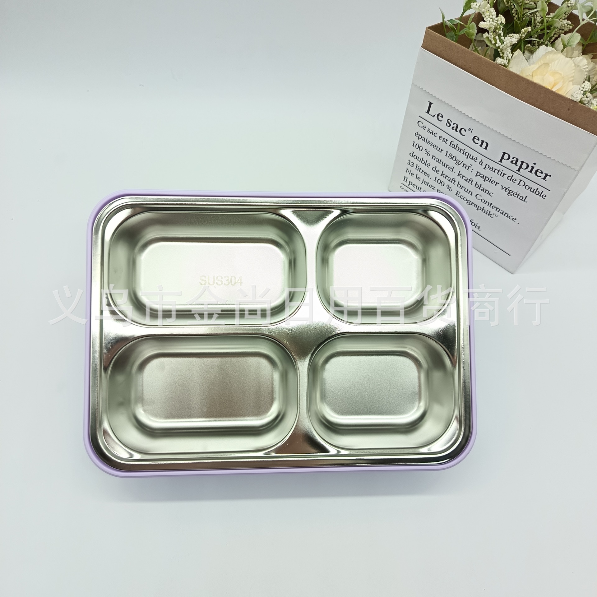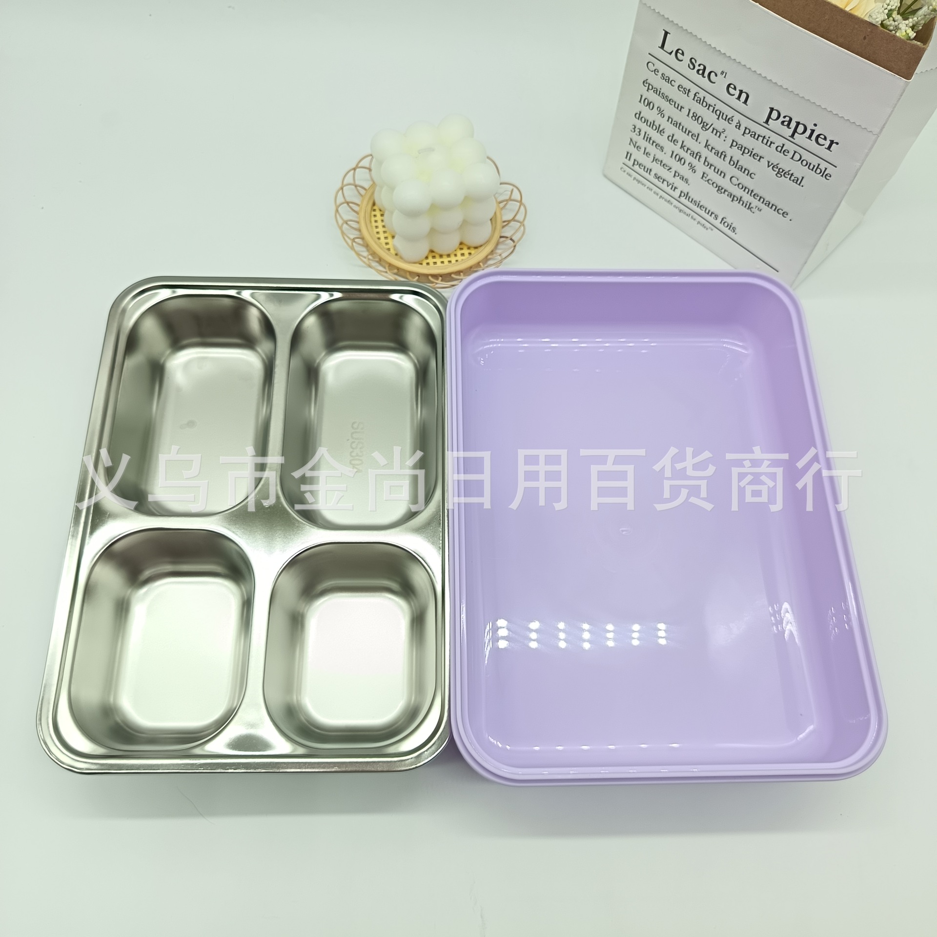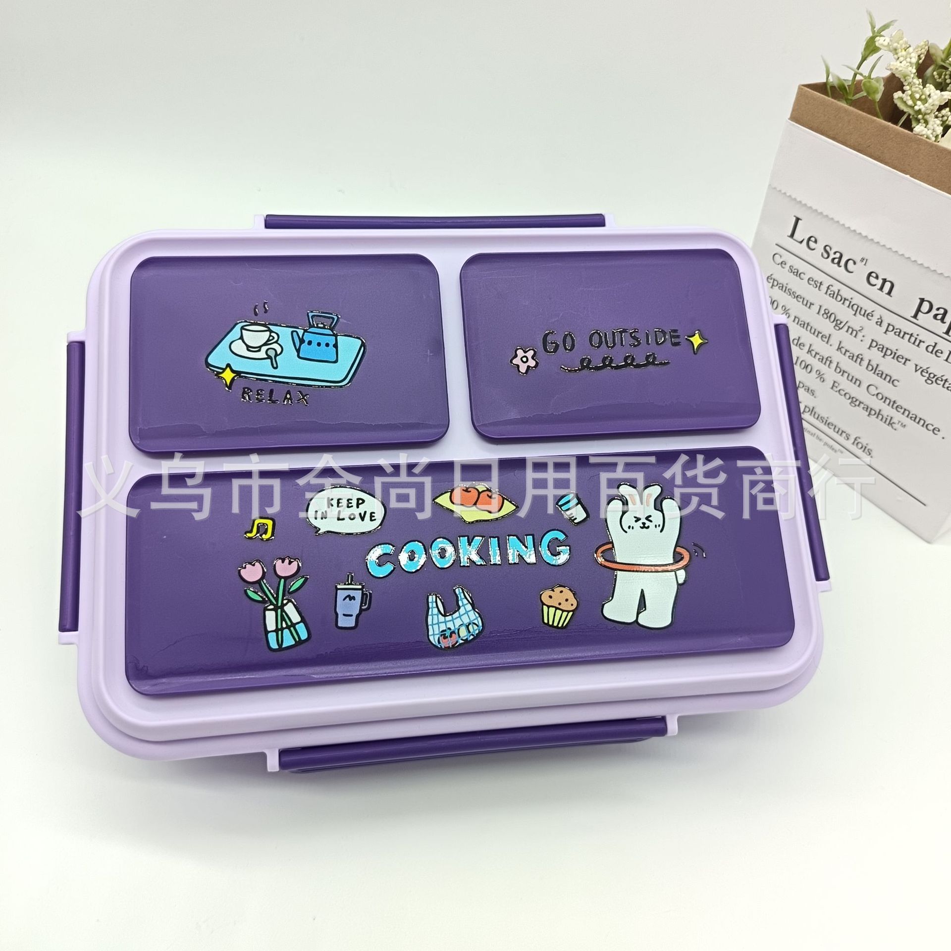 可爱卡通分格饭盒长方形不锈钢午餐盒带盖饭盒学生上班便携带餐具