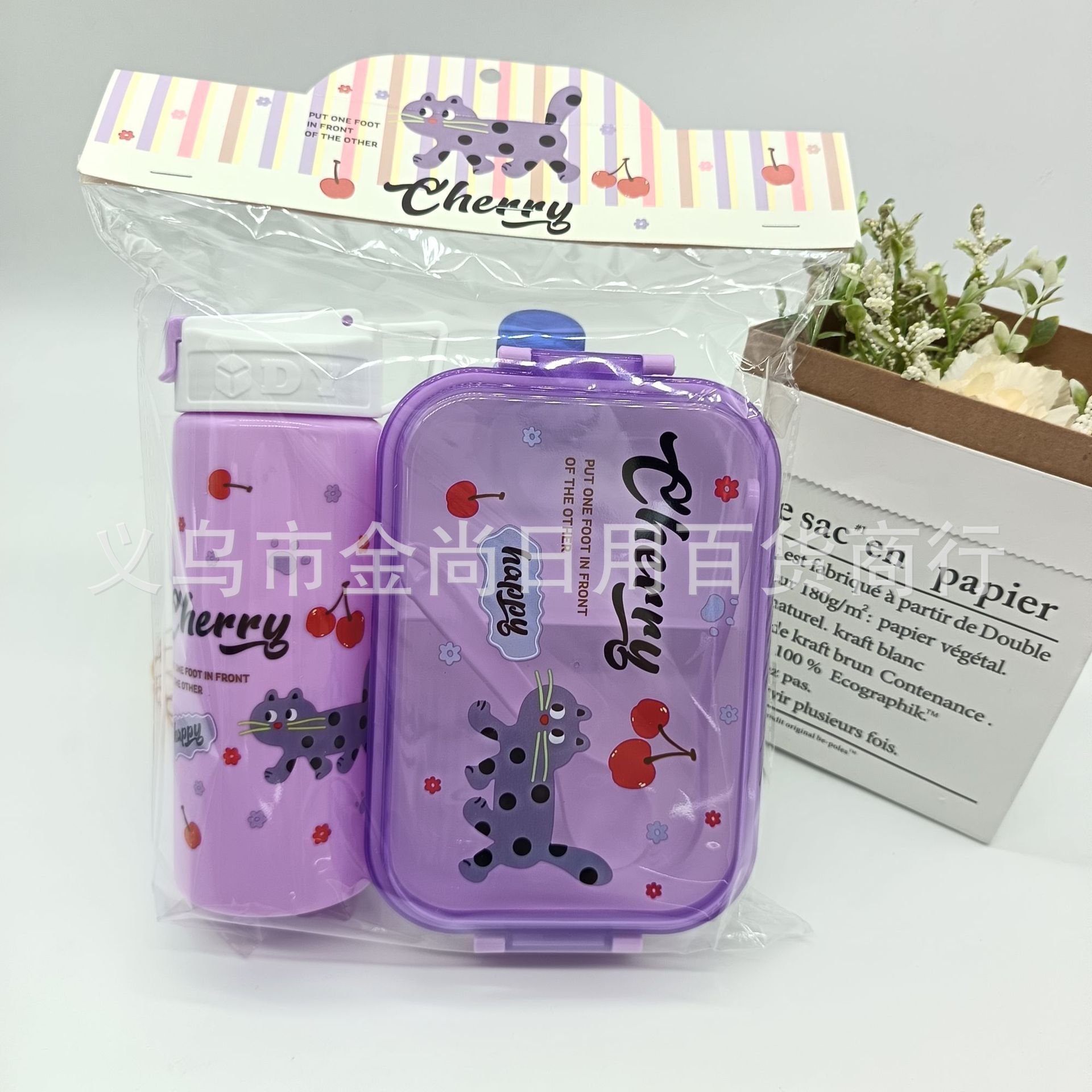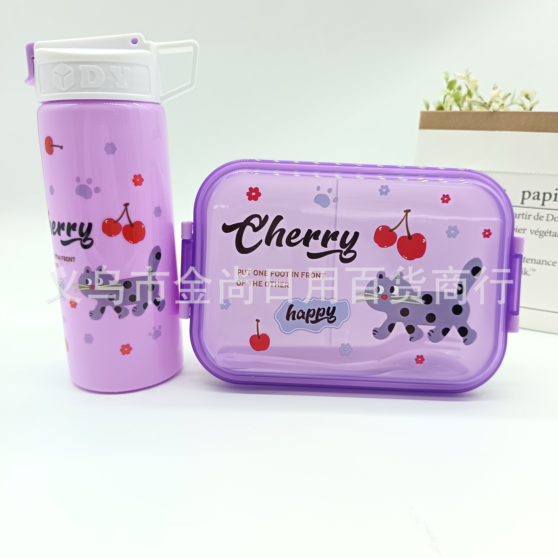 2025卡通可爱分格水杯饭盒套装午餐盒带盖饭盒学生上班便携带餐具