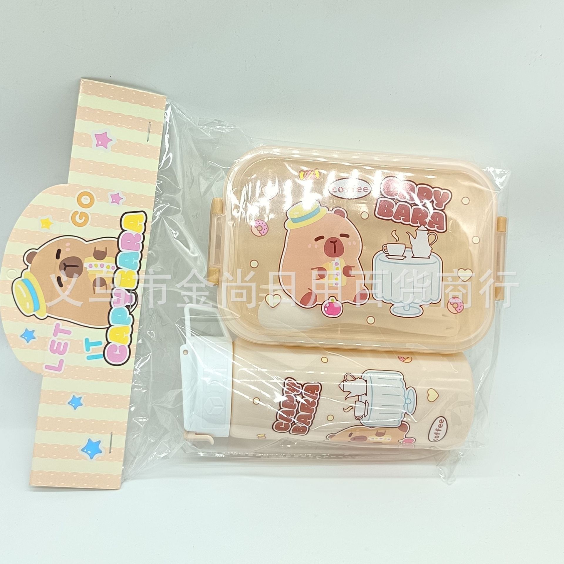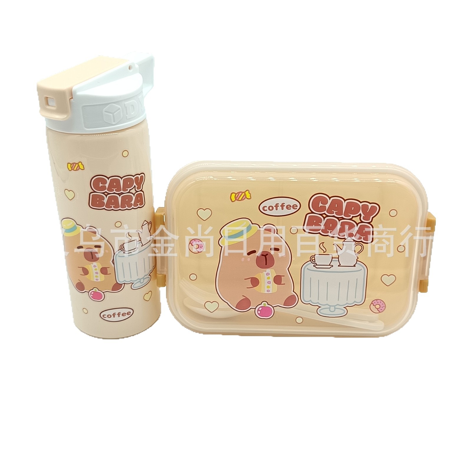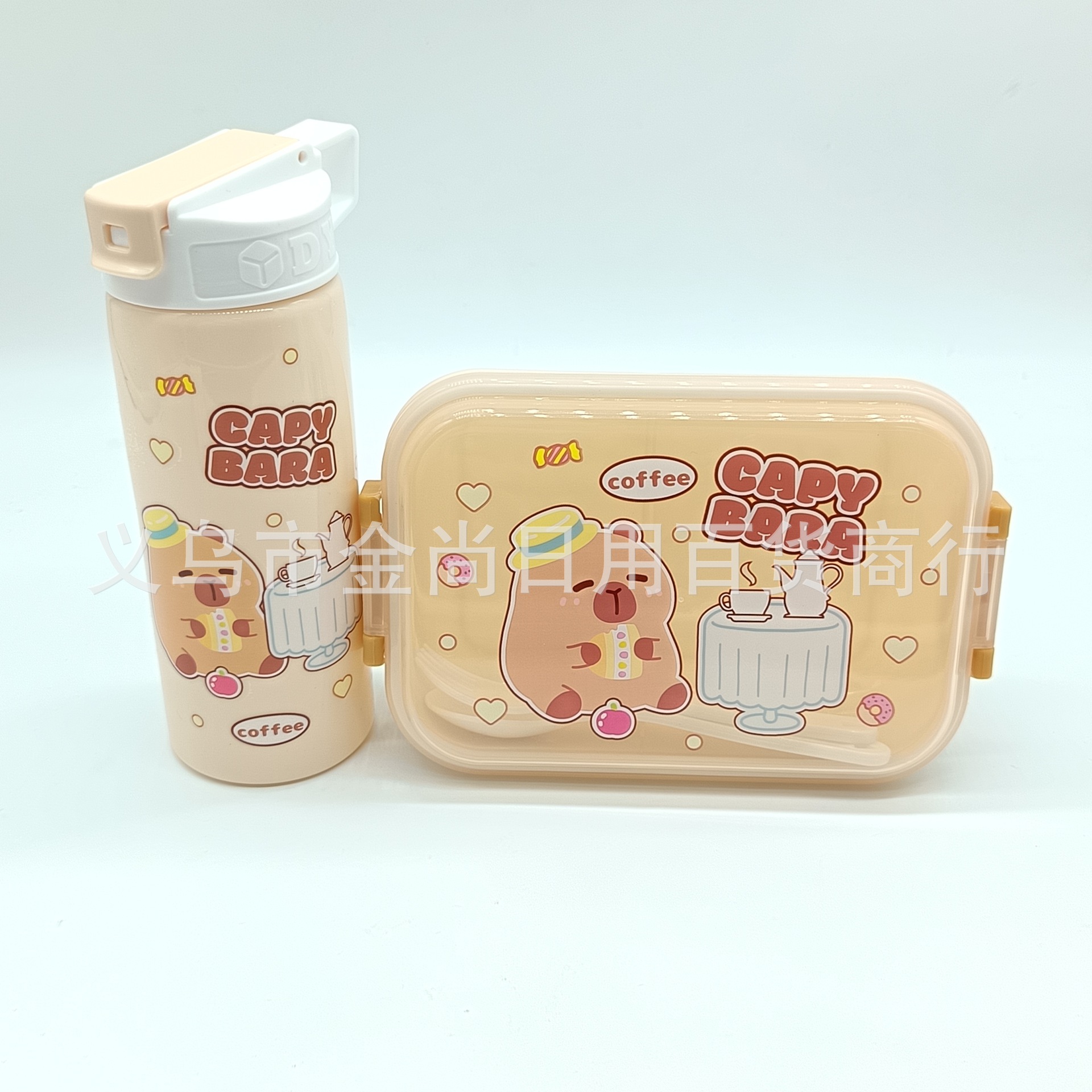 2025卡皮巴拉新款儿童饭盒水杯套装可爱学生卡通分格便当餐盒批发