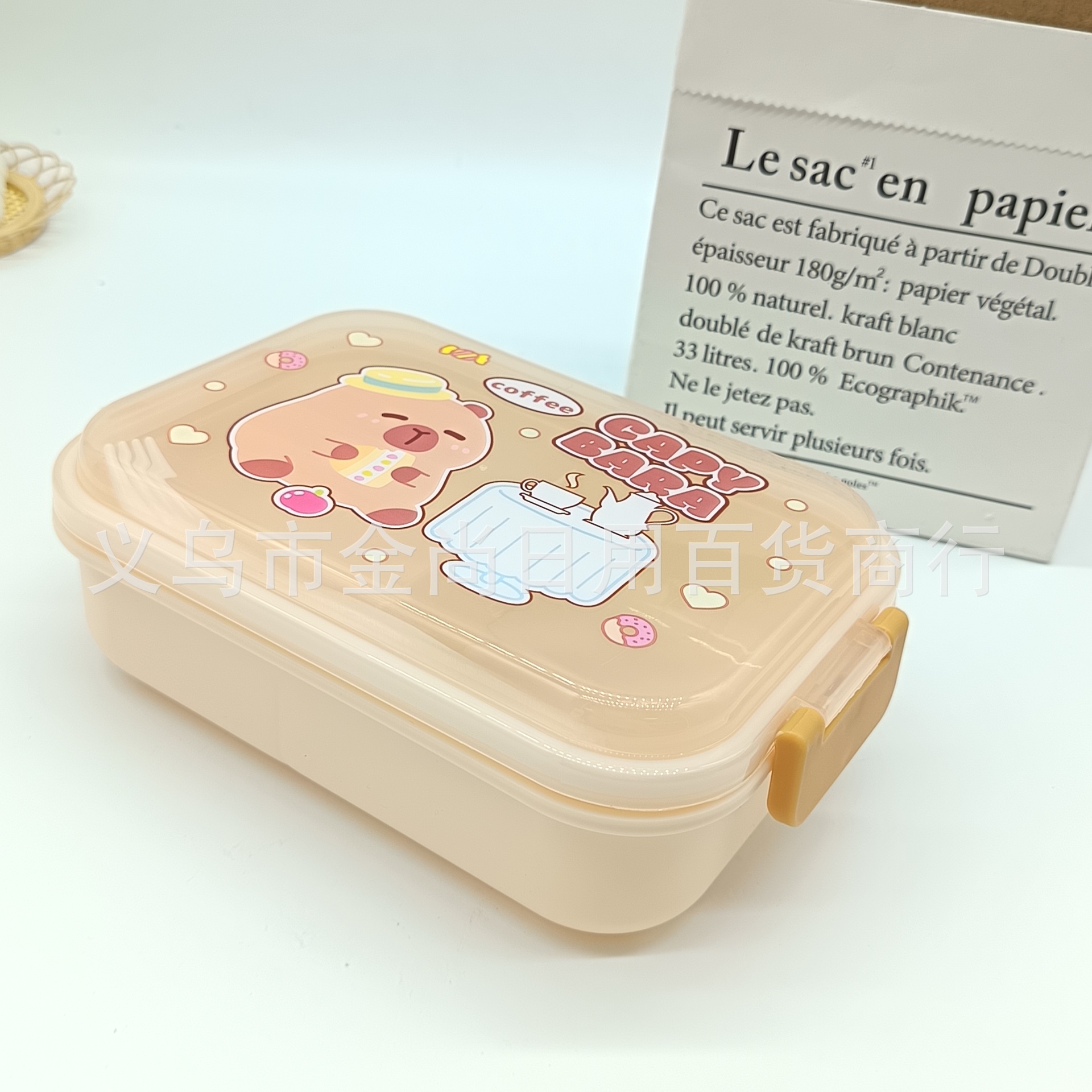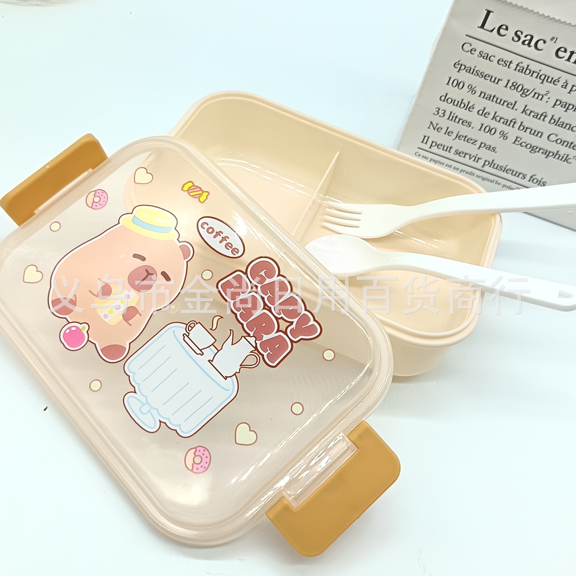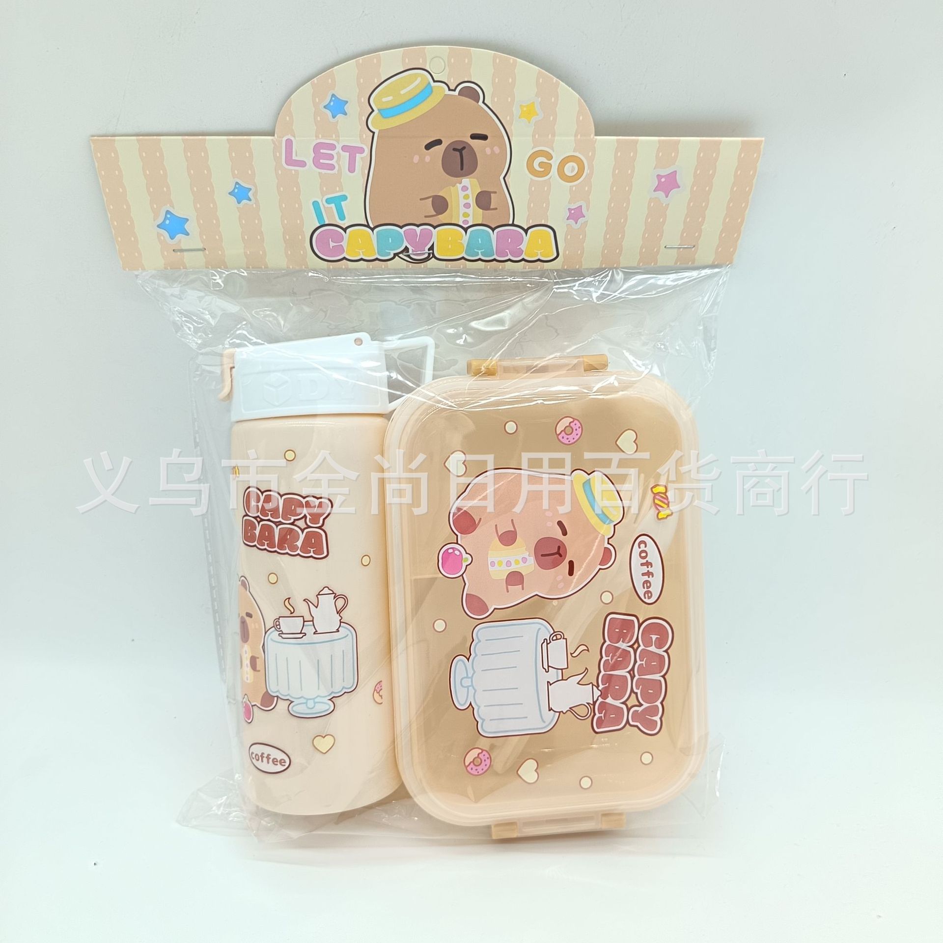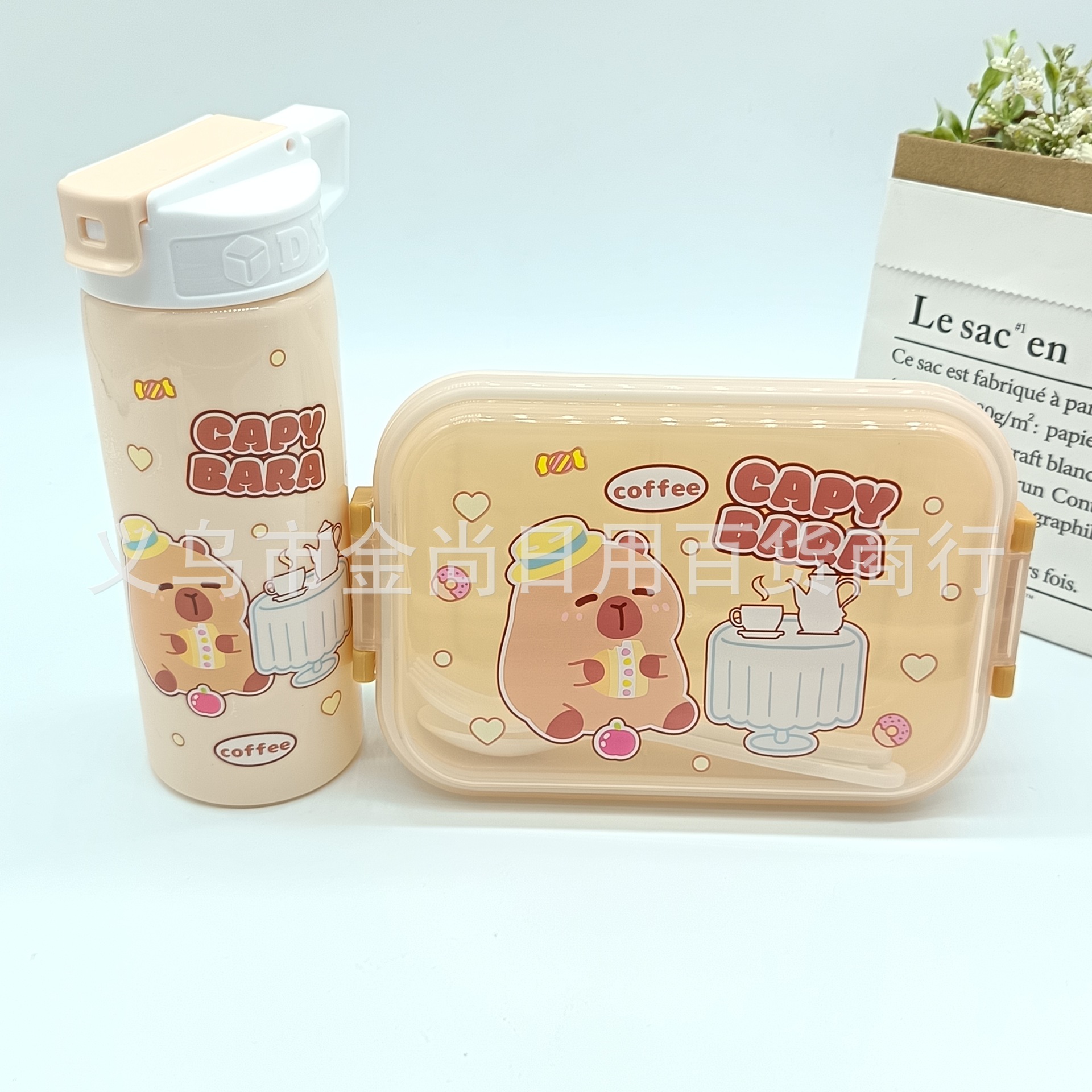 2025卡皮巴拉新款儿童饭盒水杯套装可爱学生卡通分格便当餐盒批发