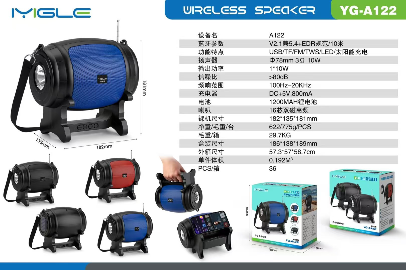 YG-A122 跨境非洲热卖无线蓝牙音响带太阳能板充电支架收音机音箱
