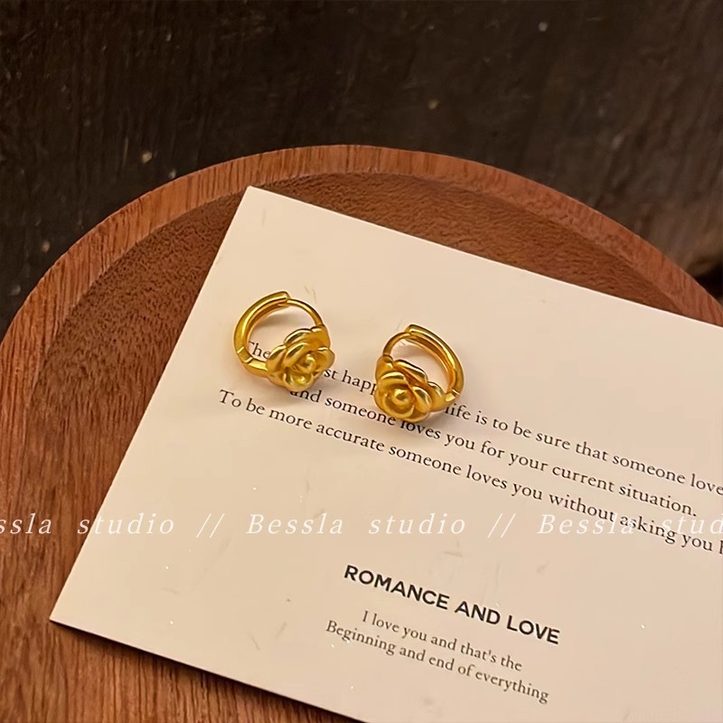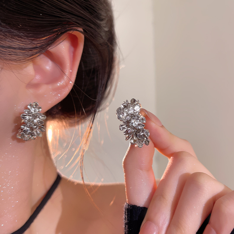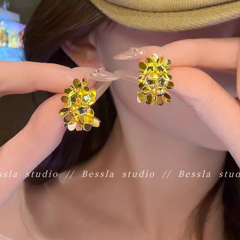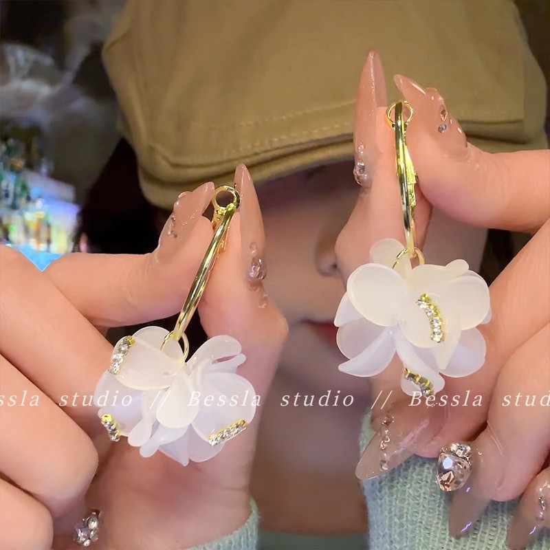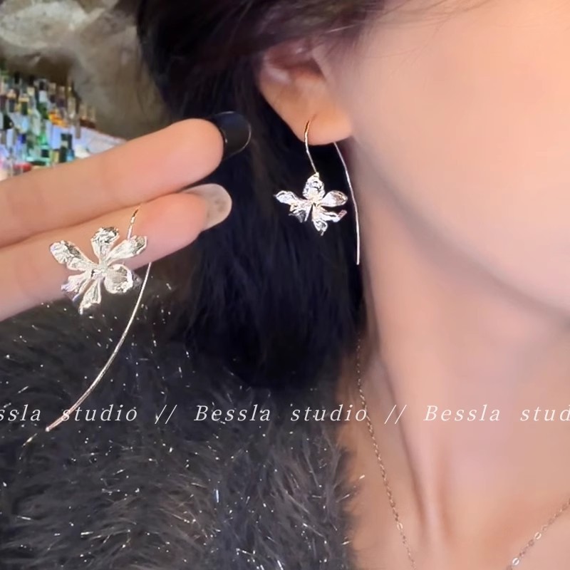 S925银针轻奢小众高级感个性冷淡风素圈耳环时尚百搭气质花朵耳钉