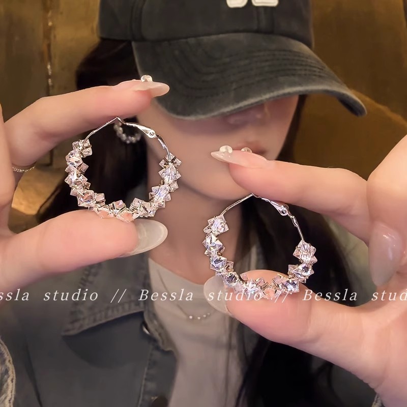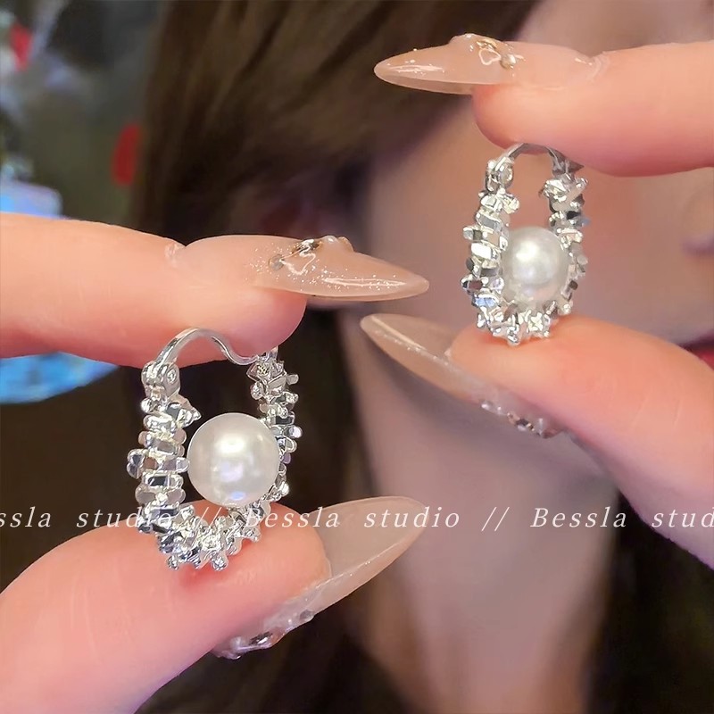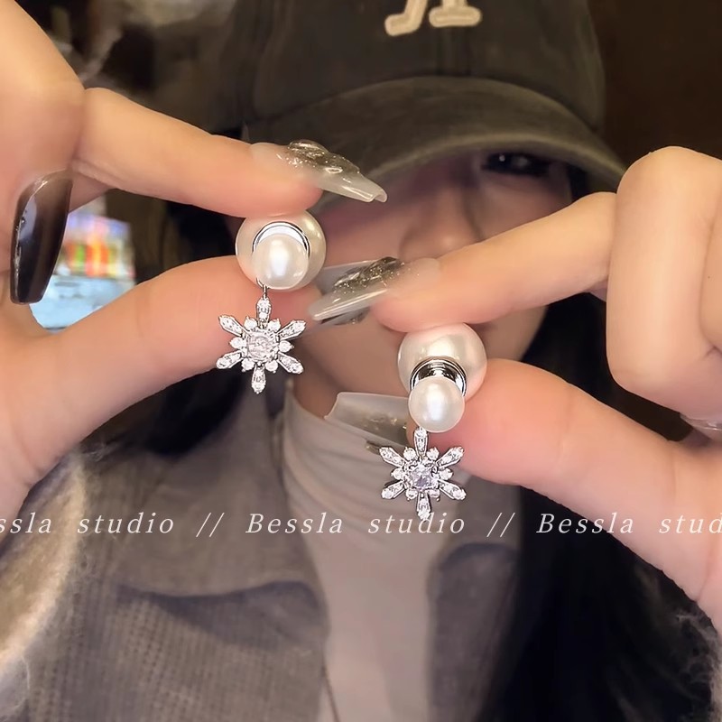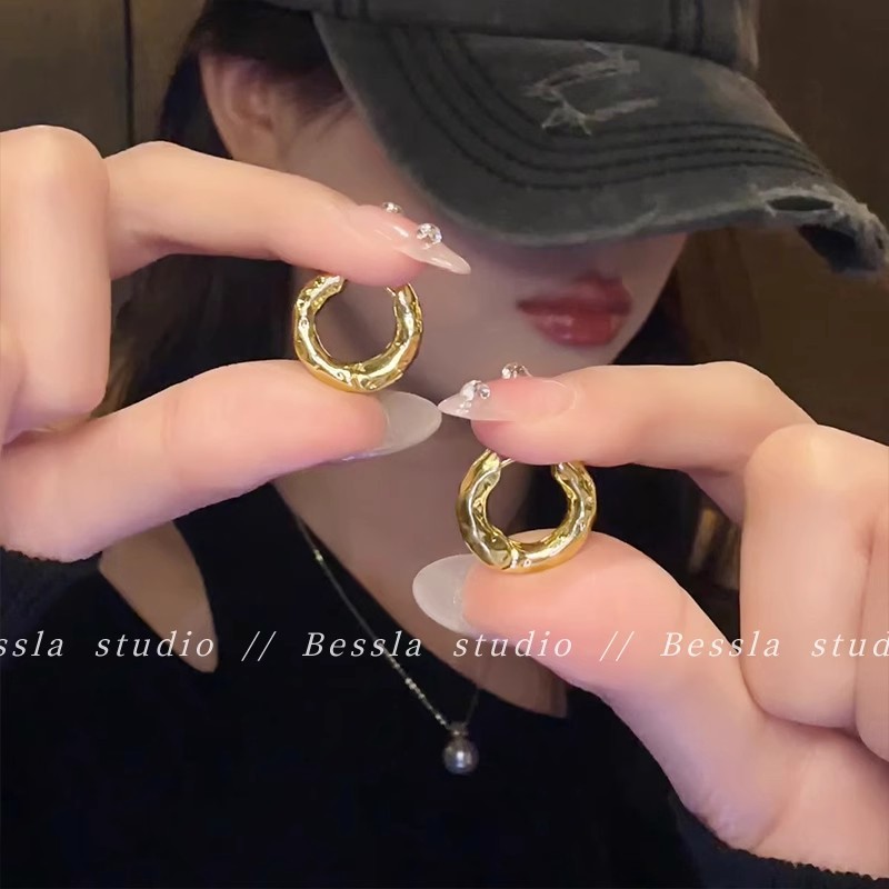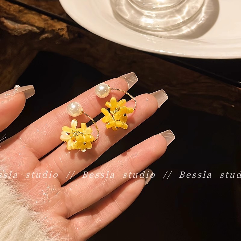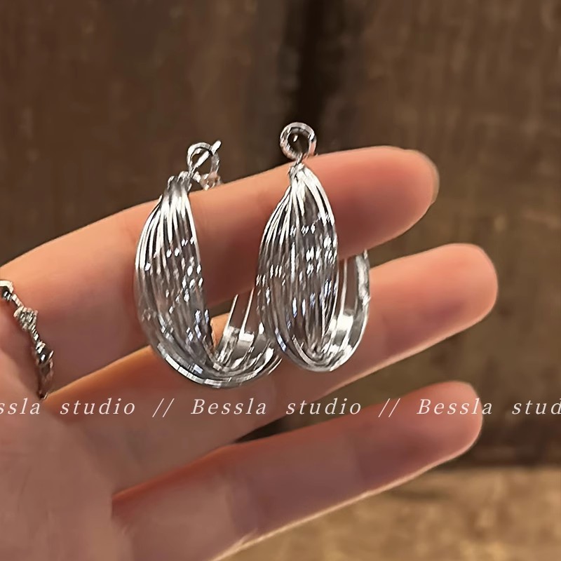 S925银针轻奢小众高级感个性冷淡风素圈耳环时尚百搭气质花朵耳钉