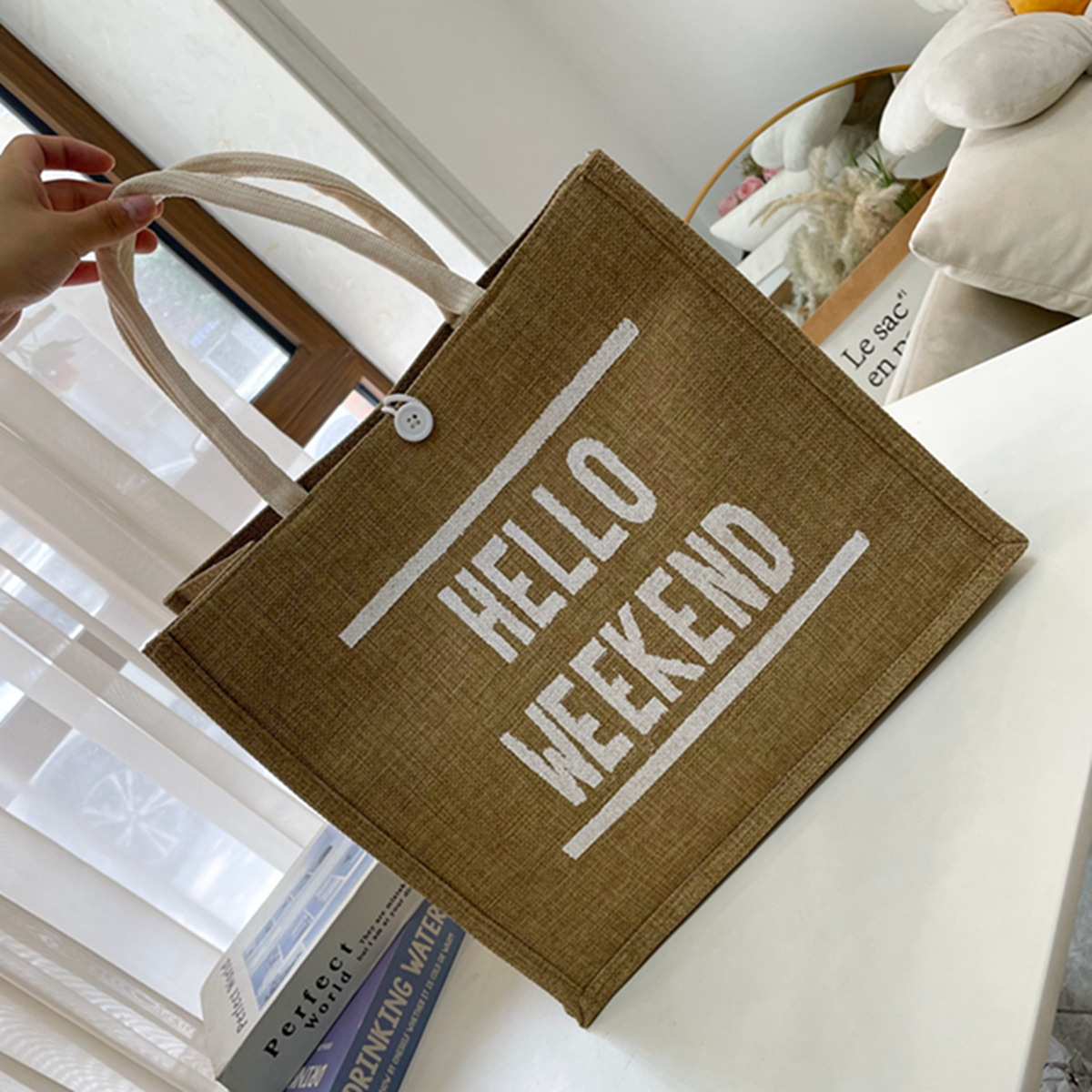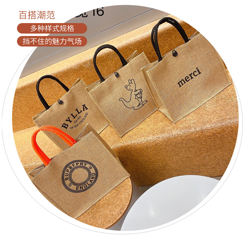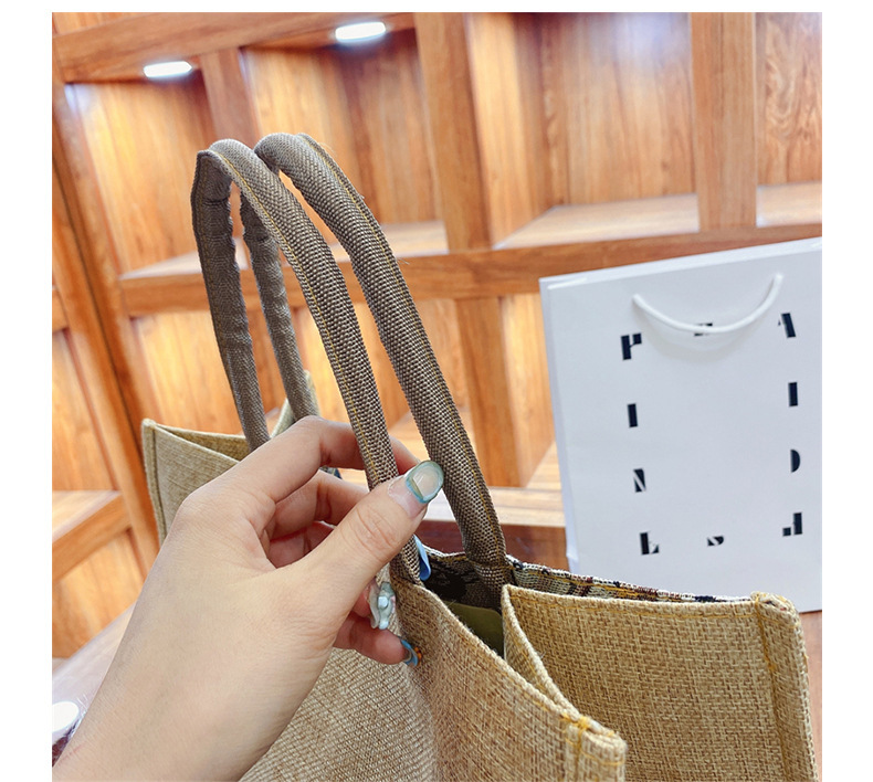 现货大容量麻布女士包包 时尚亚麻手提包学生上课简约单肩托特包