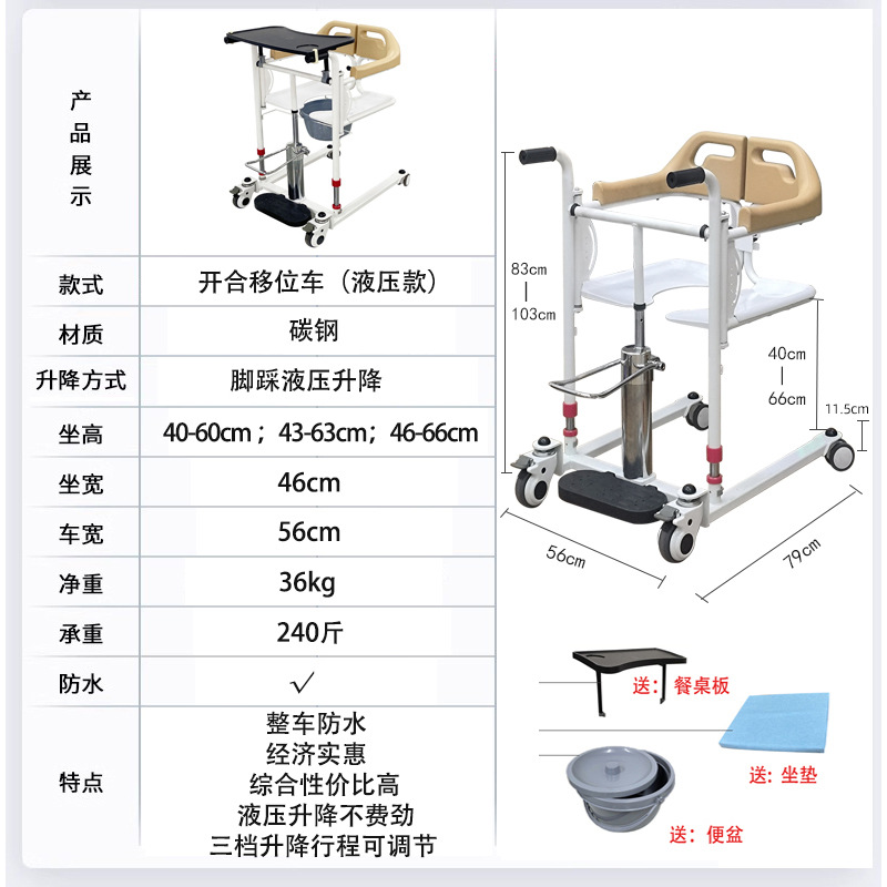 专供出口残疾病人移位机手摇移位老人洗澡坐便多功能升降护理神器