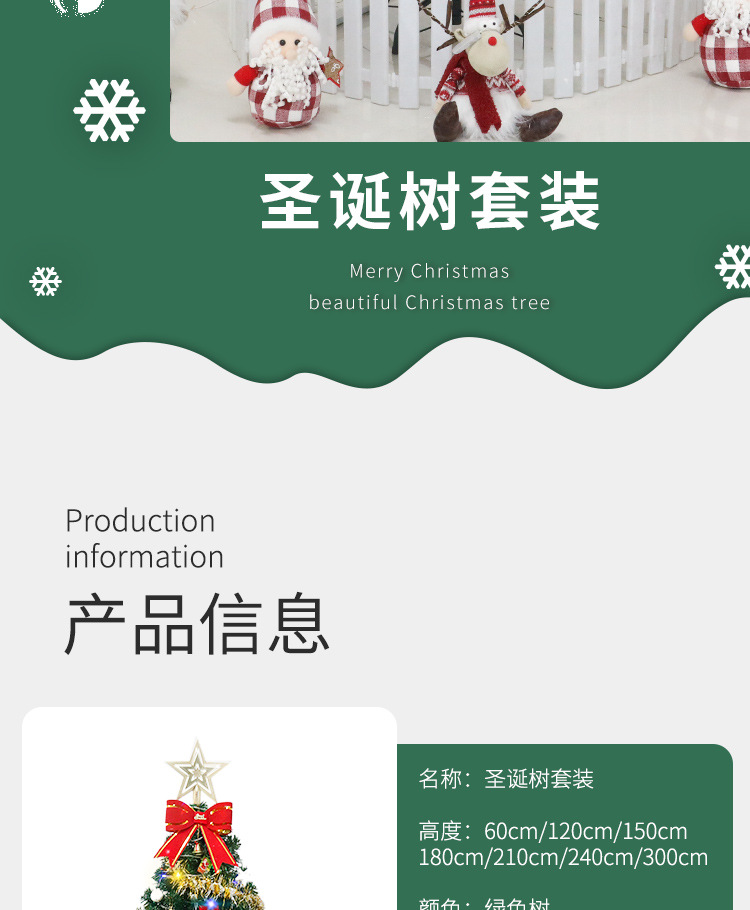 新款圣诞树套装1.5/1.8/2.1米仿真商场橱窗家用摆件发光圣诞装饰