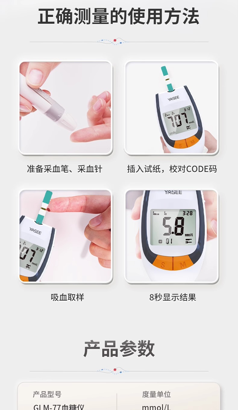 专供出口血糖仪家用GLM-77雅思高精准测量仪器GLS-77血糖试纸条