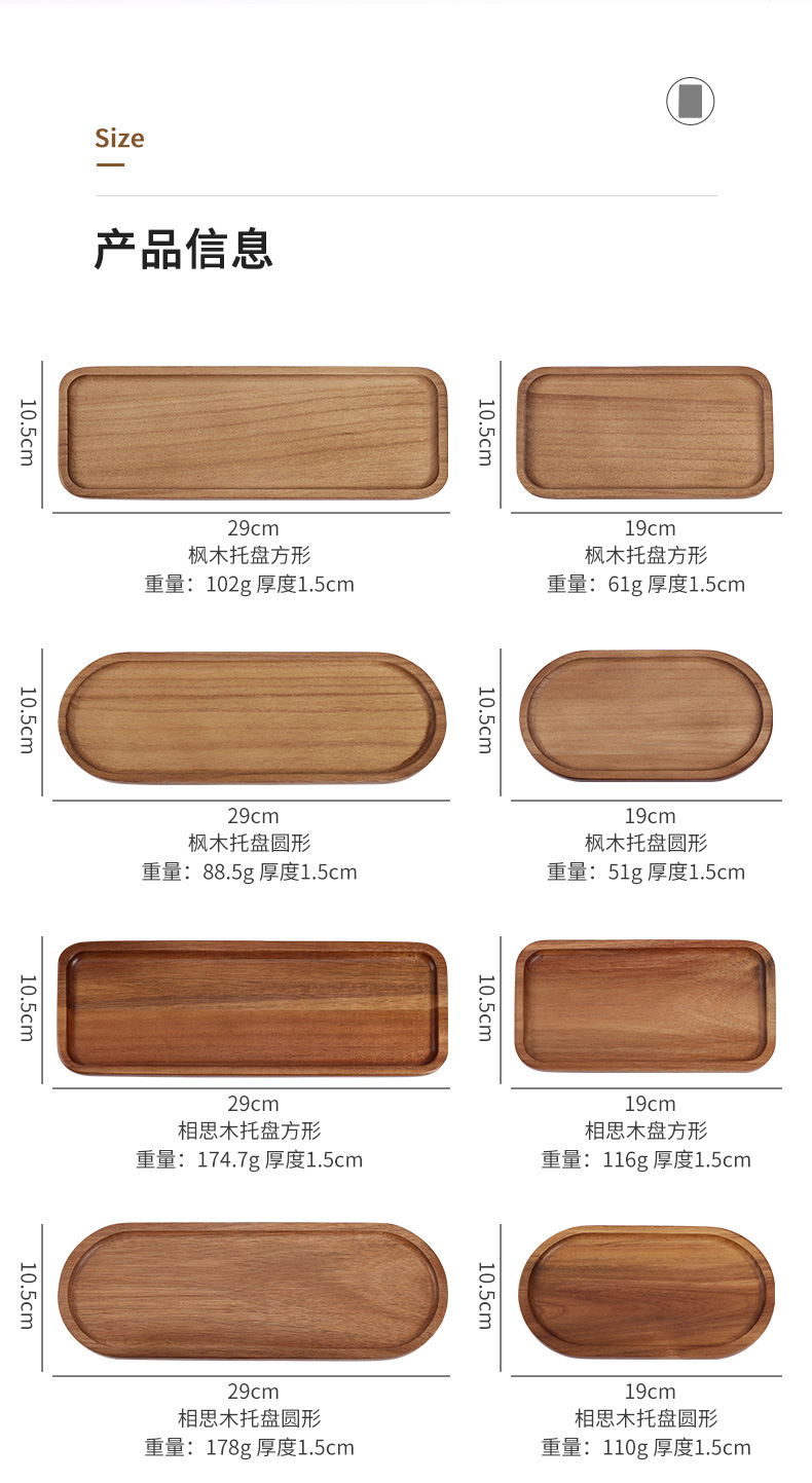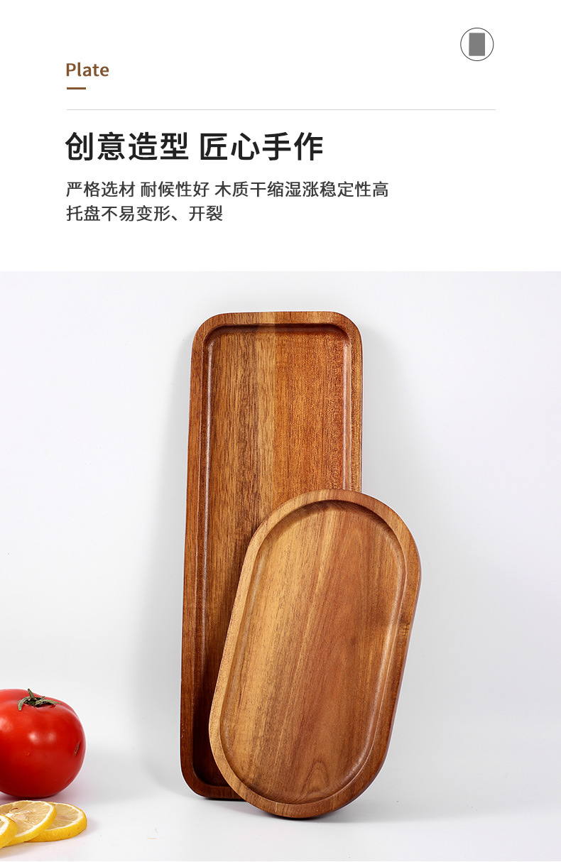 日式相思木质托盘长方形餐盘隔热实木纹盘子椭圆蛋糕托盘茶杯盘