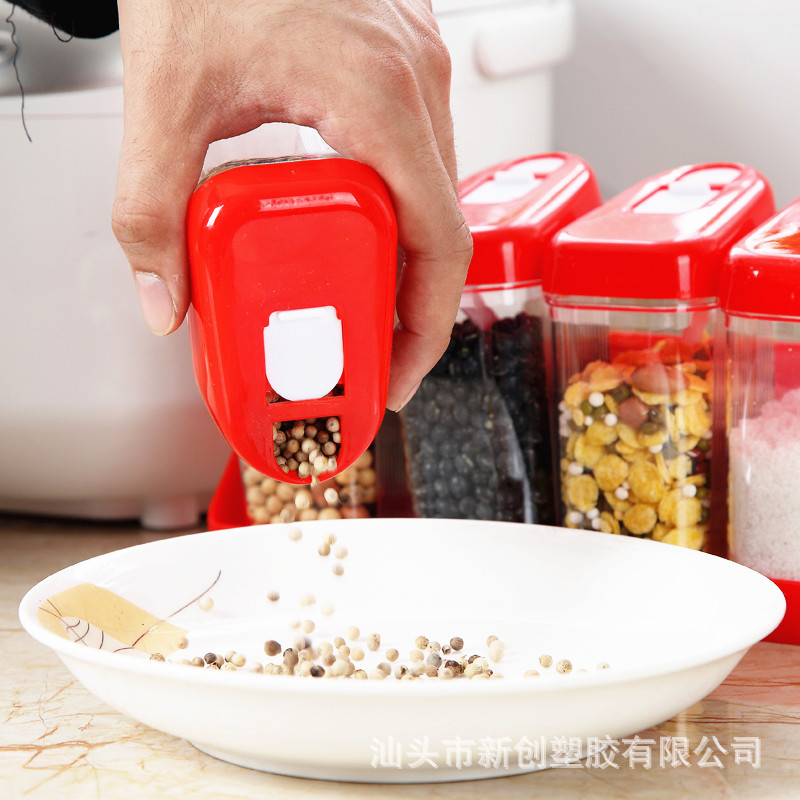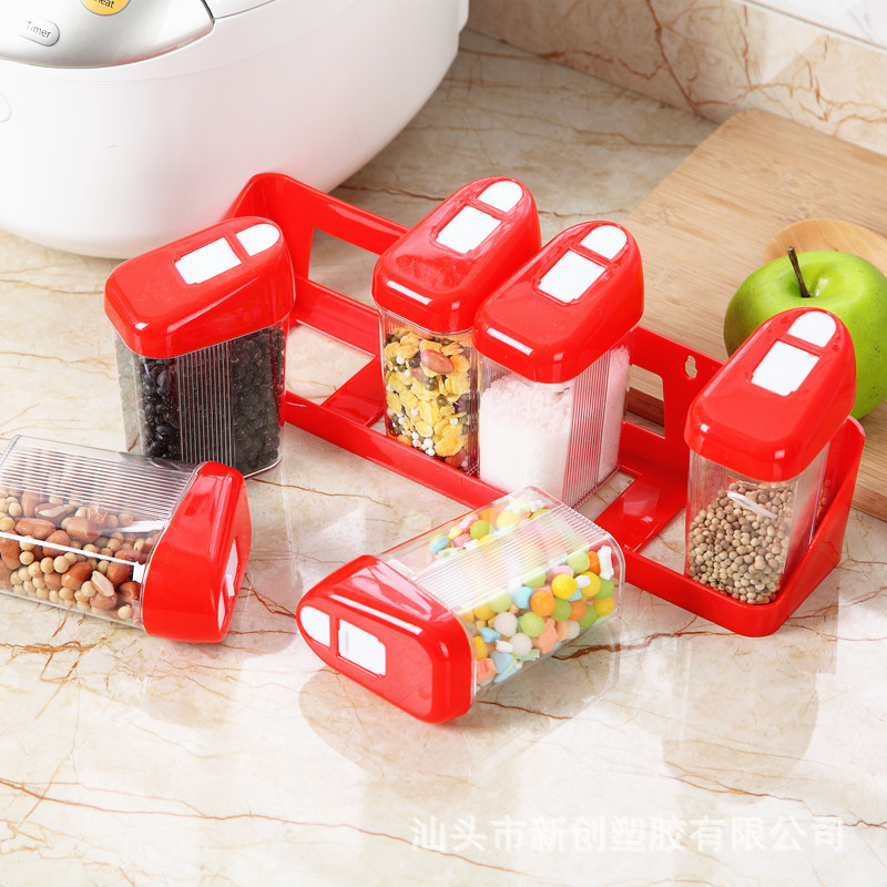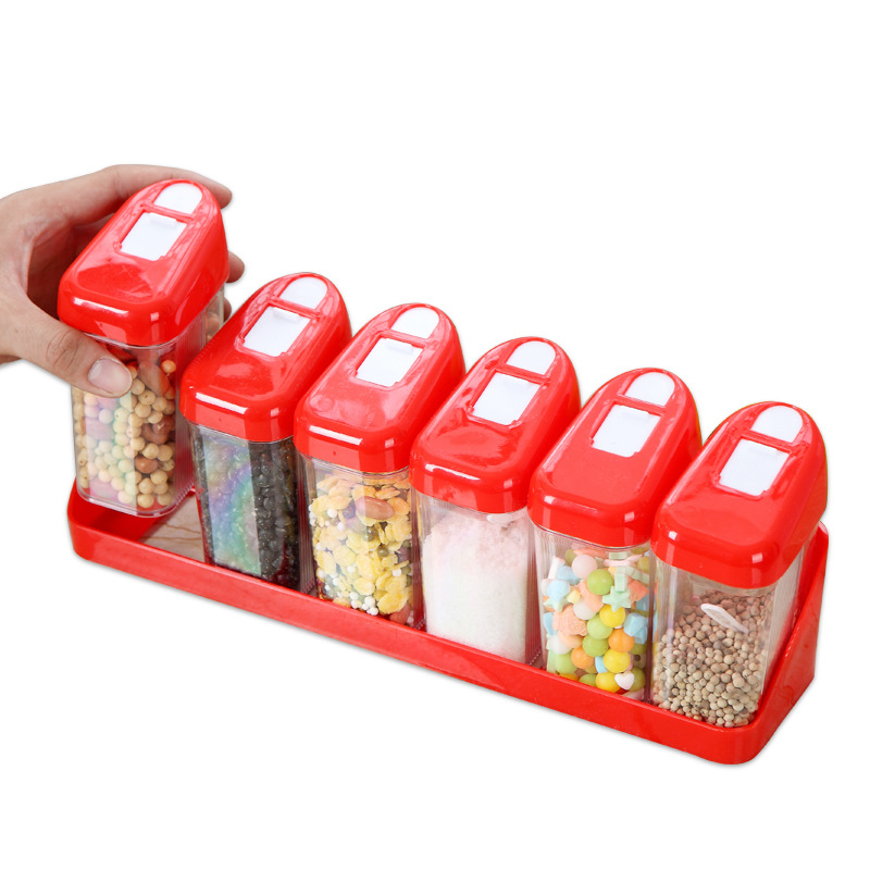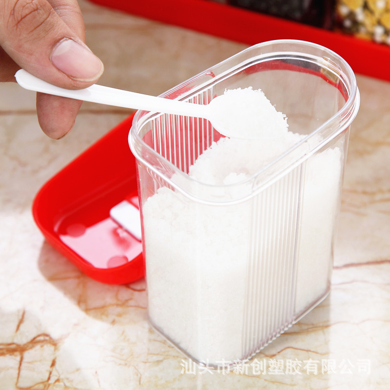 厨房用品透明塑料调味盒 调料瓶六件套装 盐味精调味罐调料收纳盒