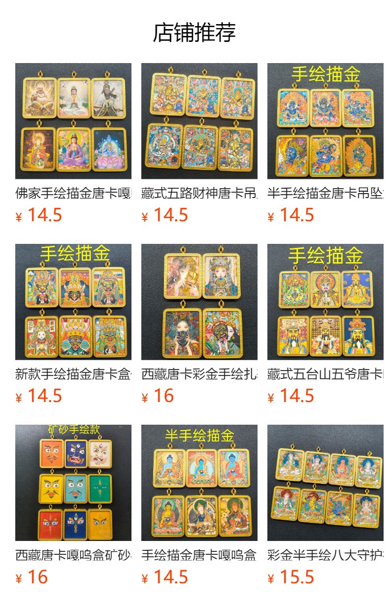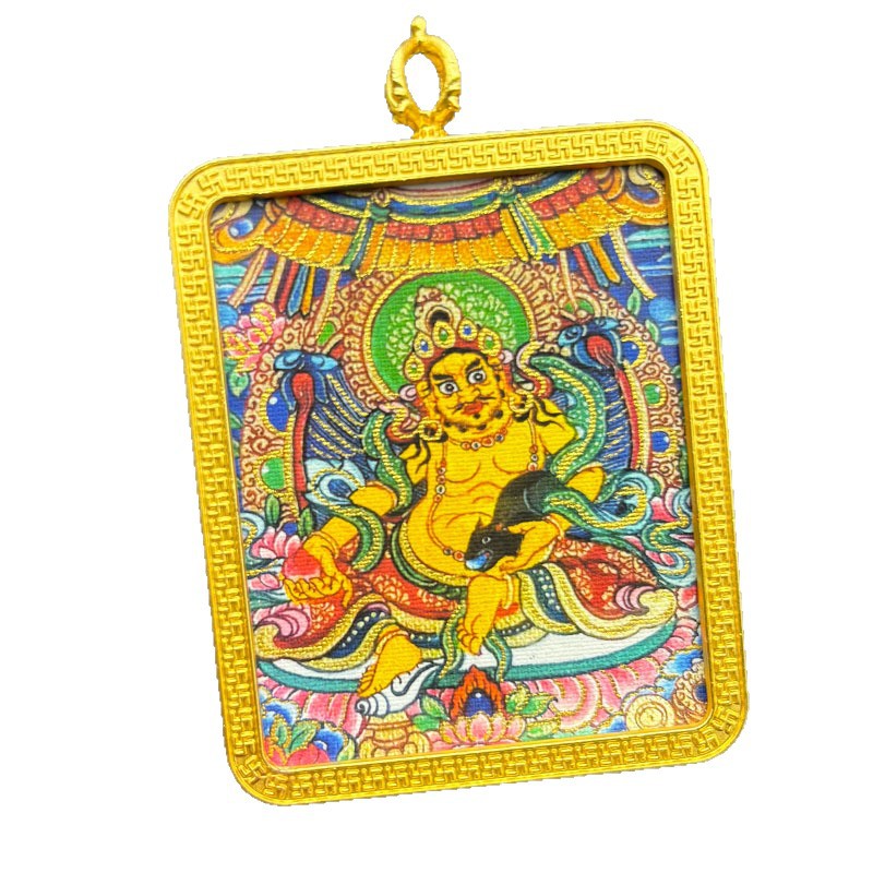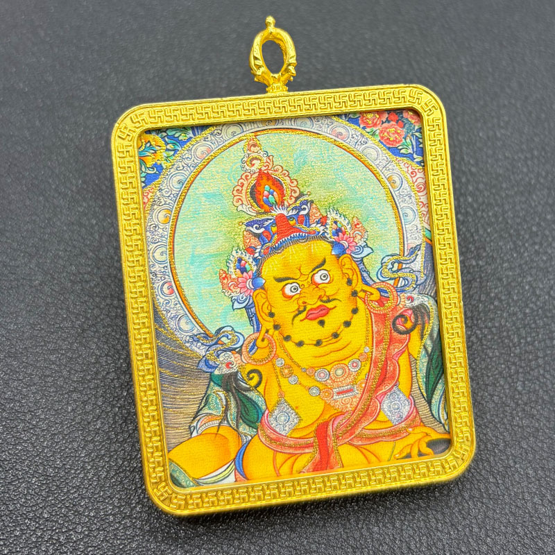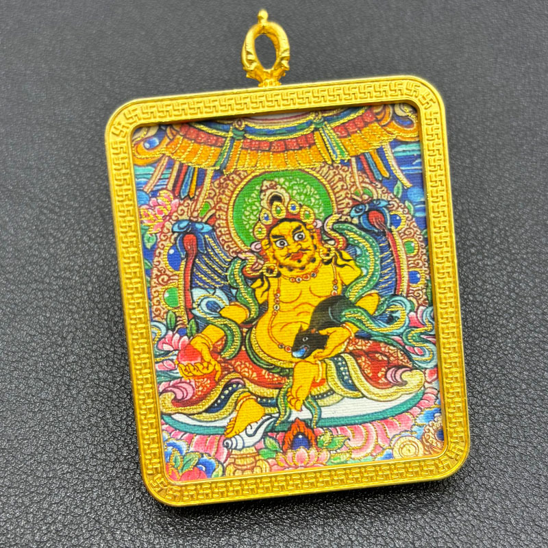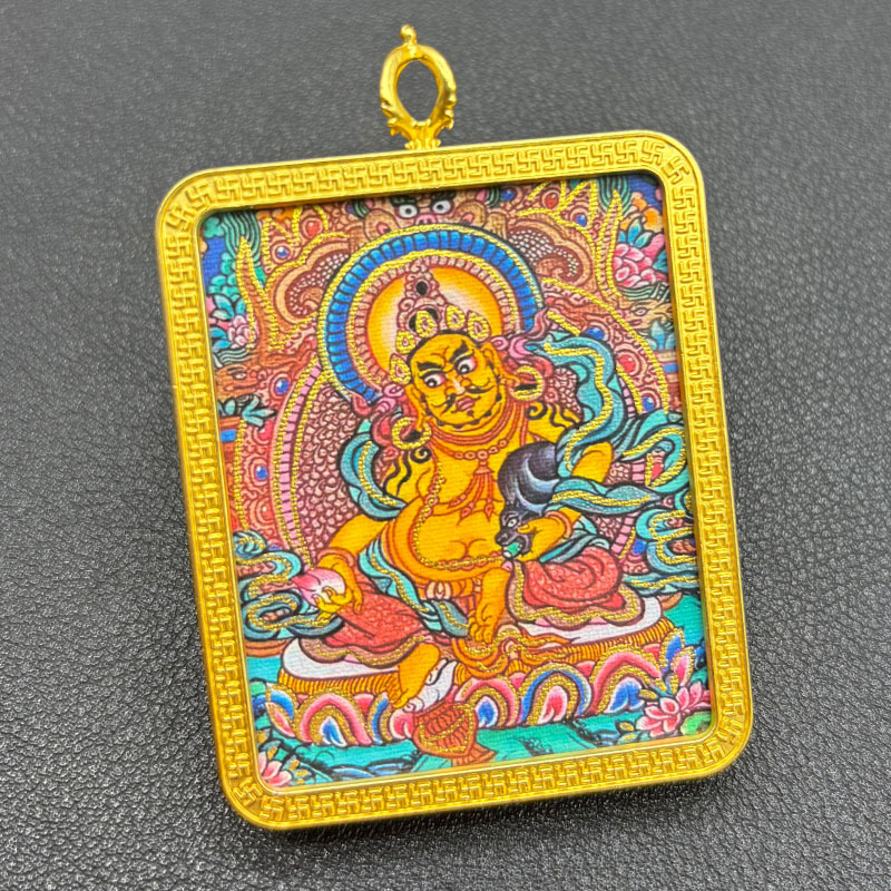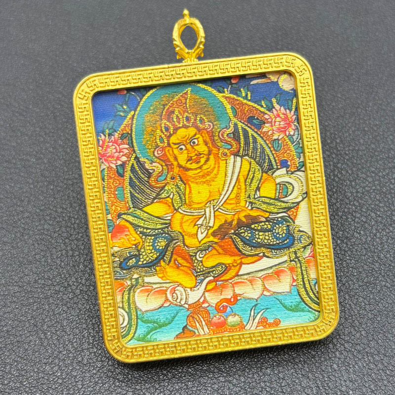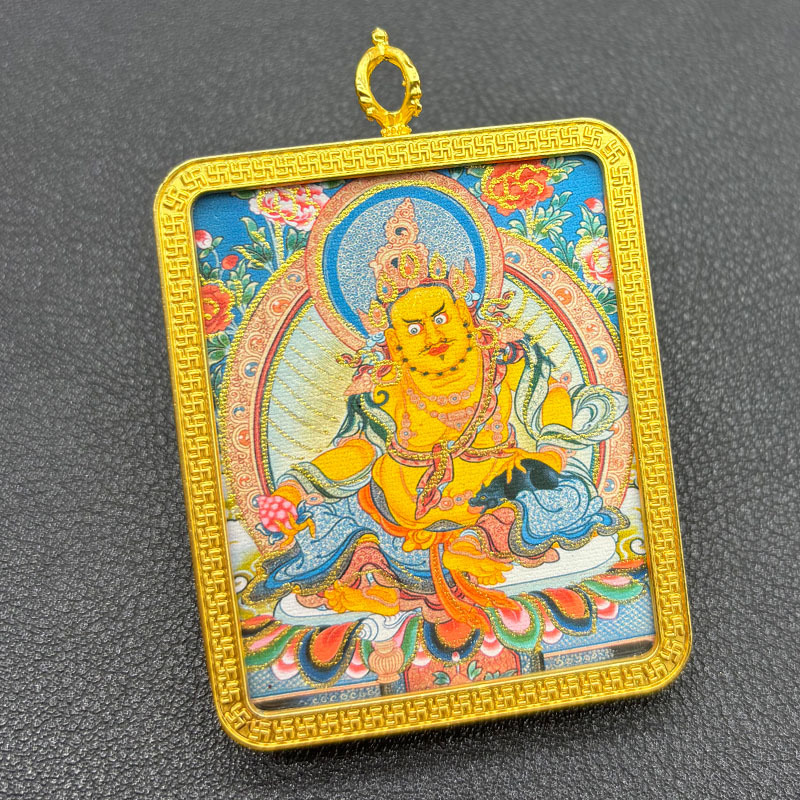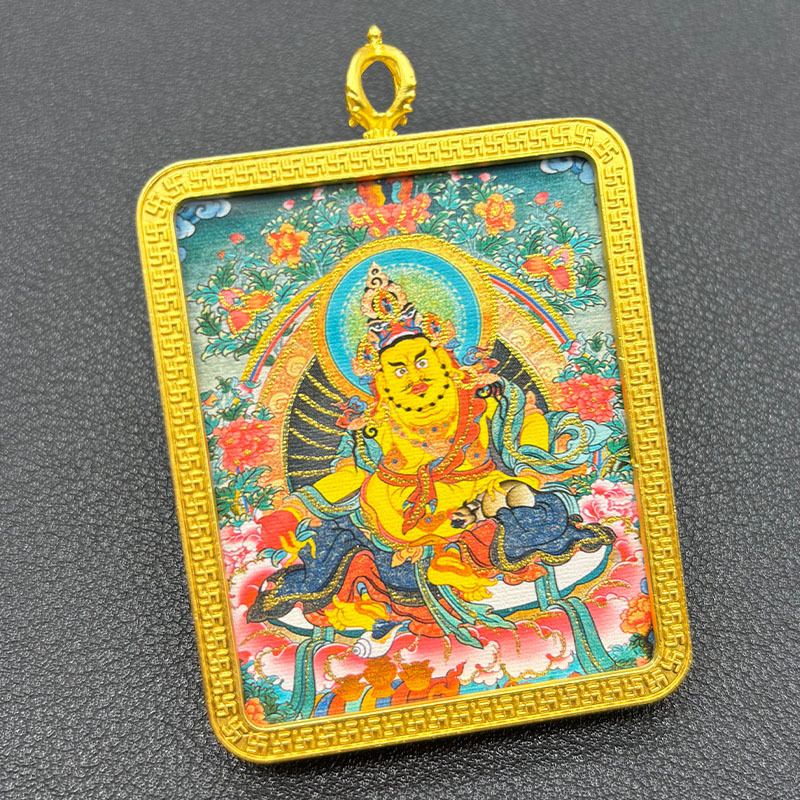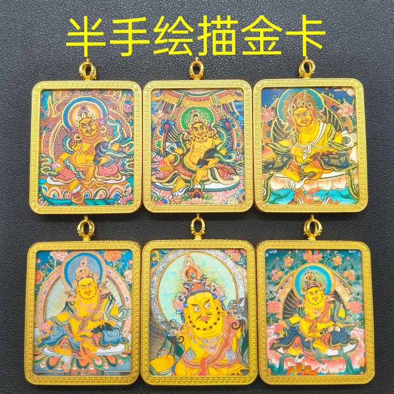 新款半手绘描金黄财神唐卡吊坠藏式项链随身挂坠旅游景区纪念批发