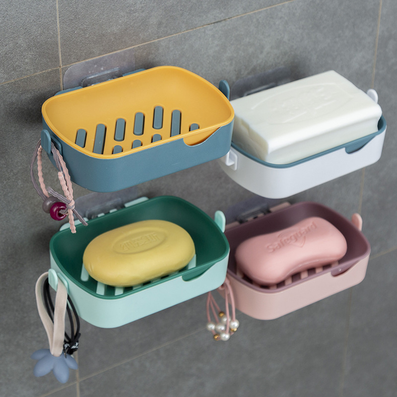北欧无痕双层香皂盒肥皂架创意免钉免打孔挂钩斜口塑料沥水肥皂盒
