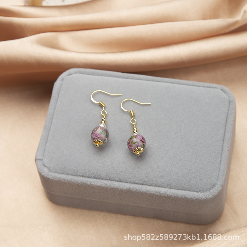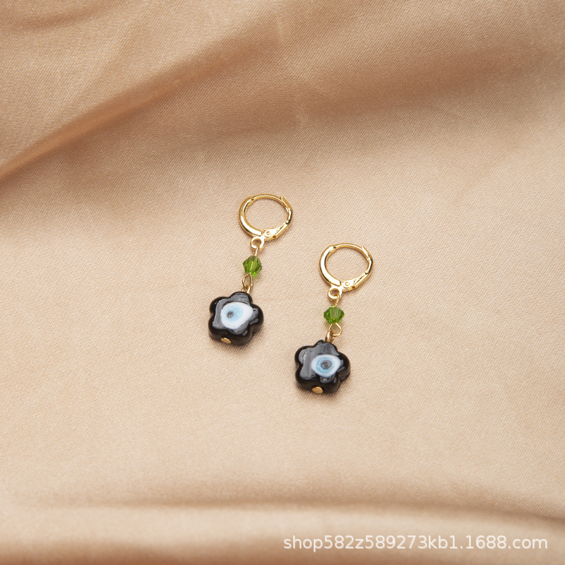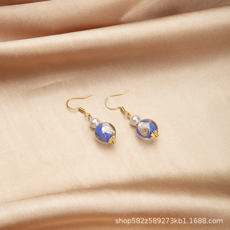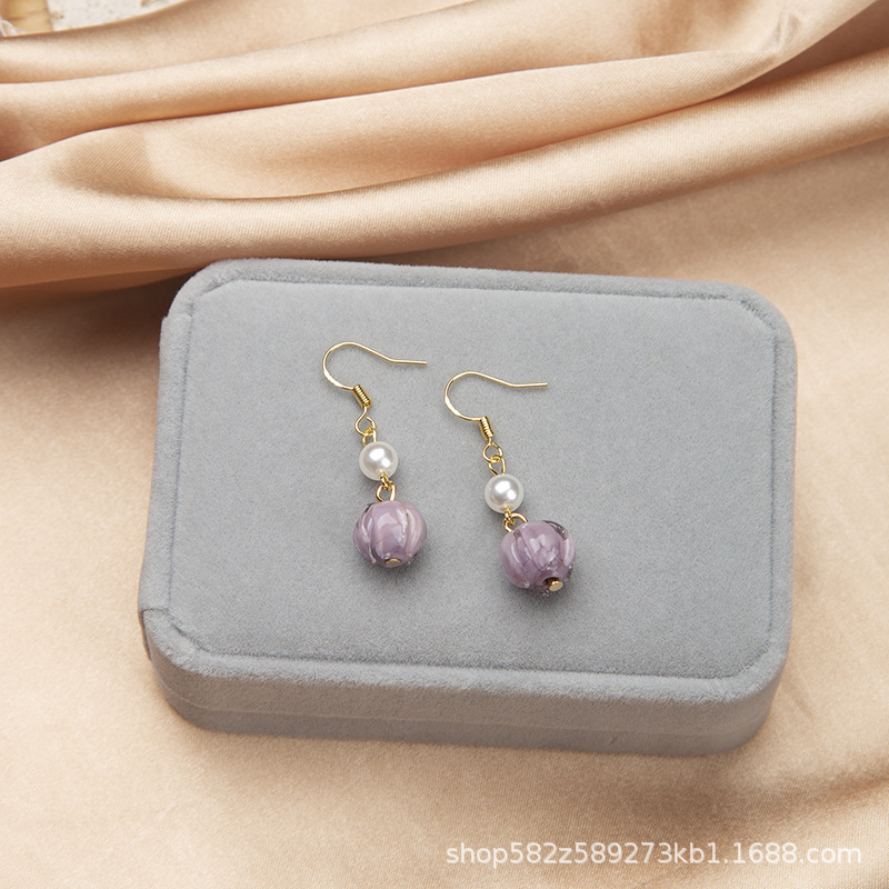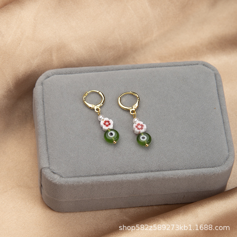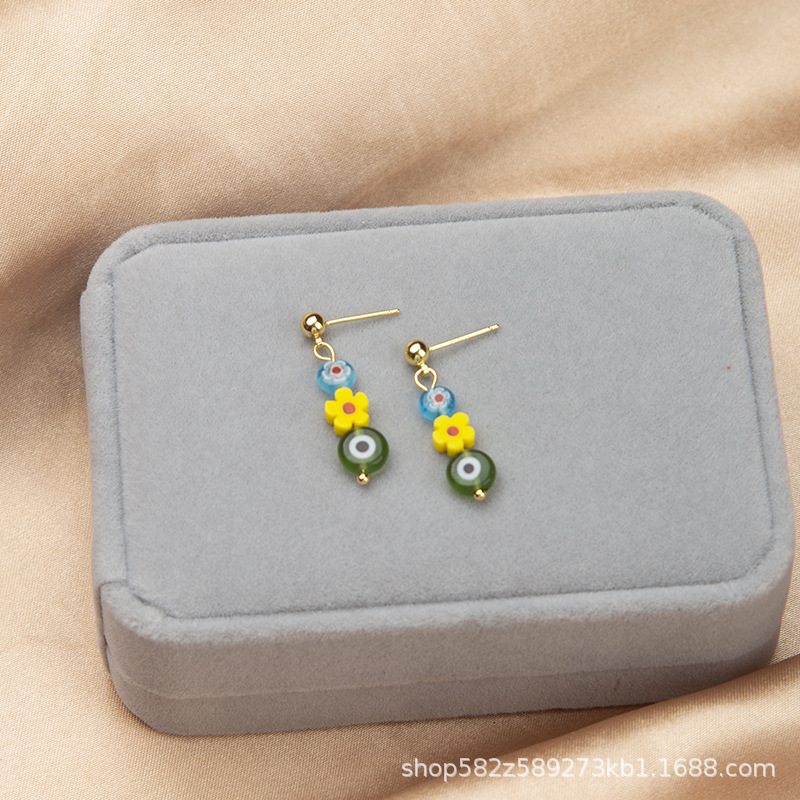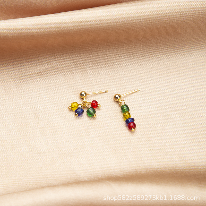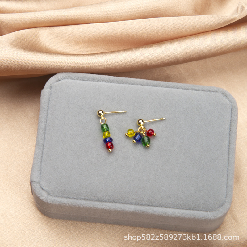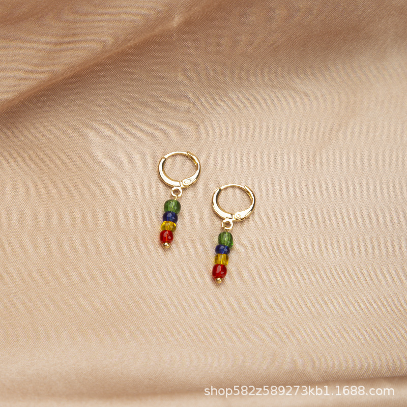 新中式小清新可爱玻璃琉璃米珠手工耳环女ins圆形耳饰供应链批发