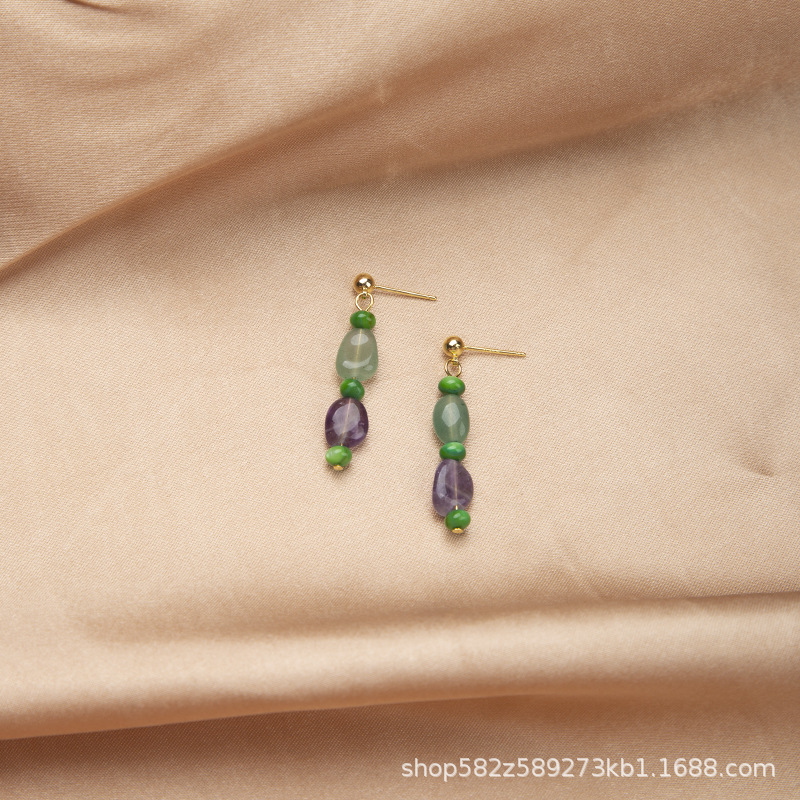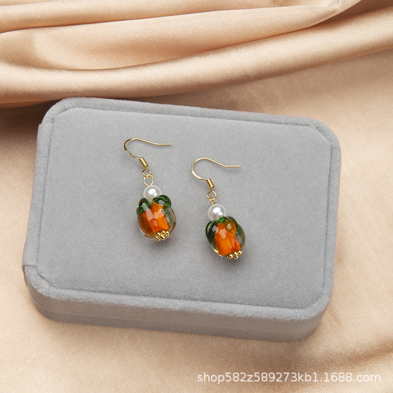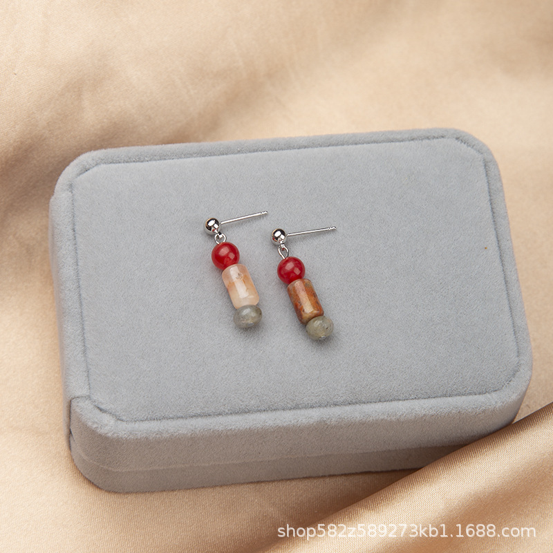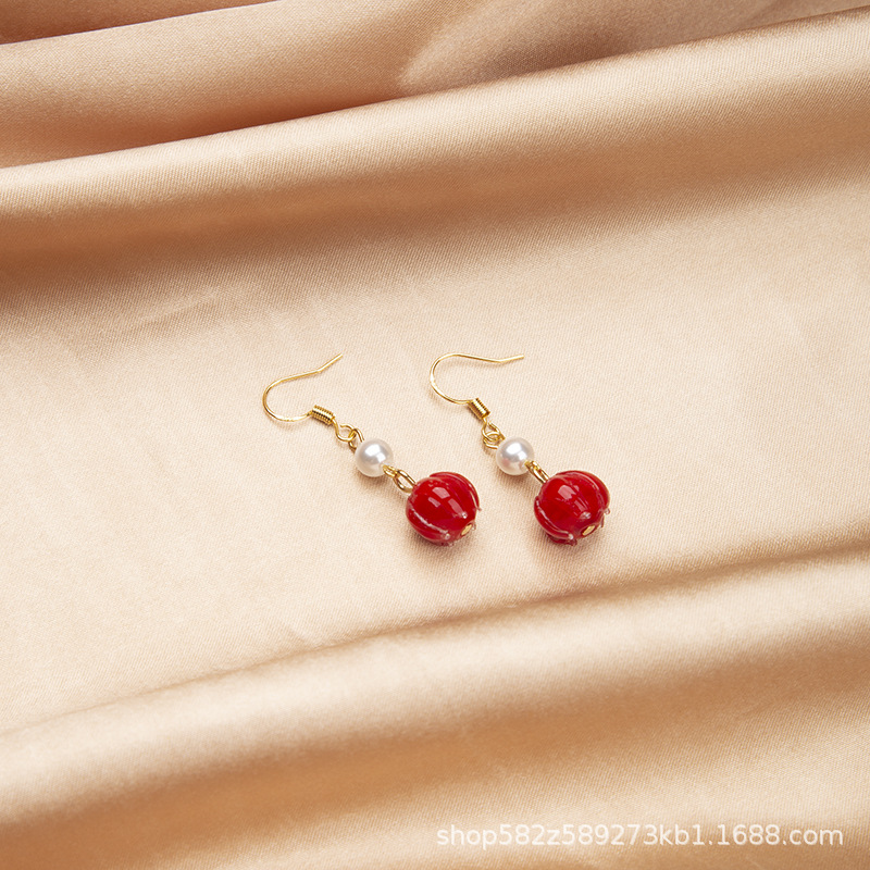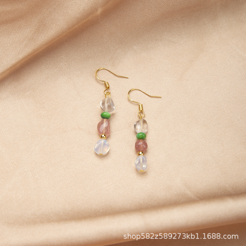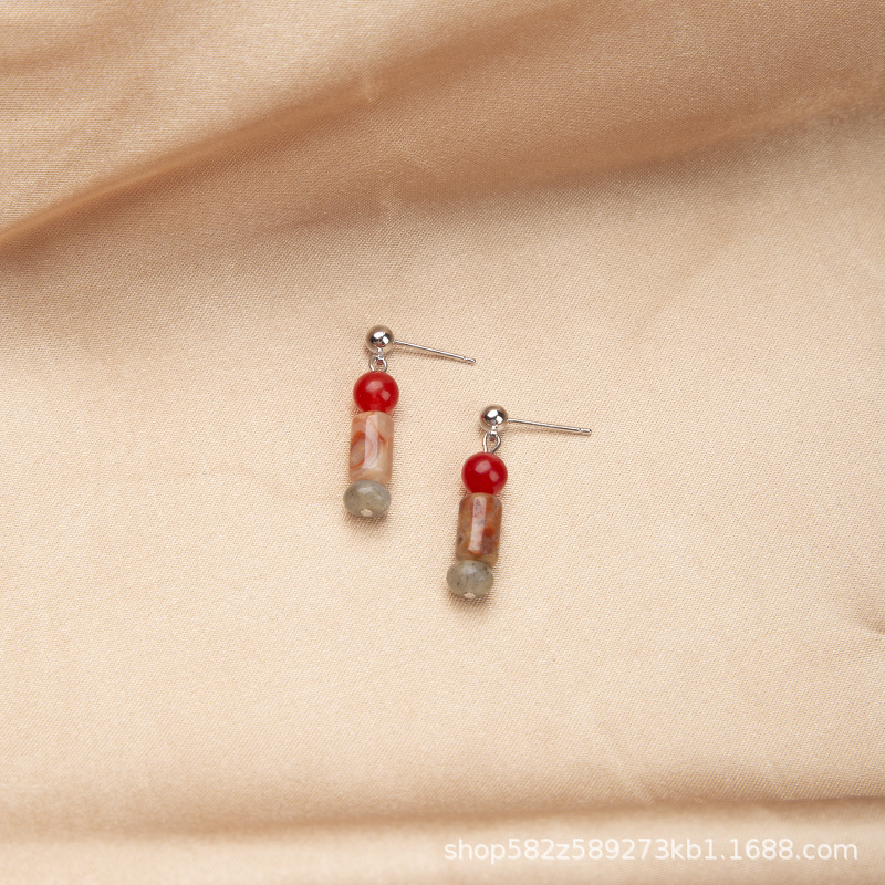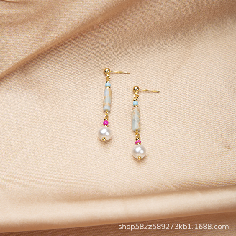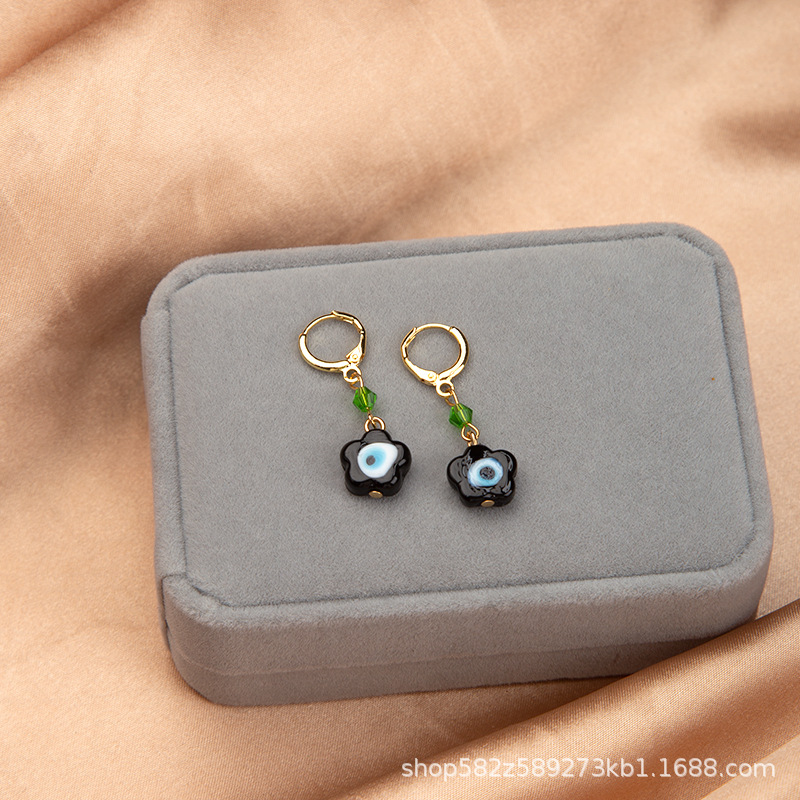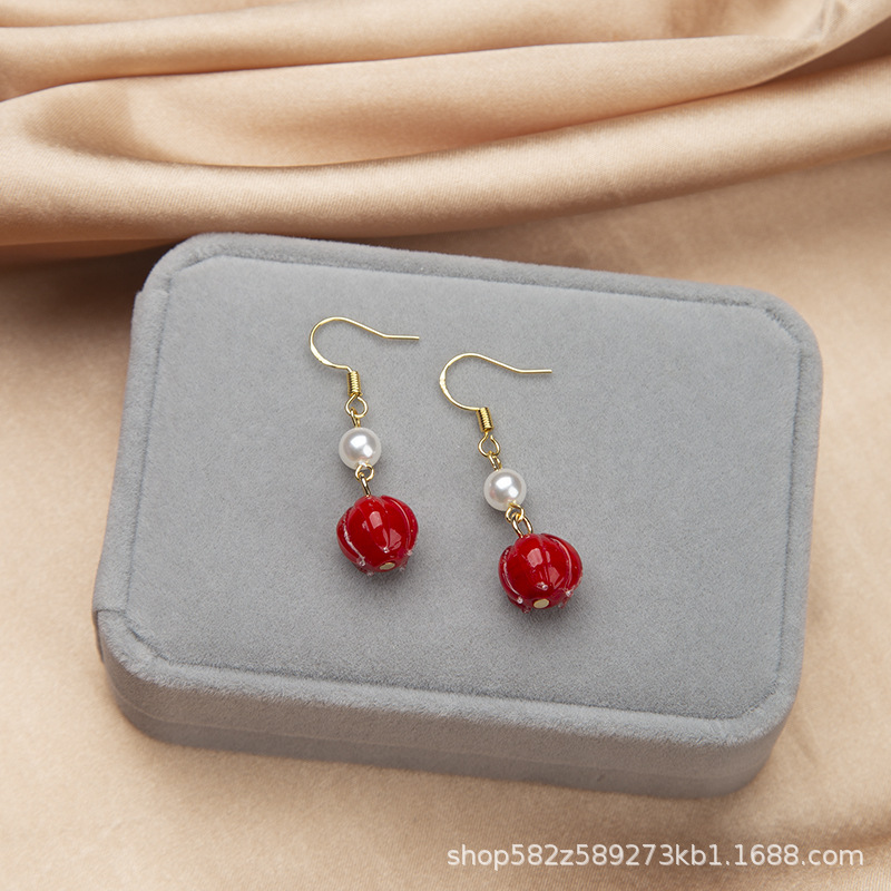 新中式小清新可爱玻璃琉璃米珠手工耳环女ins圆形耳饰供应链批发