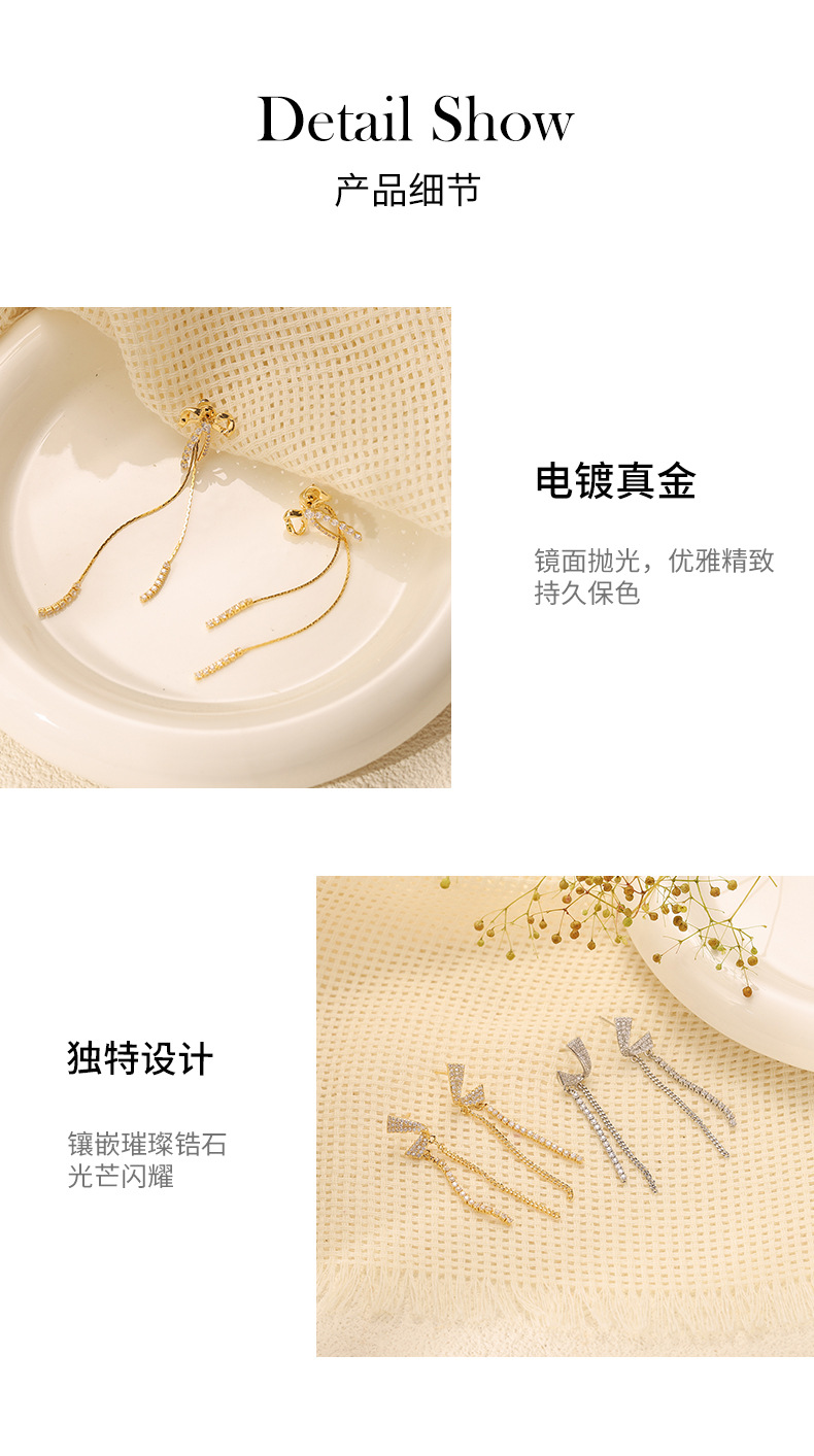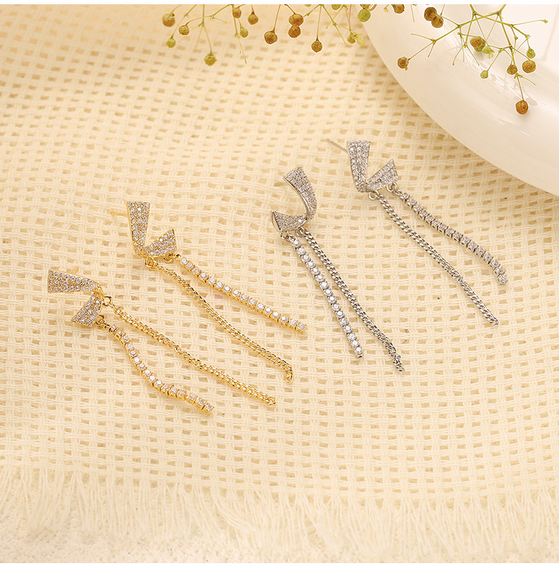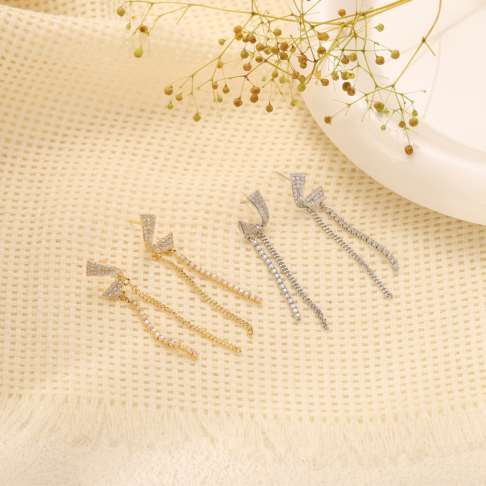 小众设计蝴蝶结流苏耳钉铜锆石银针耳饰轻奢高级气质女款耳环耳饰